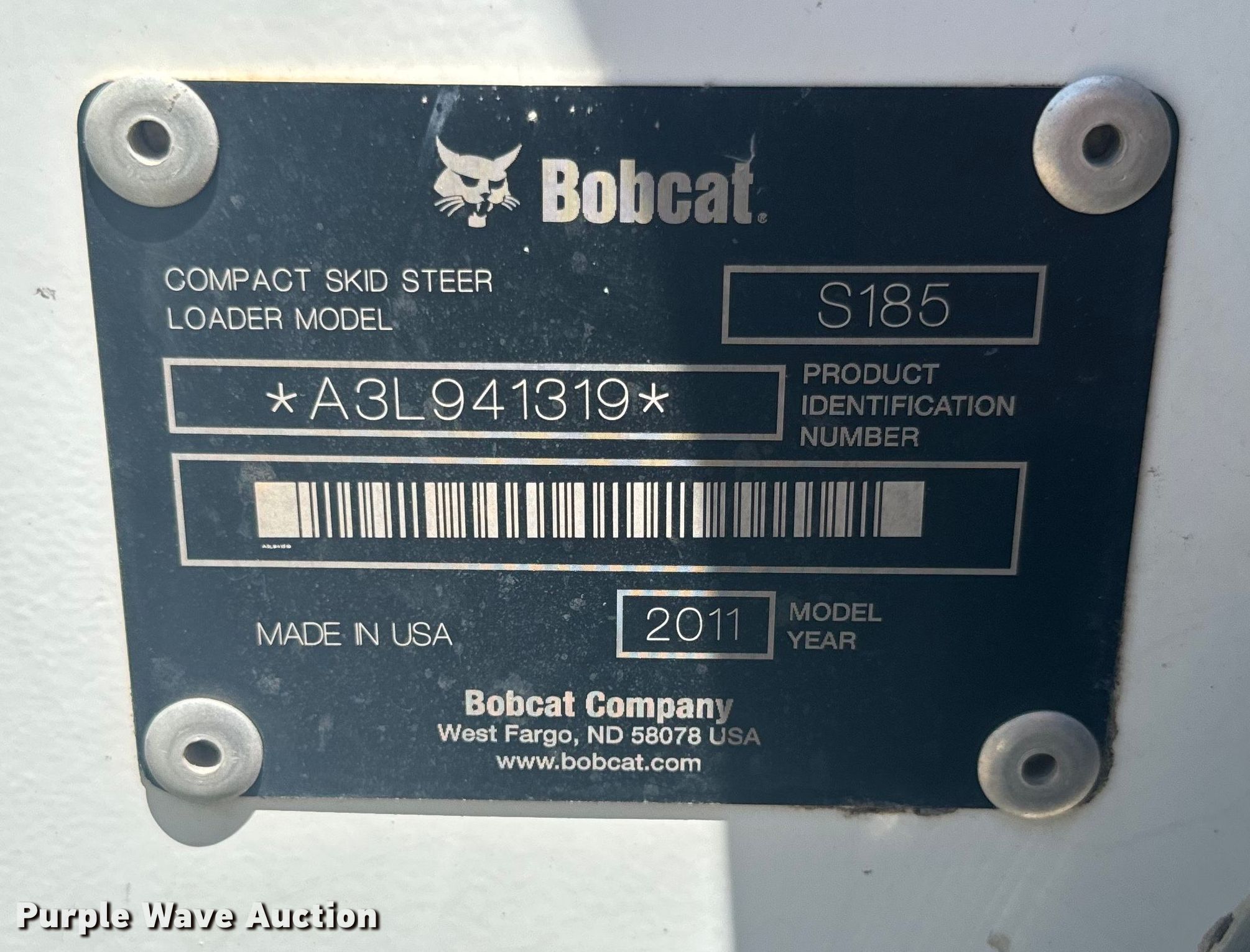 Purple Wave is selling a used Skid Steer Loader in Kansas. This item is a 2011 Bobcat S185 skid steer loader with the following: Serial: A3L941319