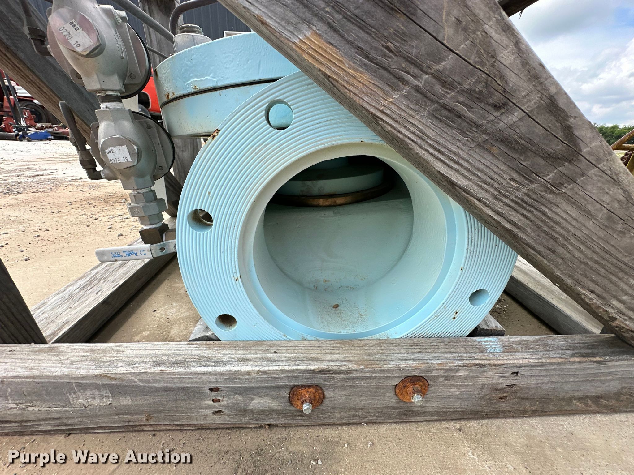 OCV 65 Series water control valve. Diameter: 8", Class: 150, Serial: 57617-1-1-E. Touching ground LLC. Bixby, OK 74008