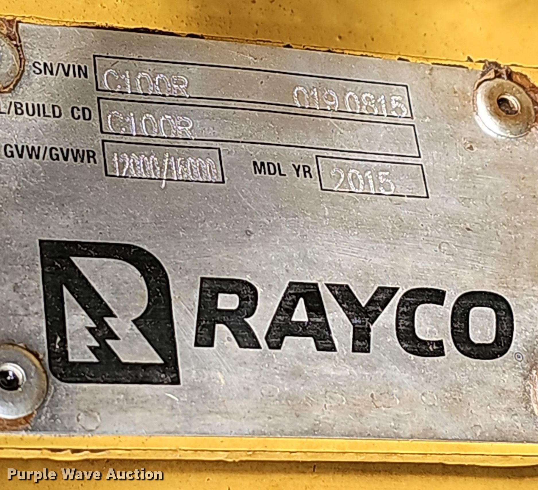 Purple Wave is selling a used Brush Mower in Missouri. This item is a 2015 Rayco C100R mulcher with the following: Hours: 1,658 on meter, Serial: 0190815