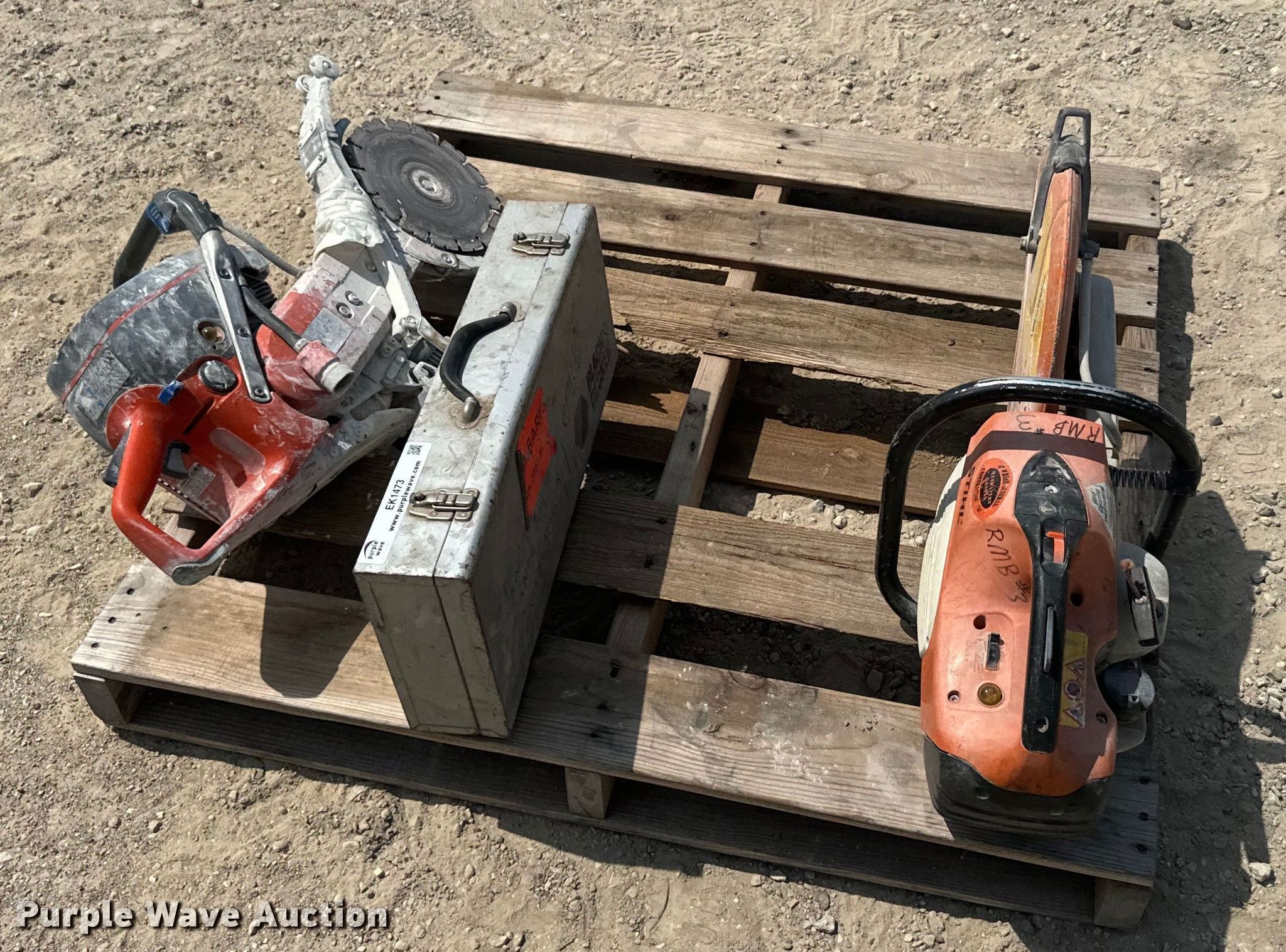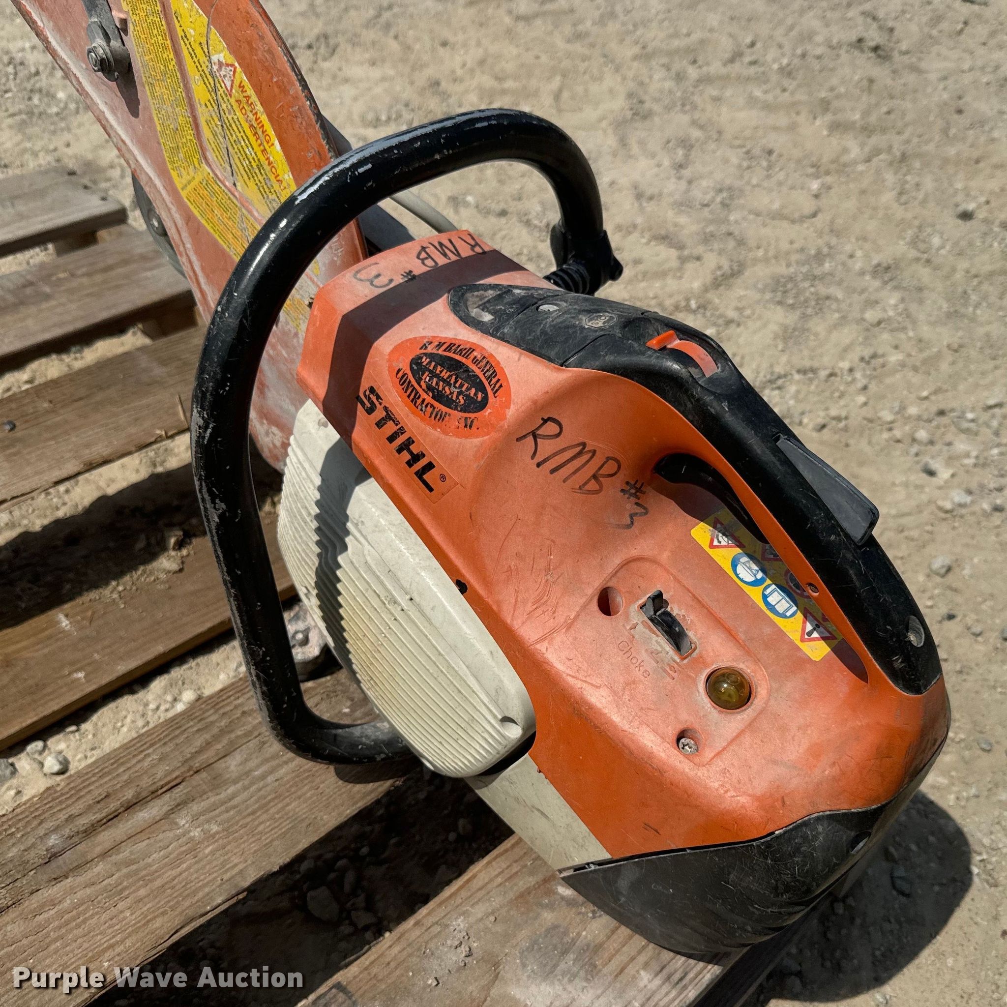 Purple Wave is selling a used Concrete Equip. or Acces. in Kansas. This item is a (2) concrete saws with the following: Husqvrna Cut-n-Brake concrete saw, Stihl TS420 concrete saw