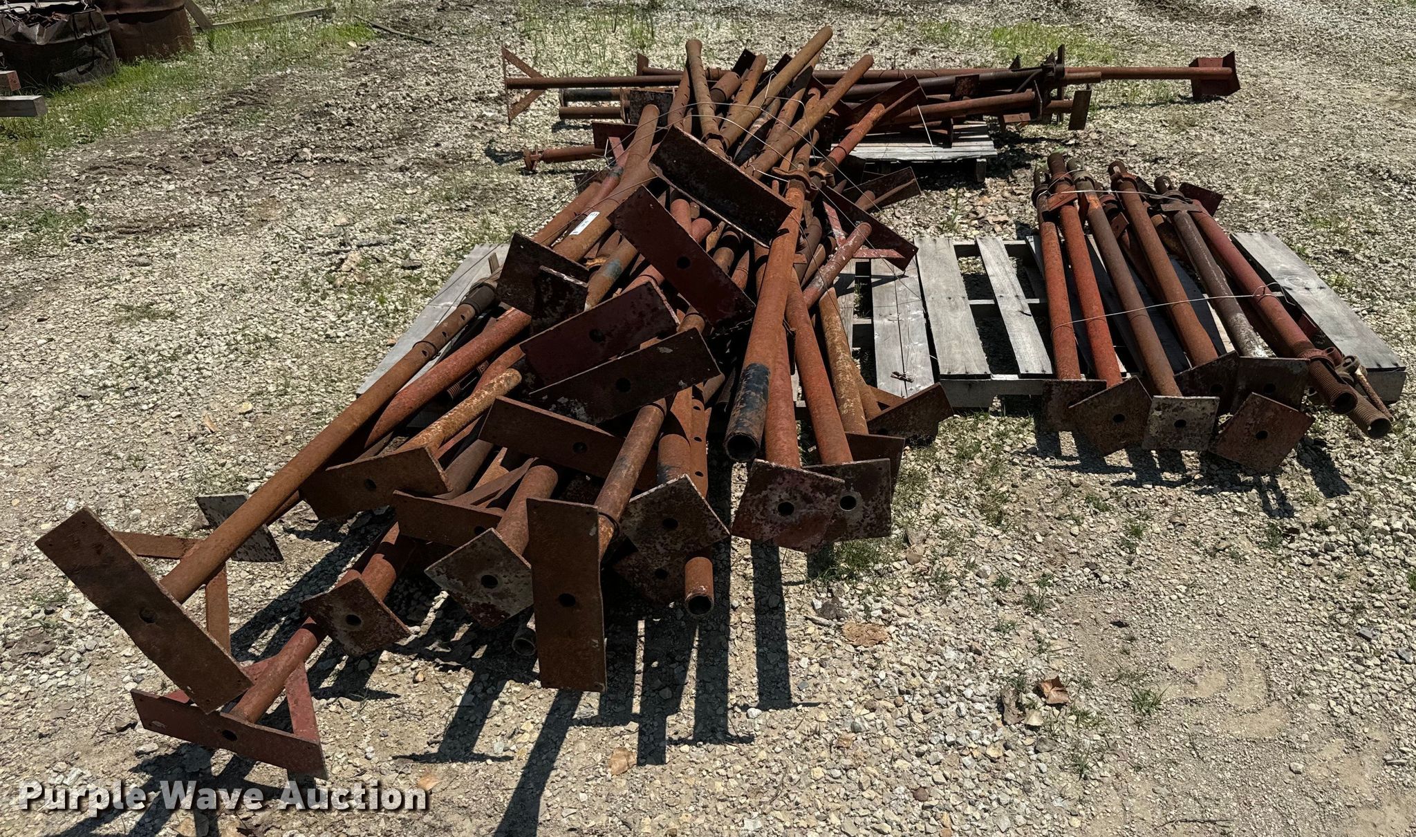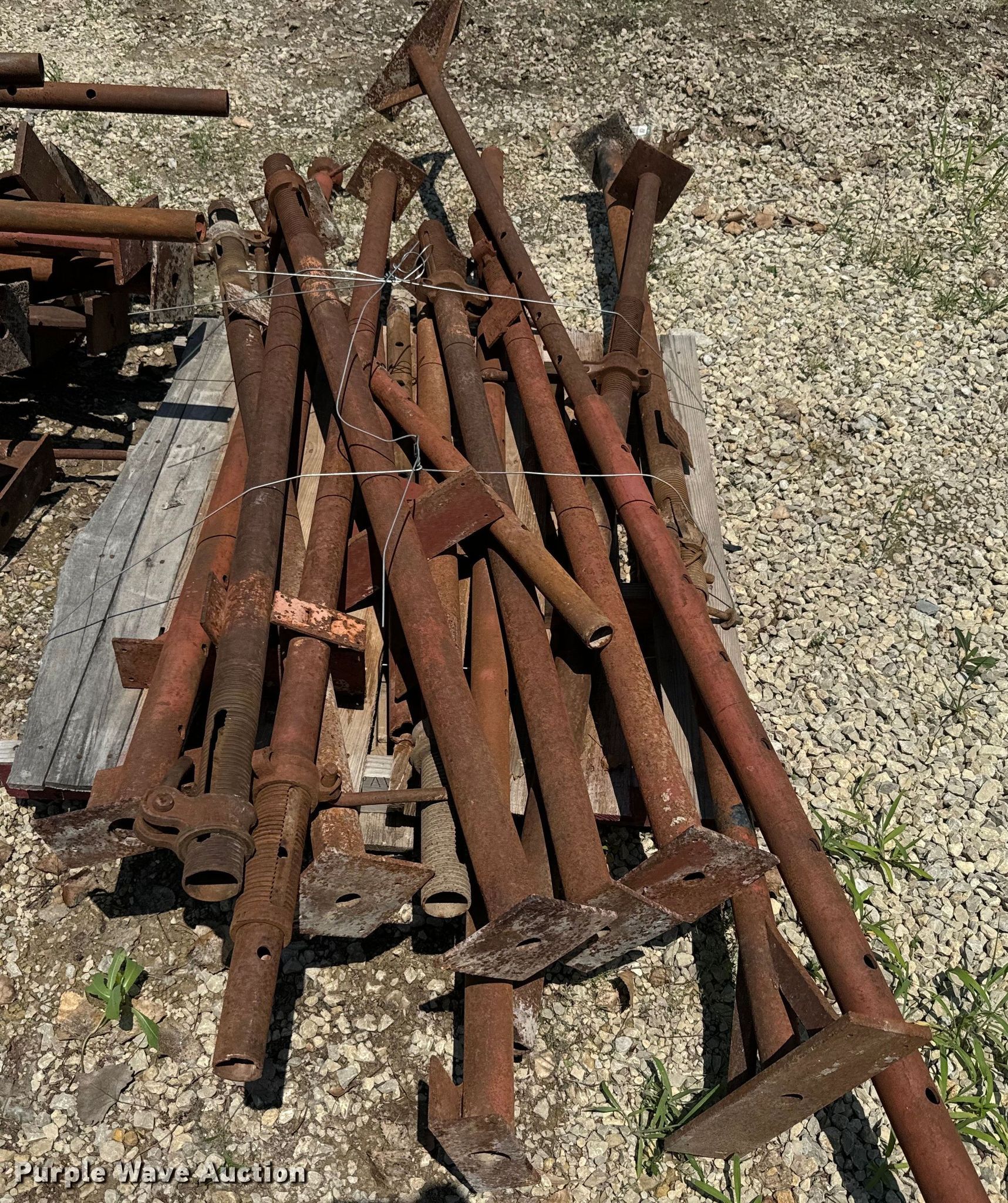 Purple Wave is selling a used Tools in Kansas. This item is a Approximately 45 Acrow screw jacks with the following: Approx. 8 bases, Jacks are bent