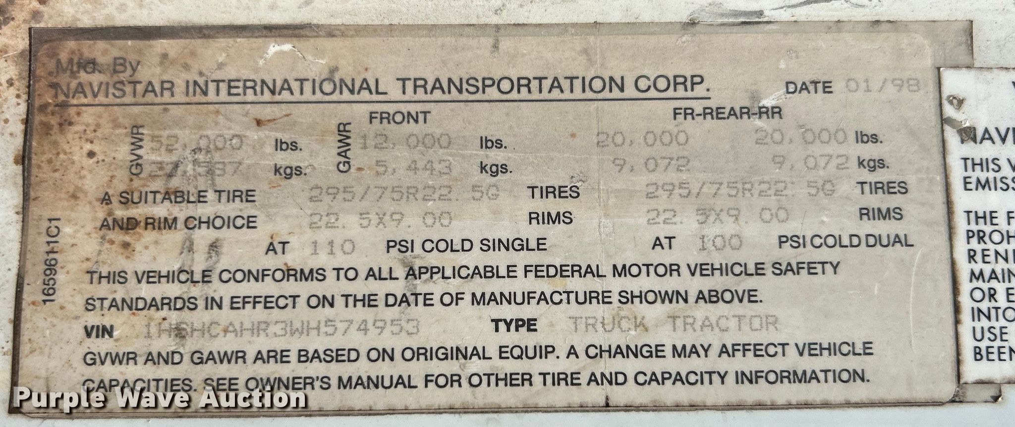 Purple Wave is selling a used Construction Dump Truck in Missouri. This item is a 1998 International 8100 dump truck with the following: Miles: 464,075 on odometer, VIN: 1HSHCAHR3WH574953