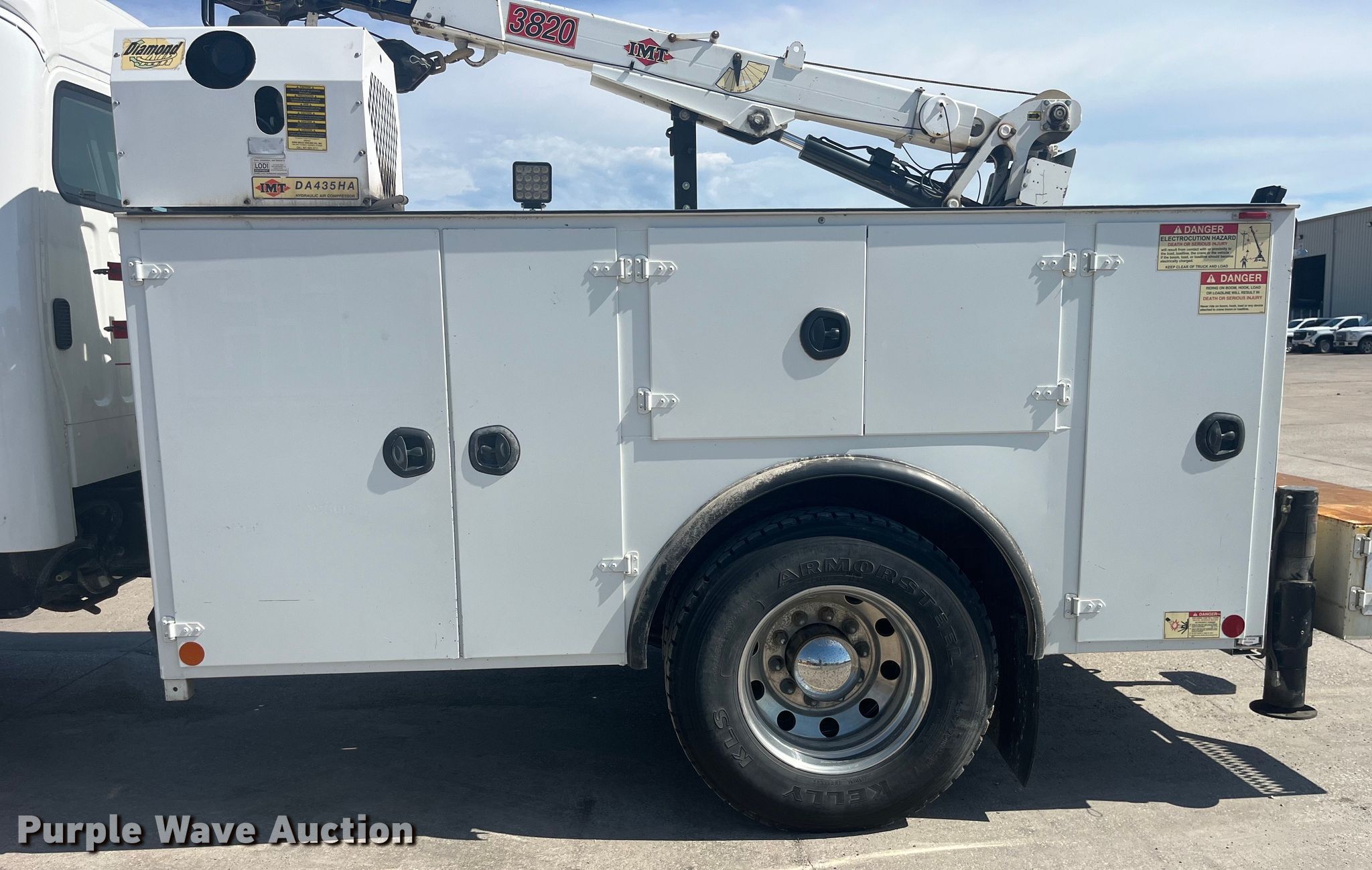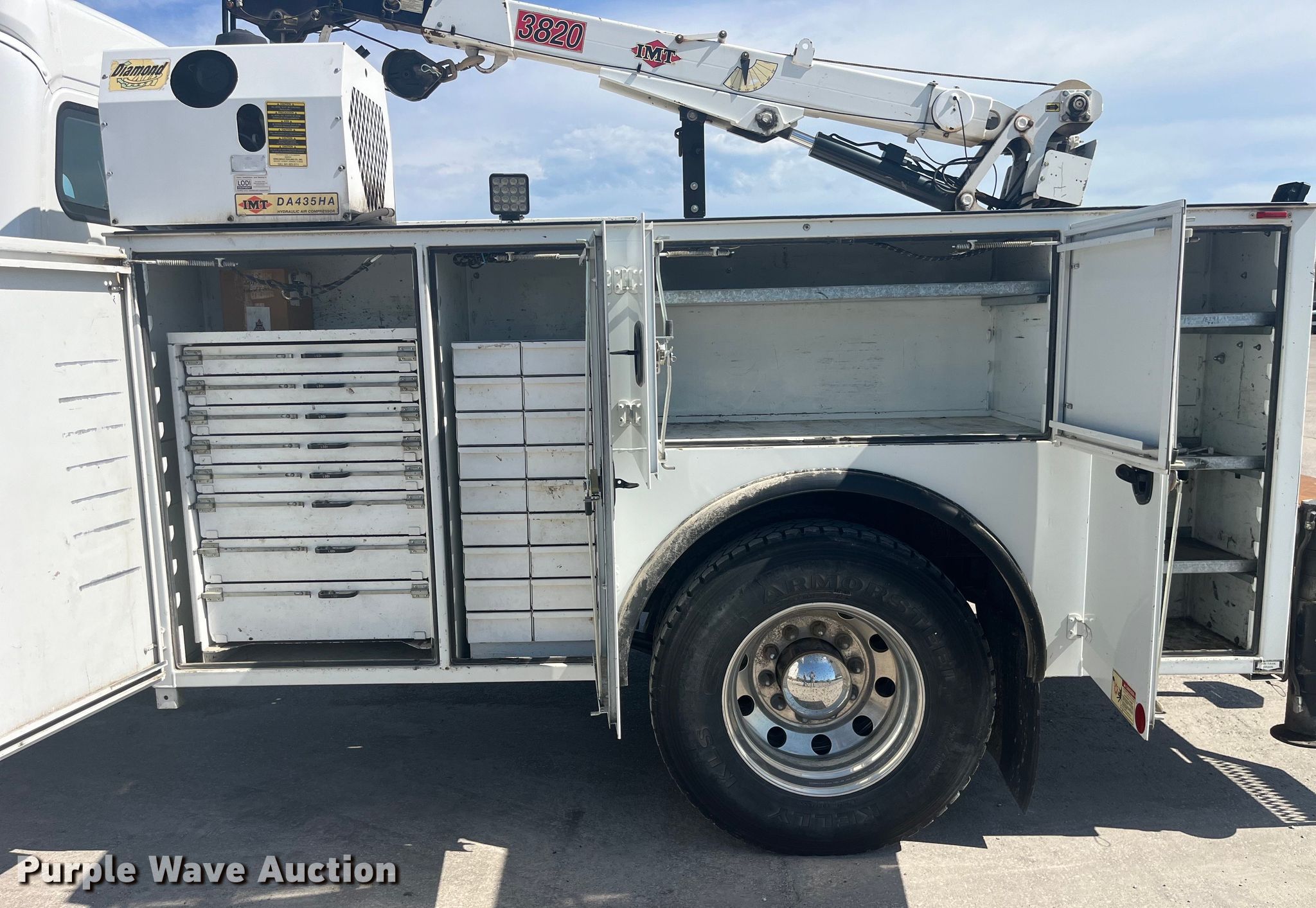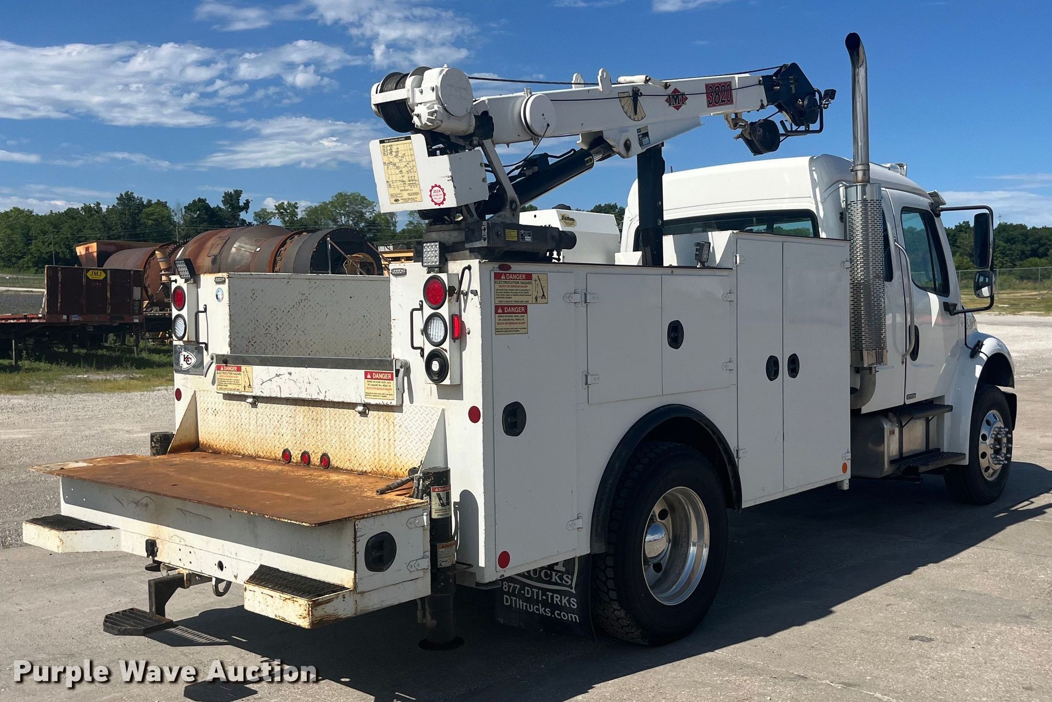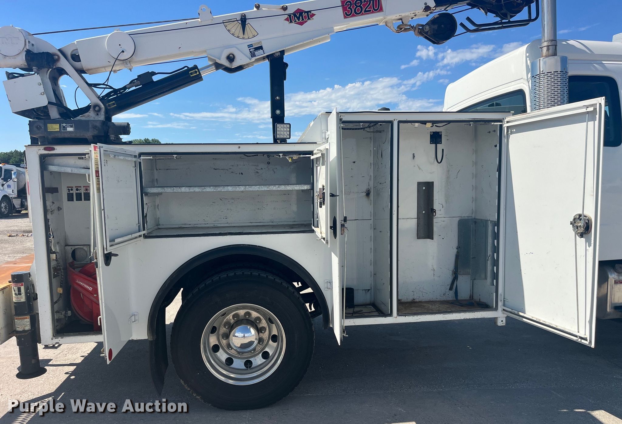 2006 Freightliner Business Class M2 Crew Cab utility / service truck. Miles: 92,417 on odometer, Hours: 4,056 on meter, VIN: 1FVACWCS66HX01992. Engine Mercedes-Benz, Displacement: 6.4L, Cylinders: 6, Fuel type: Diesel. Transmission Automatic. Chassis Axles: Single, Suspension: Air, Brakes: Air, PTO, GVWR: 25,500 lbs. Interior AC, Heat, Heated mirrors, Power windows, Cruise control. Features Bed IMT DOM2S2 J449011, 131" L x 94" W, Torch bottle rack, Air compressor IMT DA435HA, Crane IMT 3820, Maximum lift capacity: 3,800 lbs. Tires Front: 275/80R22.5, Rear: 295/75R22.5. Notes Transmission issues. Missouri title. Title distribution may be delayed up to 30 days from verification of funds. Emery Sapp. Palmyra, MO 63461