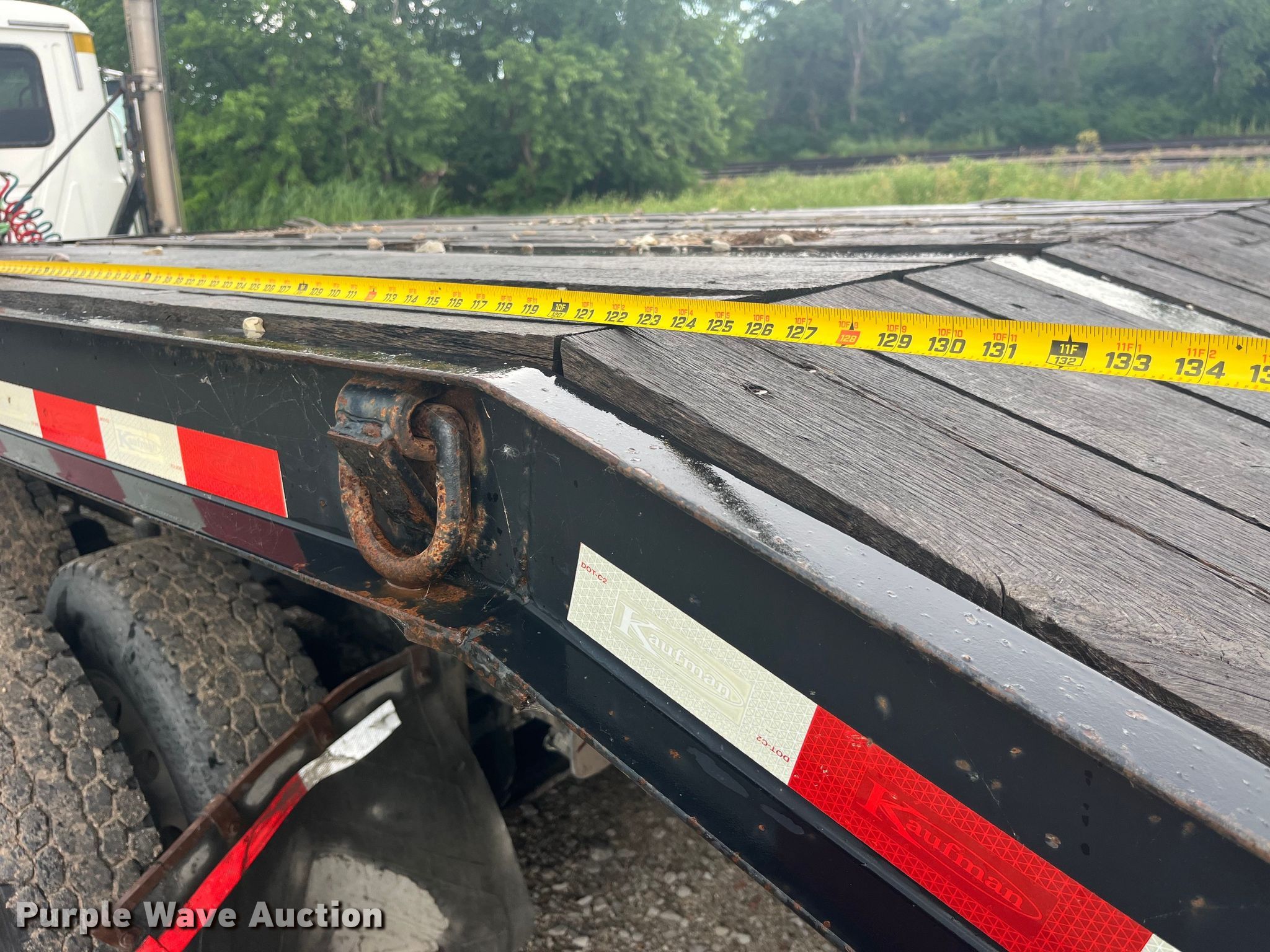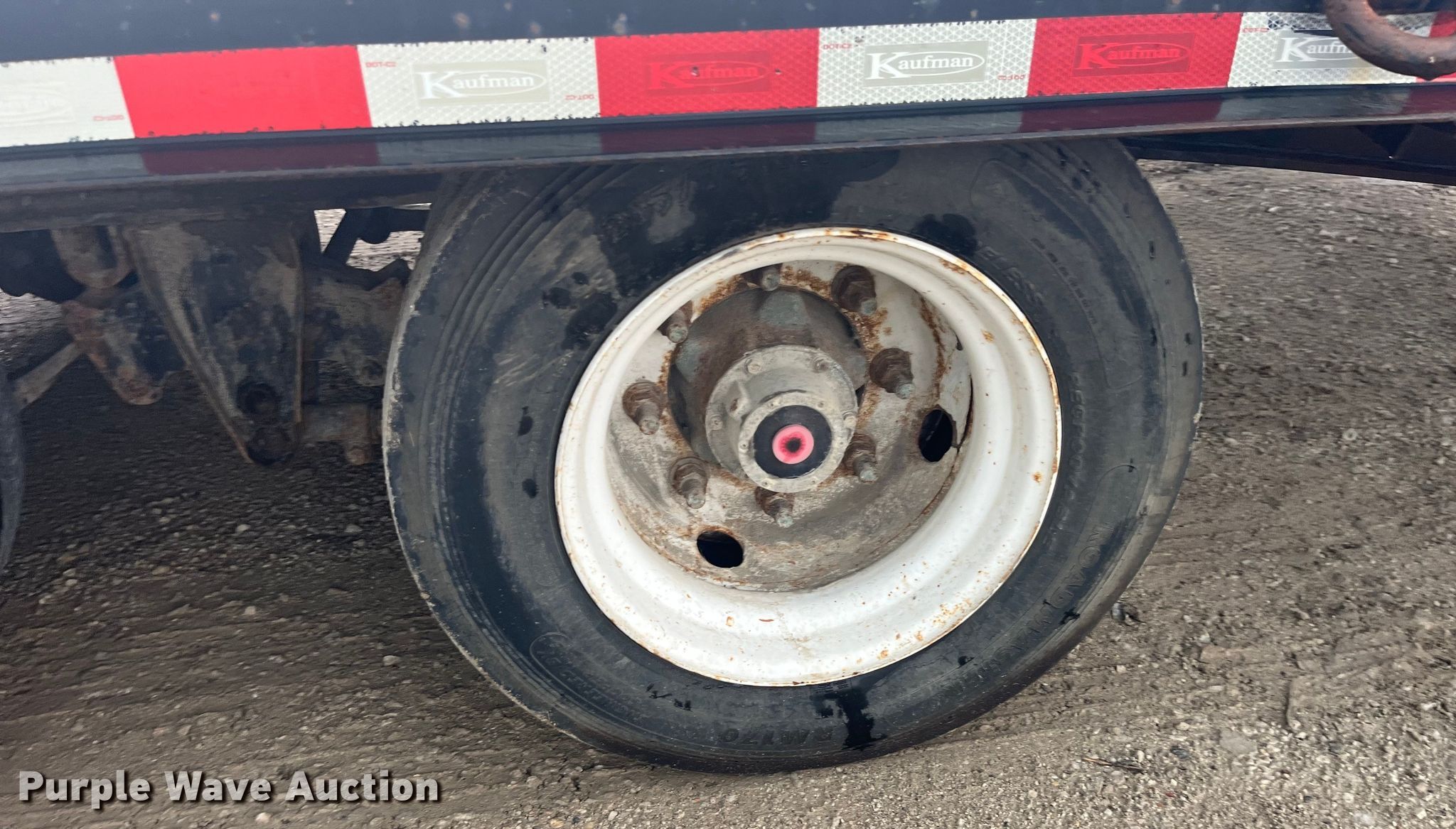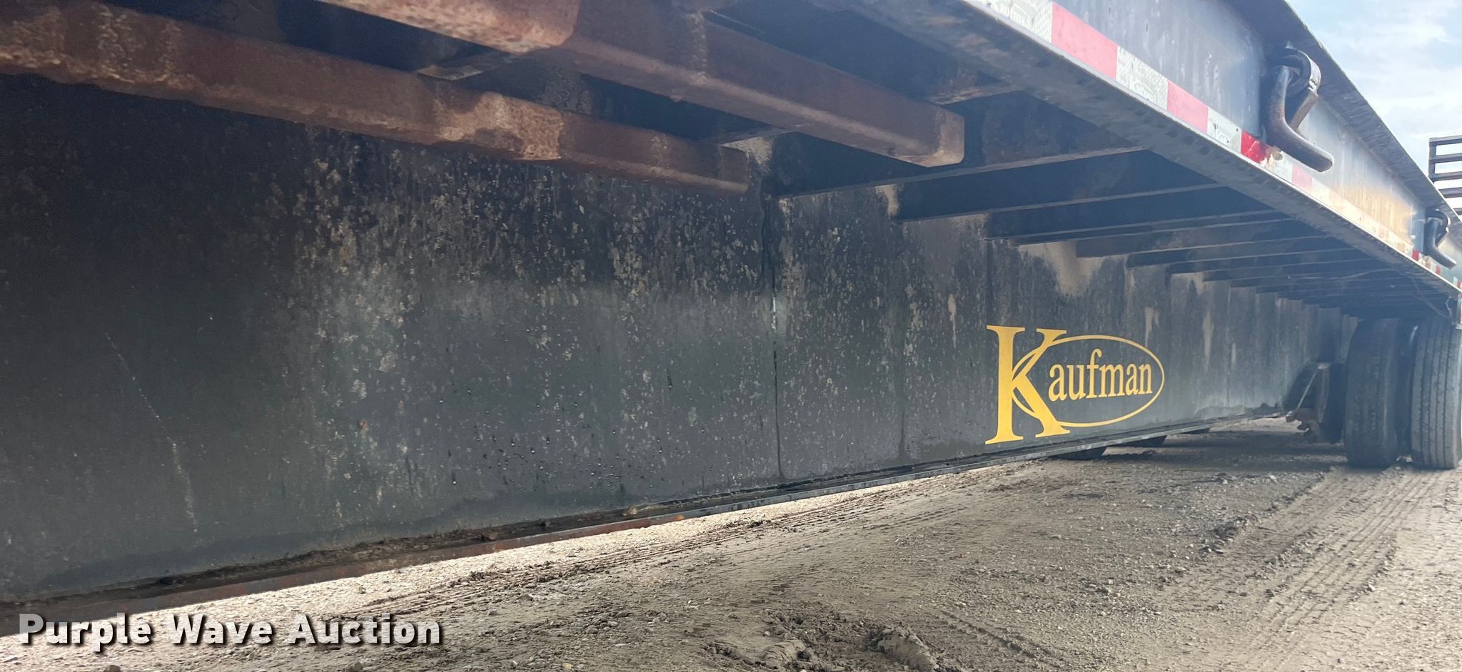 2018 Kaufman drop deck equipment trailer. VIN: 5SHAD5138JB000661. Dimensions Overall: 53' x 102" W, Deck: 33' 11" L x 100.5" W, Top deck length: 12', Tail length: 61", Ramps: Manual Length: 72". Features Deck type: Wood. Chassis Landing gear: Dual, Suspension: Spring, Brakes: Air, Axles: Triple, GVWR: 70,000 lbs. Tires Steel wheels, Size: 215/75R17.5. Notes Semi truck not included. Iowa title. Title distribution may be delayed up to 14 days from verification of funds. Bridge City Construction Inventory Reduction. Ottumwa, IA 52501