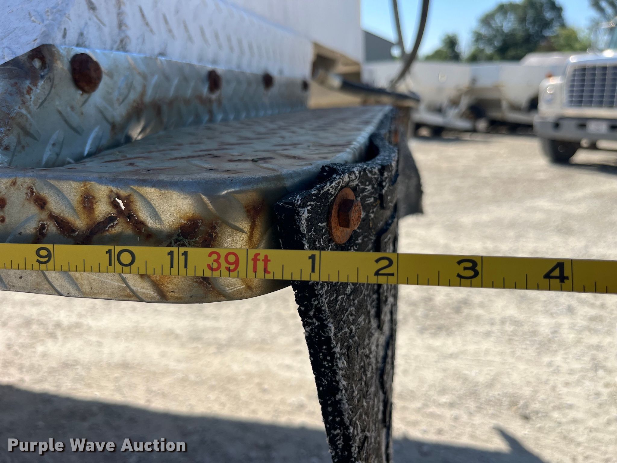 1995 Travis 37.6FT TRAVIS P L end dump trailer. VIN: 1T91F3821S1247836. Dimensions Overall: 39' 2" L x 8' 6" W, Body: 37' 6" L x 7' 6" W, Side height: 57". Features Body type: Aluminum, Ram: Single, End gate: Air operated Grain door, Poly liner, Roll tarp. Chassis Landing gear: Dual, Suspension: Air, Brakes: Air, Axles: Spread, GVWR: 68,000 lbs, GAWR: 20,000 lbs. Tires Aluminum wheels, Size: 11R24.5. Notes Semi truck not included. Missouri title. Bichsel Spreading Service. Leonard, MO 63451