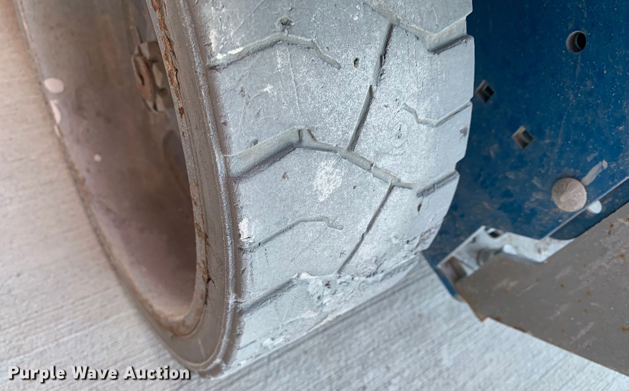 Genie GS-2632 scissor lift. Hours: 440 on meter. Electric Motor Advanced 40844, Serial: 140-01-4007B, Volts: 12/24. Features Maximum lift capacity: 500 lbs, Maximum lift height: 32' 1", Platform: 96" L x 32" W, AC power outlet, Controls: Remote Control, Ground, Platform extensions: Manual. Tires Tire size: 15x5, Solid. G8 Builders, Inc. Dallas, TX 75252