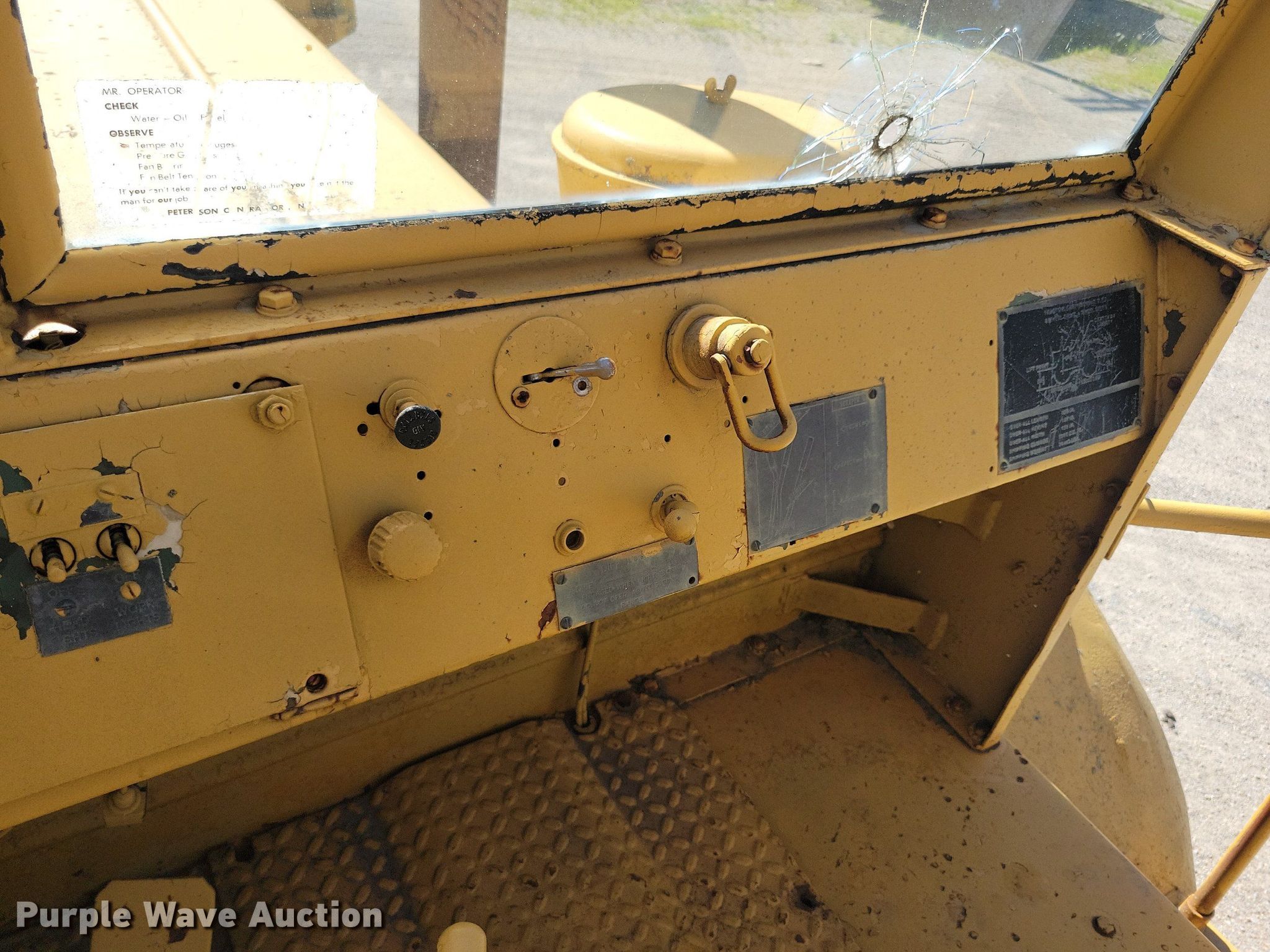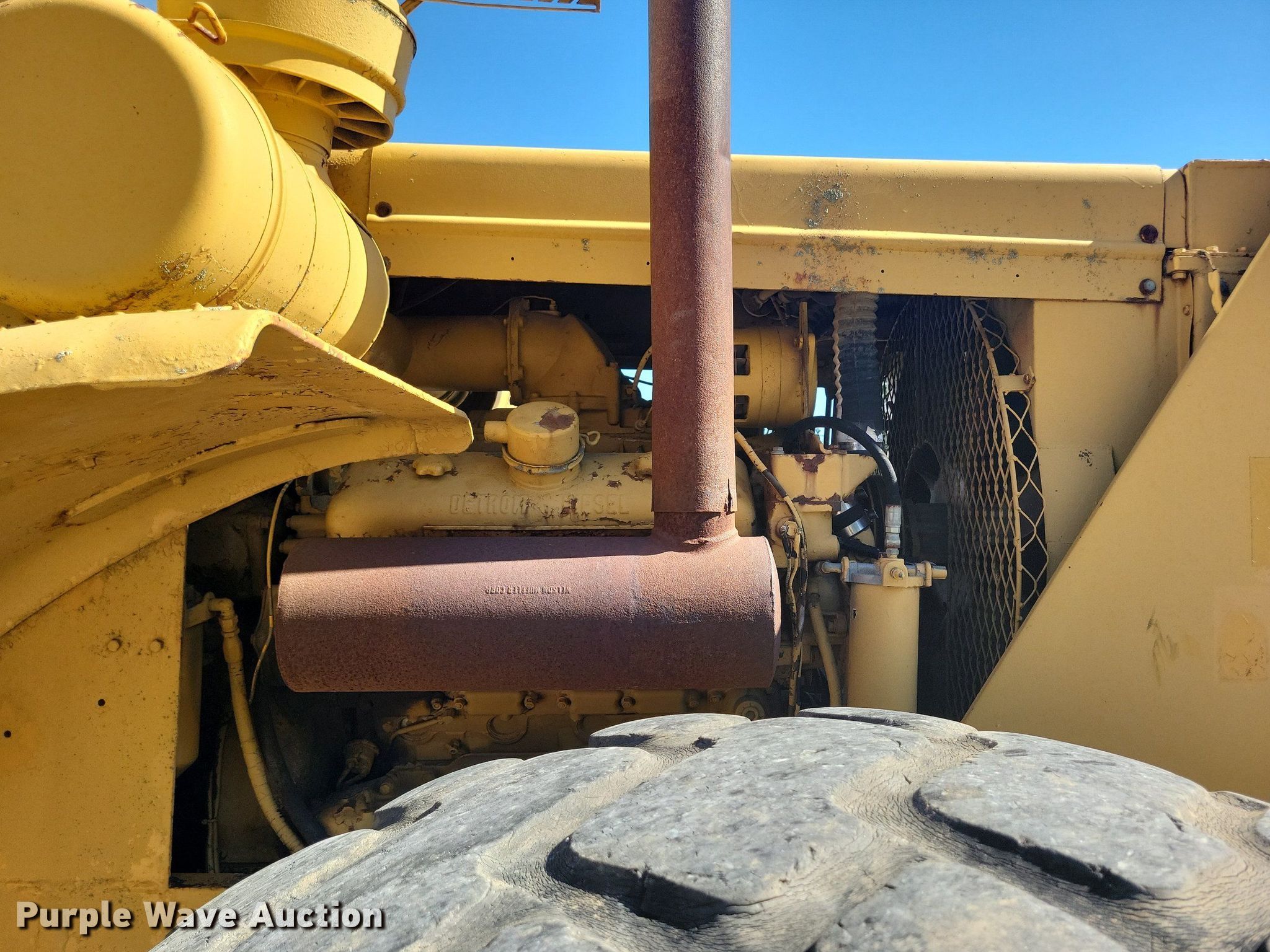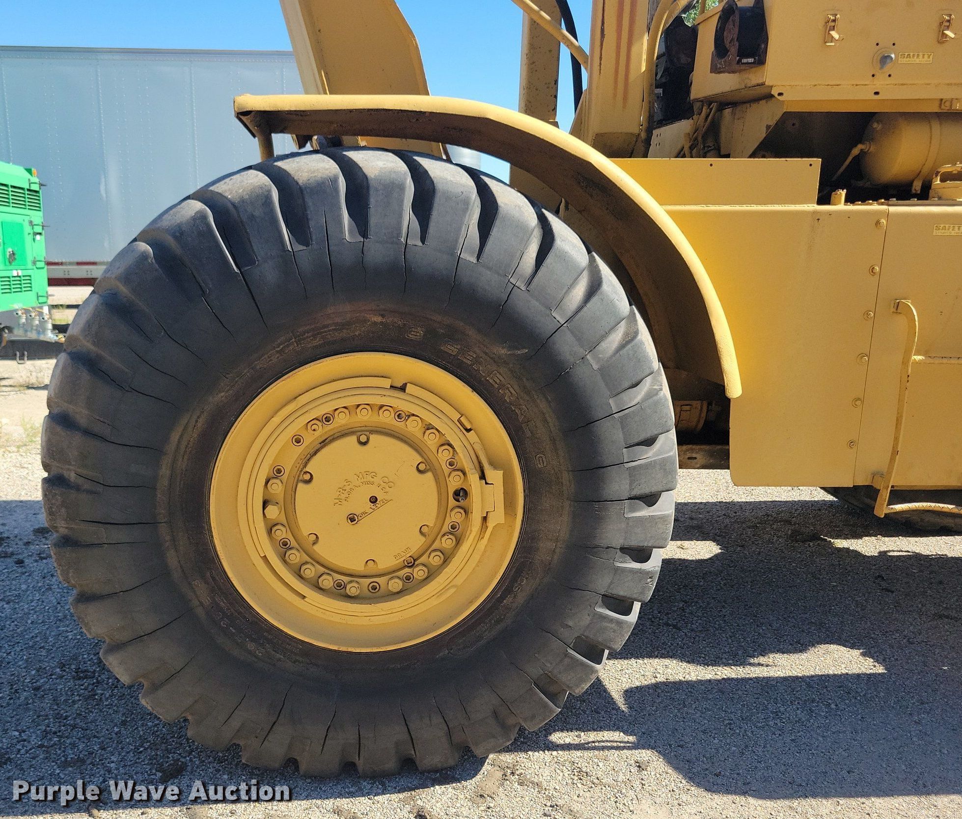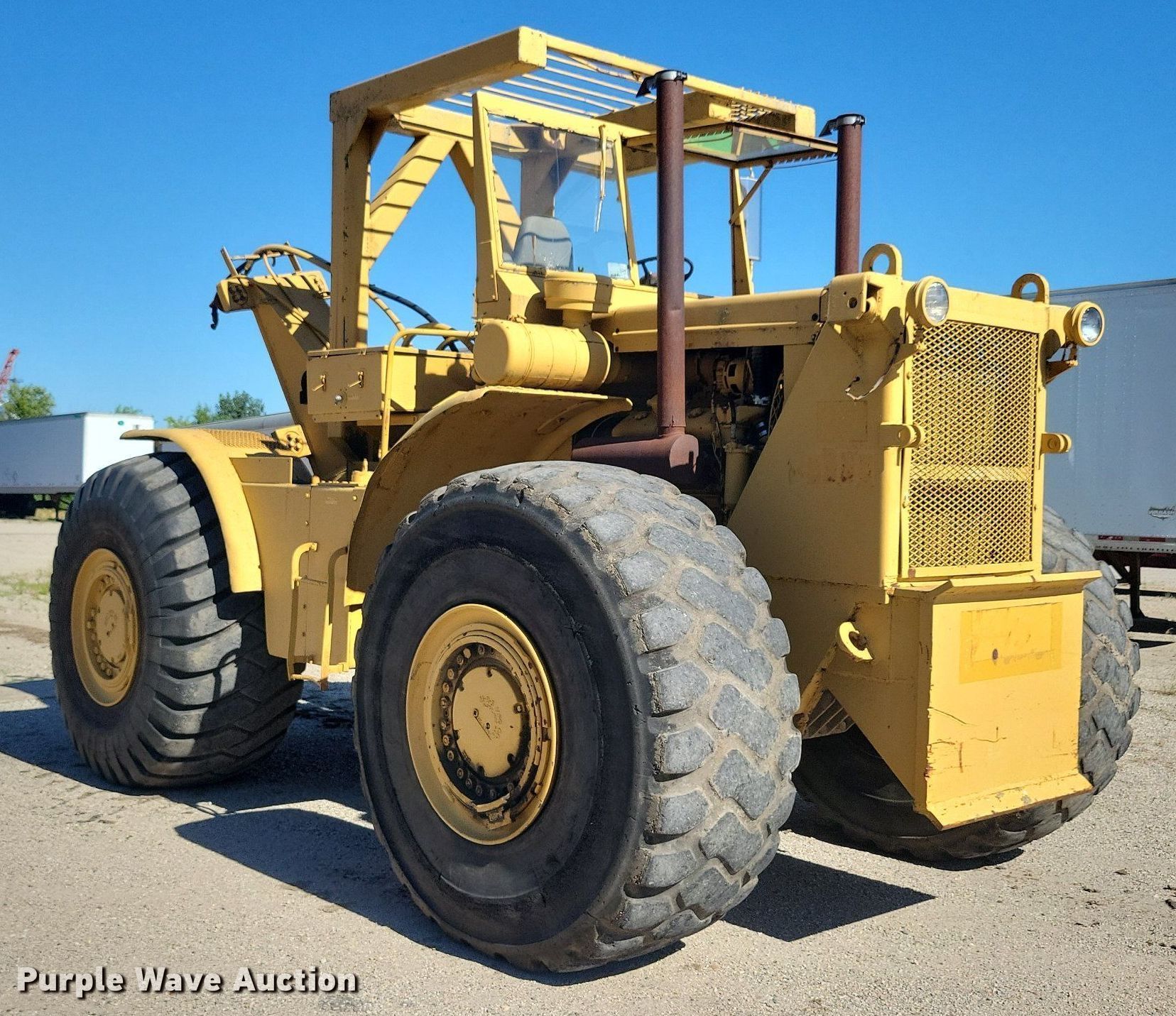 MRS 110 4WD scraper tractor. Hours: 989 on meter. Engine Detroit Diesel, Cylinders: 8, Fuel type: Diesel. Transmission 9F - 2R, Differential lock. Features Hydraulic remote sets Rear: 1. Tires Front: 29.5R25, Rear: 29.5-25. Notes Glass cracked, Dead battery, Swivel hitch not included. Peterson Contractors, Inc.. Reinbeck, IA 50669