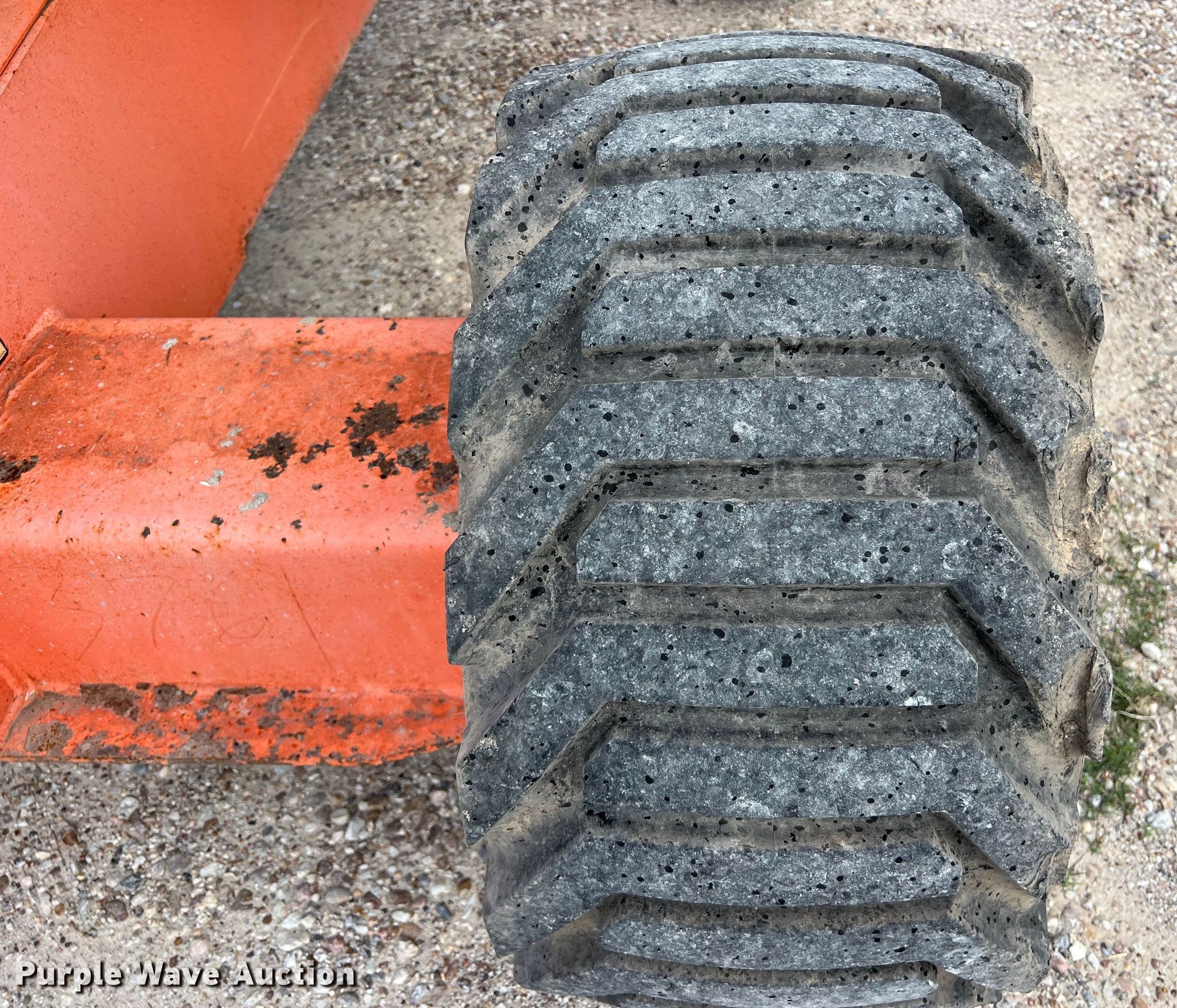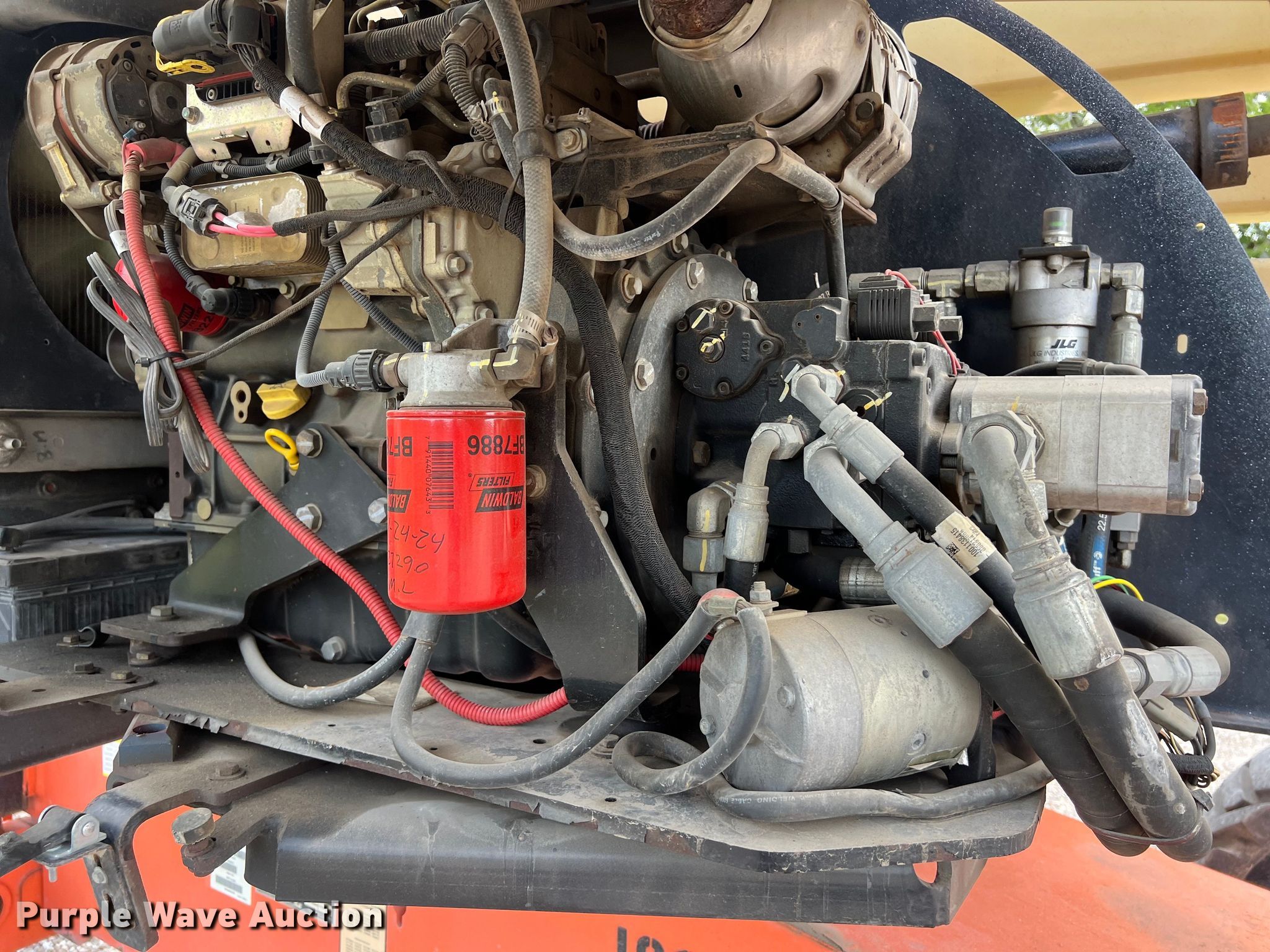 2014 JLG 450AJ Series II boom lift. Hours: 2,744 on meter, Serial: 0300193761, Unit #: 10314331. Engine Cylinders: 4, Fuel type: Diesel. Chassis Four wheel drive. Features Rough terrain, Boom type: Articulating, Telescopic, Maximum lift capacity: 500 lbs, Maximum reach length: 24.5', Maximum lift height: 45', Platform: 72" L x 30" W, AC power outlet, Controls: Platform, Ground, Platform rotation: Hydraulic, Safety alarm. Tires Tire size: 33x15.50-16.5, Foam filled. Plunkett Enterprises. Angleton, TX 77515