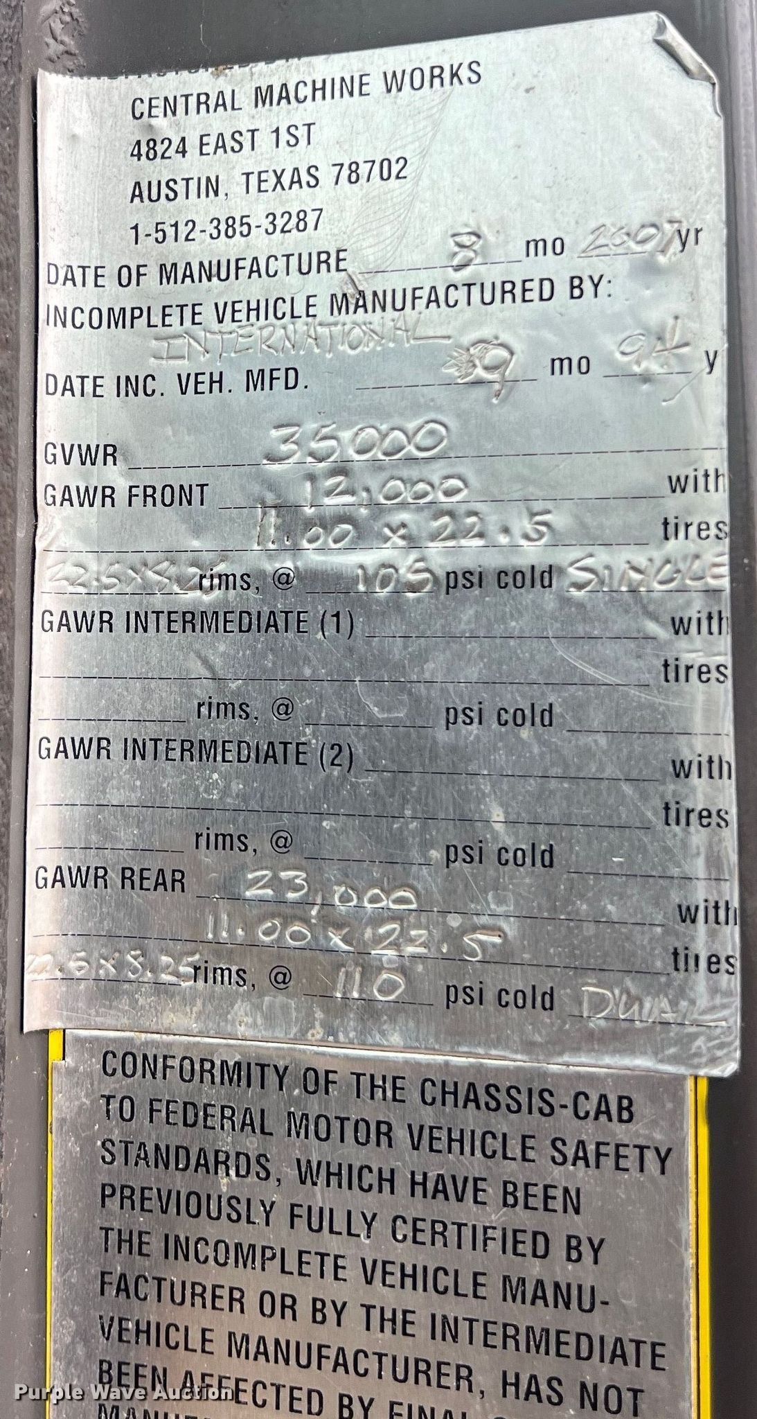 1995 International 4700 water truck. Miles: 70,446 on odometer, Hours: 8,064 on meter, VIN: 1HTSCAAR2SH650703. Engine International DT466, Displacement: 7.6L, Cylinders: 6, Fuel type: Diesel. Transmission Automatic. Chassis Axles: Single, Suspension: Spring, Brakes: Air, PTO, GVWR: 35,000 lbs, Wheelbase: 188". Interior Heat. Features Bed / tank TextMate, Serial: 21340, 11' L x 7' W x 6" W, Spray bar: Front, Rear, Side discharge, Top fill, Bed dimensions: 14' L x 8' W. Tires Size: 11R22.5. Notes Windshield chipped or cracked, Non-operational 3" gas powered pump, motor turns over but does not start. Texas title. Cave Trucking. Georgetown, TX 78626