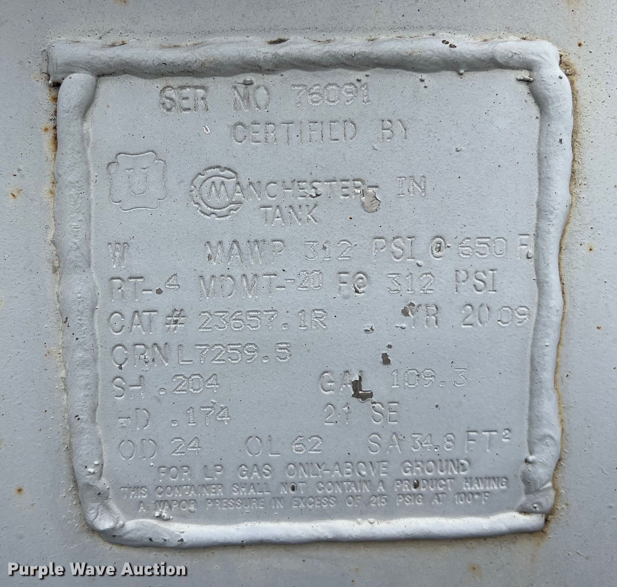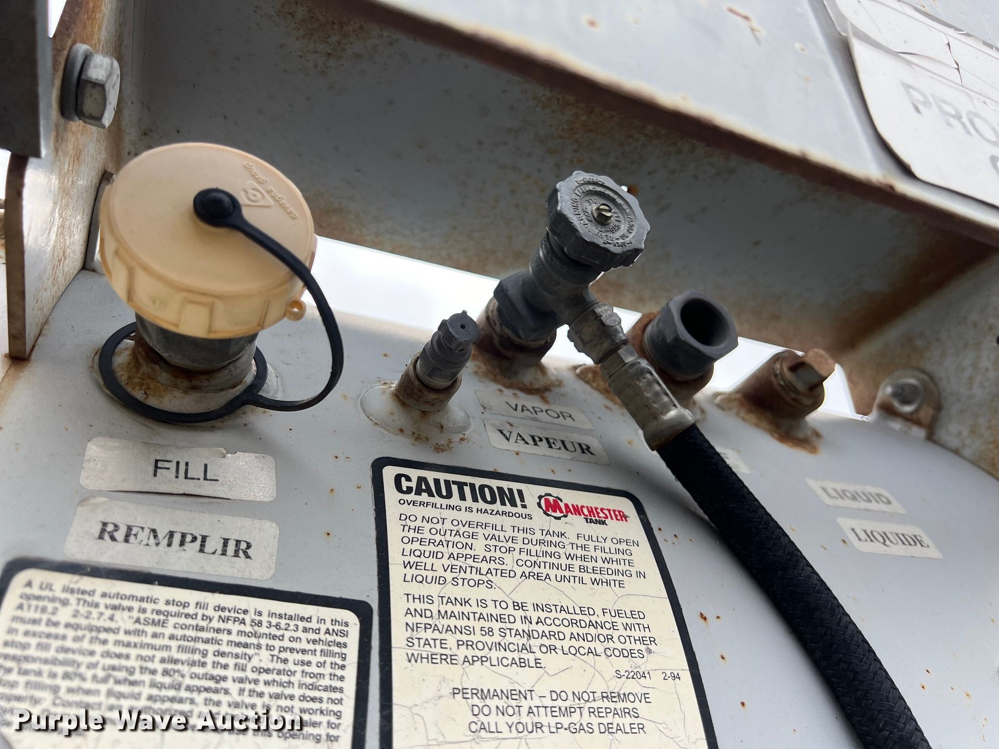 2009 Fair-West Trailers 16' x 7' 6" BP Utility flatbed trailer. VIN: 1C9B1162491288479, Unit #: 09J851. Dimensions Overall: 21' 6" L x 7' 10" W, Deck: 16' L x 7' 6" W, Deck height: 40". Features Deck type: Steel, Lift Tommy Gate Tommy Lift, Serial: 00466974M, Propane tank 2009 Manchester, Serial: 76091, Capacity: 109 gallons, Propane burner heated paint striper. Chassis Ball hitch: 2 5/16", Landing gear: Single, Suspension: Spring, Brakes: Electric, Axles: Tandem, GVWR: 14,000 lbs. Tires Steel wheels, Size: 225/90R16. Notes Non-operational Kohler gas engine, locked up. Texas title. Title distribution may be delayed up to 14 days from verification of funds. Cave Trucking. Georgetown, TX 78626