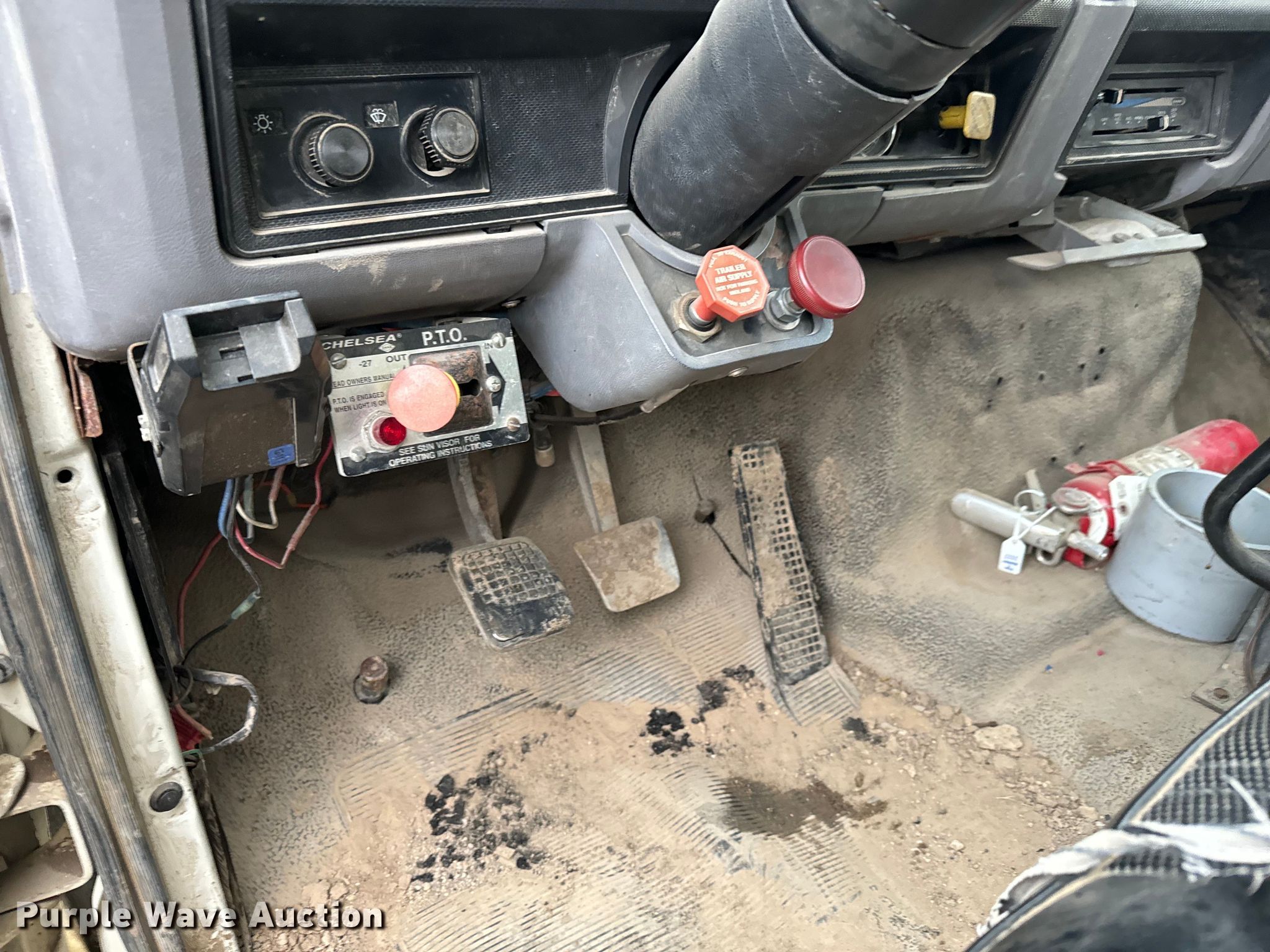 1995 Ford F800 dump truck. Miles: 114,284 on odometer, Miles or hours may vary, unit still in use, VIN: 1FDWF80C2SVA49624, Unit #: 005. Engine Ford, Displacement: 5.9L, Cylinders: 6, Fuel type: Diesel. Transmission Manual, Speed: 6. Chassis Axles: Single, Suspension: Spring, Brakes: Air, PTO, GVWR: 26,000 lbs. Interior AC, Heat. Features Dump bed Chrysteel, 10' L x 96" W, Side height: 25", Side board height: 9", Bed type: Steel, Roll tarp, Ram: Single, End gate: Air operated. Tires Front: 295/75R22.5, Rear: 10R22.5. Notes Unknown operating condition of AC. Item will be available for pickup beginning August 5, 2024. Kansas title. Diamond Engineering Co. - Wichita Division Liquidation - Open Inspection Tuesday, July 9 from 9:00 a.m. to 3:00 p.m.. 3512 West Pawnee Street. Wichita, KS 67213