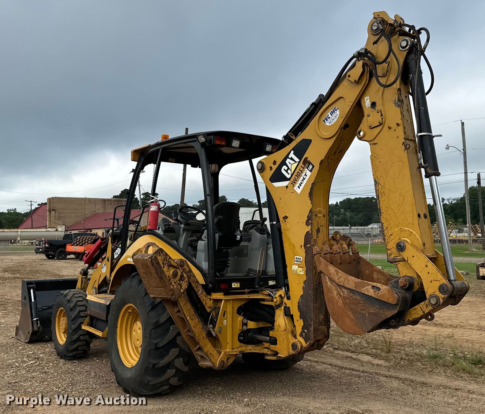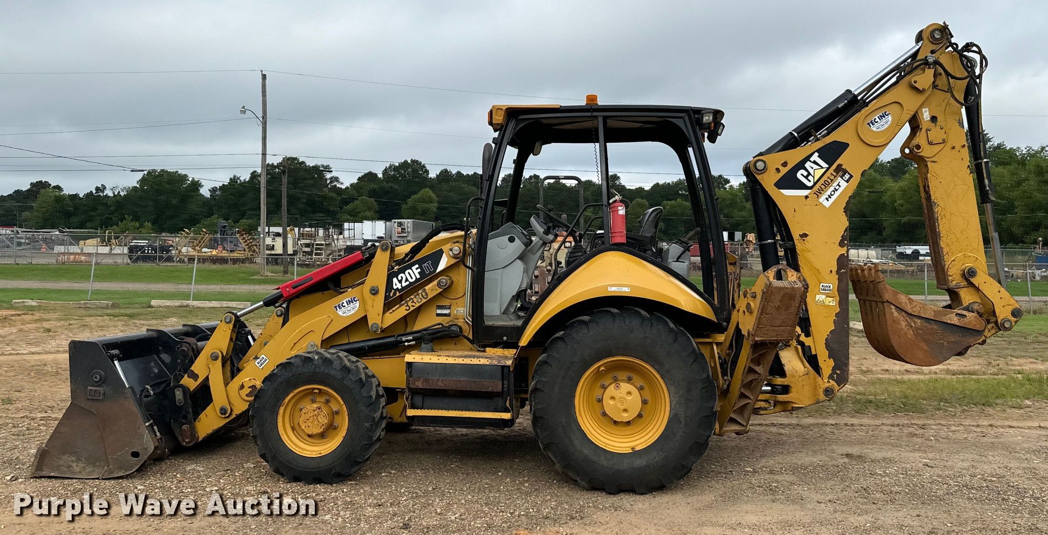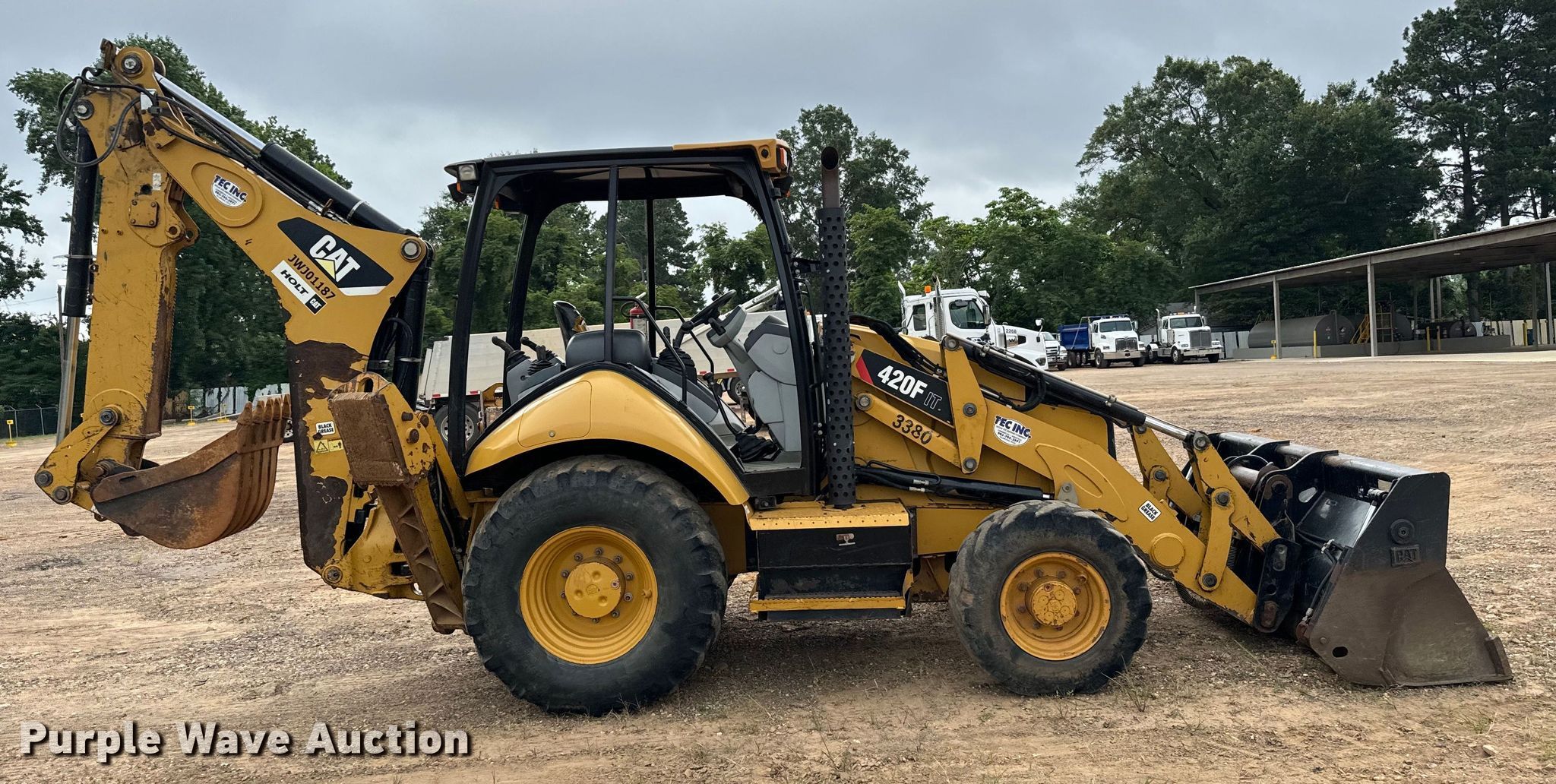 2013 Caterpillar 420F IT backhoe. Hours: 5,443 on meter, Serial: CAT0420FCJWJ01187. Engine Caterpillar, Displacement: 4.4L, Cylinders: 4, Fuel type: Diesel. Transmission Shuttle shift, 4F - 4R. Chassis Four wheel drive, Differential lock. Operators station OROPS, Backhoe controls: Pilot control, Pattern changer. Features Loader IT Carrier, Quick coupler: Manual, Auxiliary hydraulics, Four-in-one, Width: 93", Cutting edge: Weld-on, Backhoe Extendable stick, Bucket Width: 23", Teeth: 5.. Tires Front: 320/80-18, Rear: 19.5L-24. Tatum Excavating Company. Texarkana, TX 75501