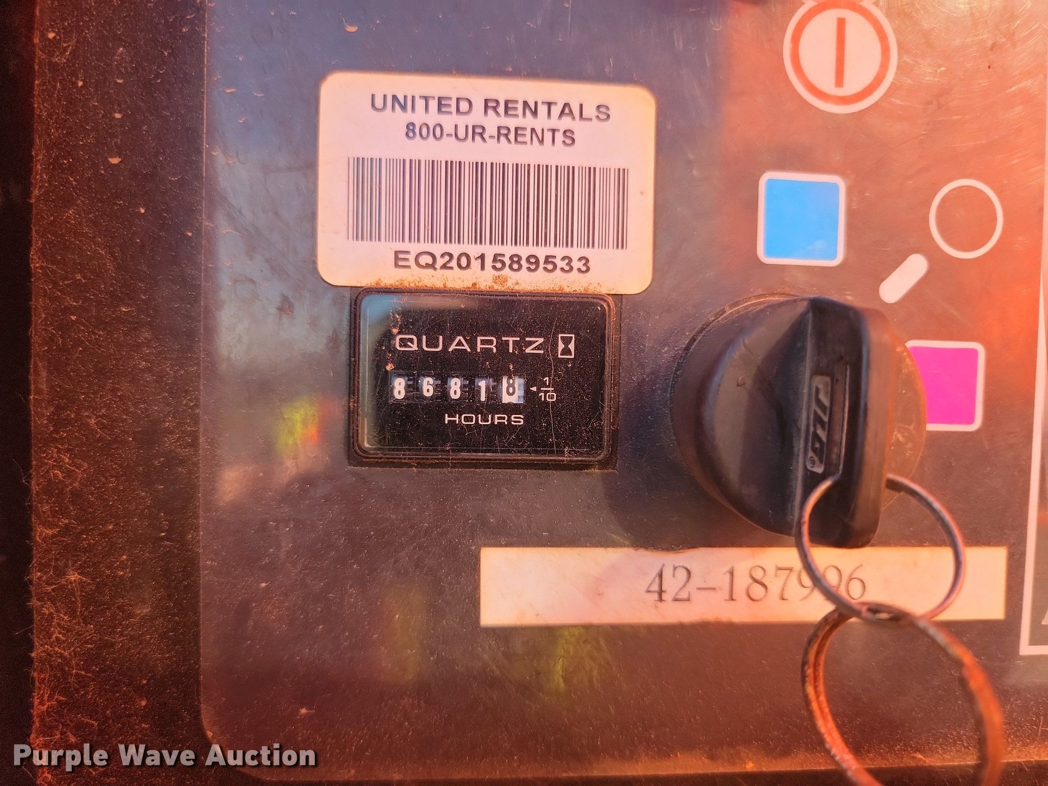 2014 JLG 600S boom lift. Hours: 8,682 on meter, Serial: 0300188604, Unit #: 10267892. Engine Deutz TD 2.9L4, Displacement: 2.9L, Cylinders: 4, Fuel type: Diesel. Chassis Four wheel drive. Features Rough terrain, Boom type: Telescopic, Maximum lift capacity: 1,000 lbs, Maximum reach length: 49.47', Maximum lift height: 60', Hydraulic leveling, Platform: 96" L x 36" W, AC power outlet, Sky Power, Sky Welder, Controls: Platform, Ground, Platform rotation: Hydraulic, Certification valid through: 05/2023. Tires Tire size: 39x15-22.5, Foam filled. Notes Hydraulic hose leak. Buyer is hereby notified that seller has assigned its rights (but not its obligations) in the agreement to sell the asset(s) described herein to United Rentals Exchange, LLC., a qualified intermediary, as part of Section 1031 like-kind exchange program. United Rentals. Williston, ND 58801
