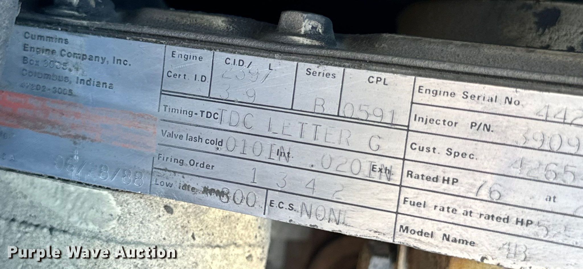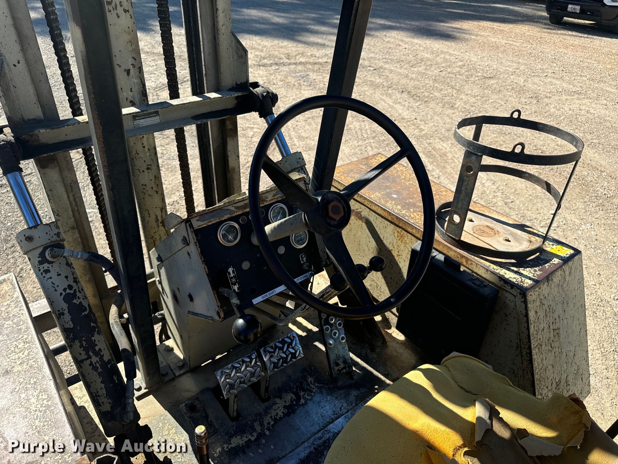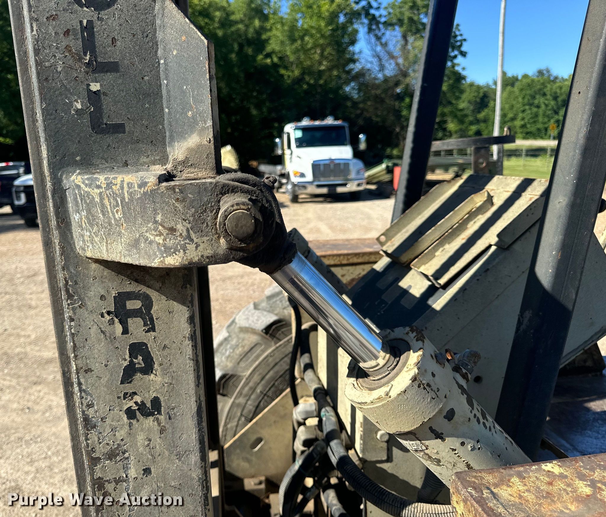 Ingersoll-Rand RT706E forklift. Hours: 6,161 on meter, Serial: 706YC5108MCJ. Engine Cummins 4B, Serial: 44272470, Displacement: 3.9L, Cylinders: 4, Fuel type: Diesel. Transmission Powershift. Operators station Canopy. Features Maximum lift capacity: 6,000 lbs, Mast stages: 2, Side shift, Mast tilt, Fork length: 46". Tires Front: 16.9-24, Rear: 11.00-16. Notes Intermittent steering issues. Heritage Tractor. Jefferson City, MO 65101
