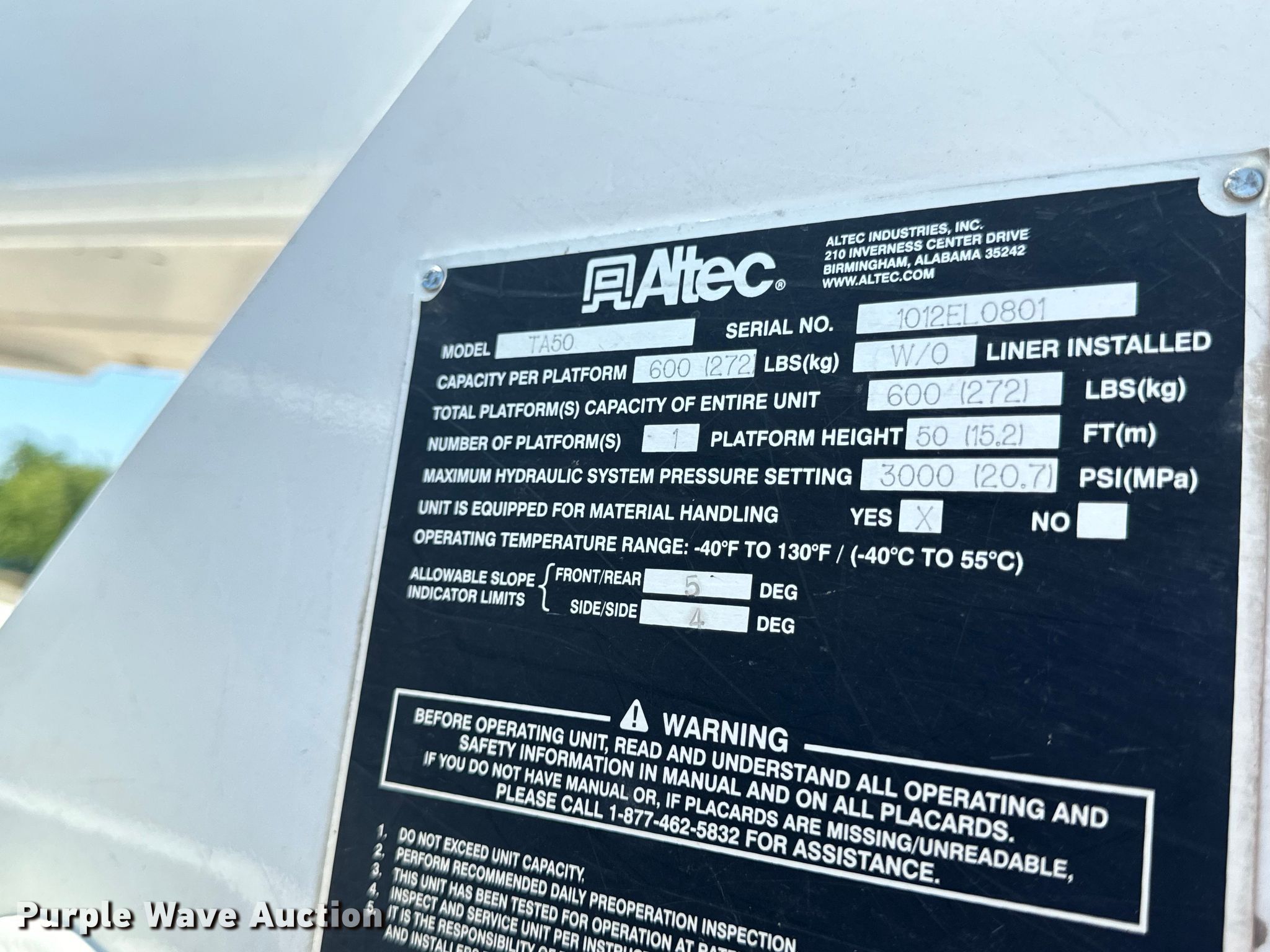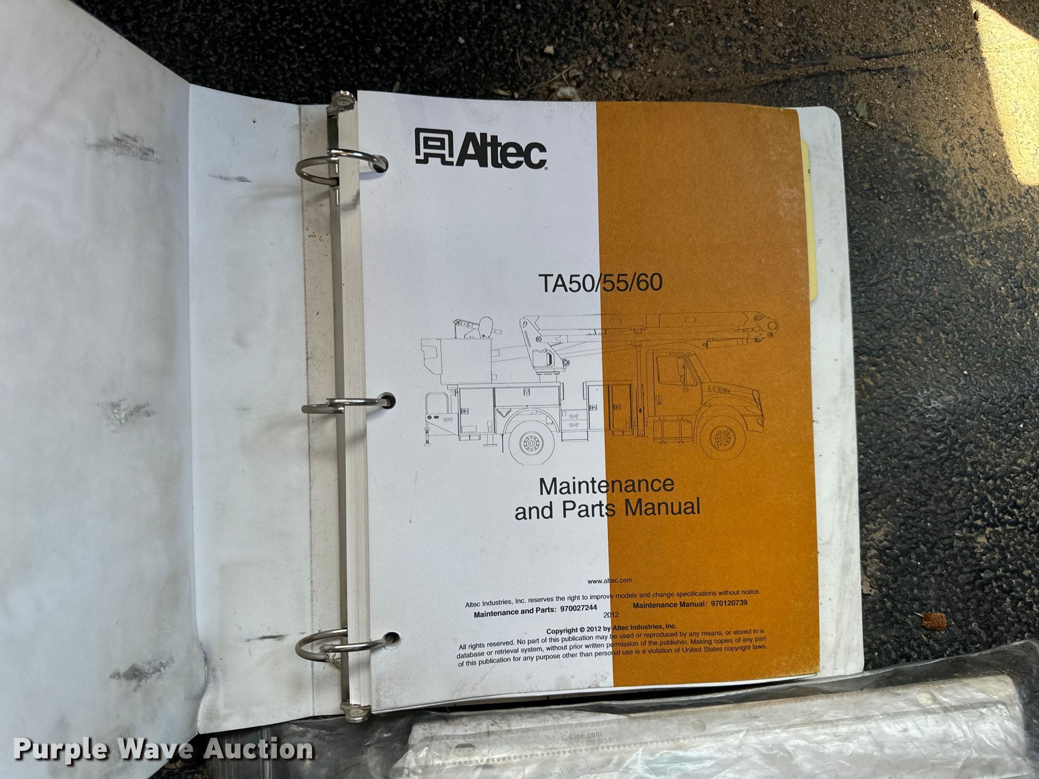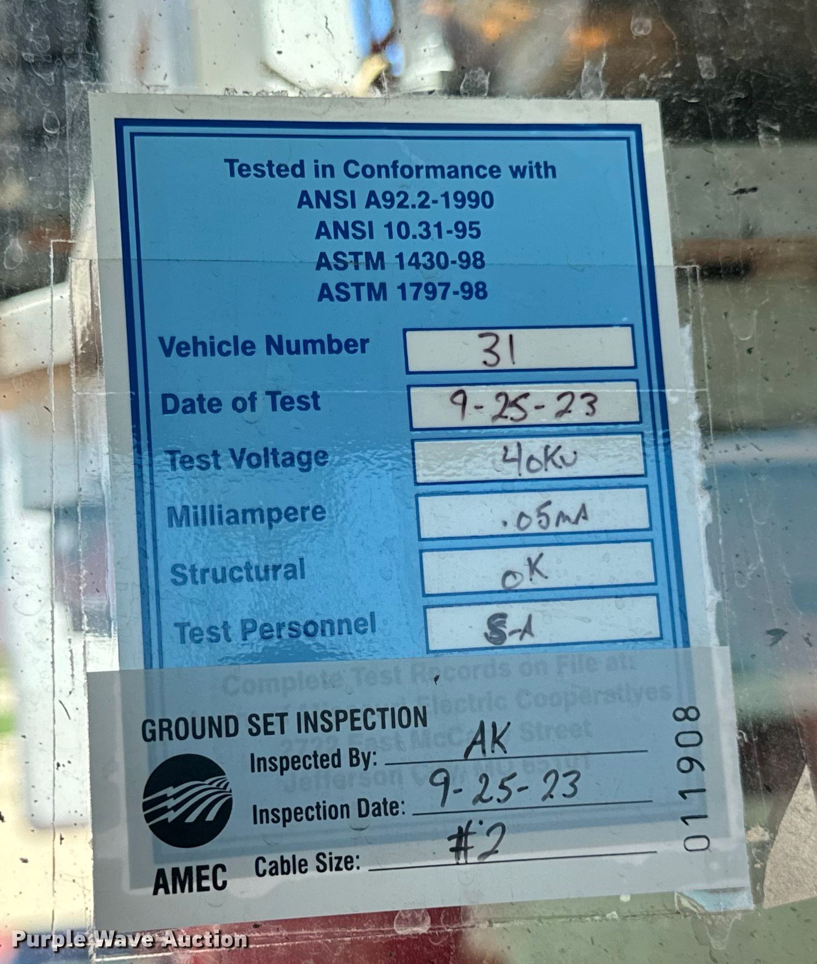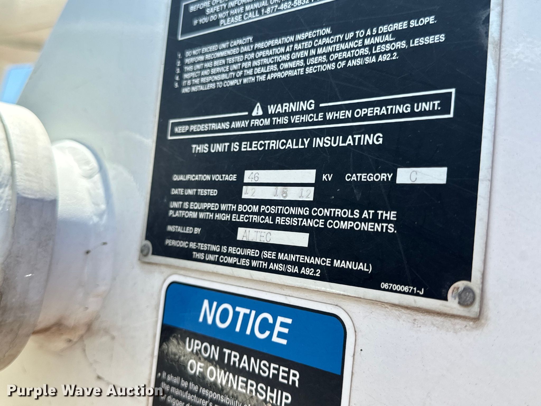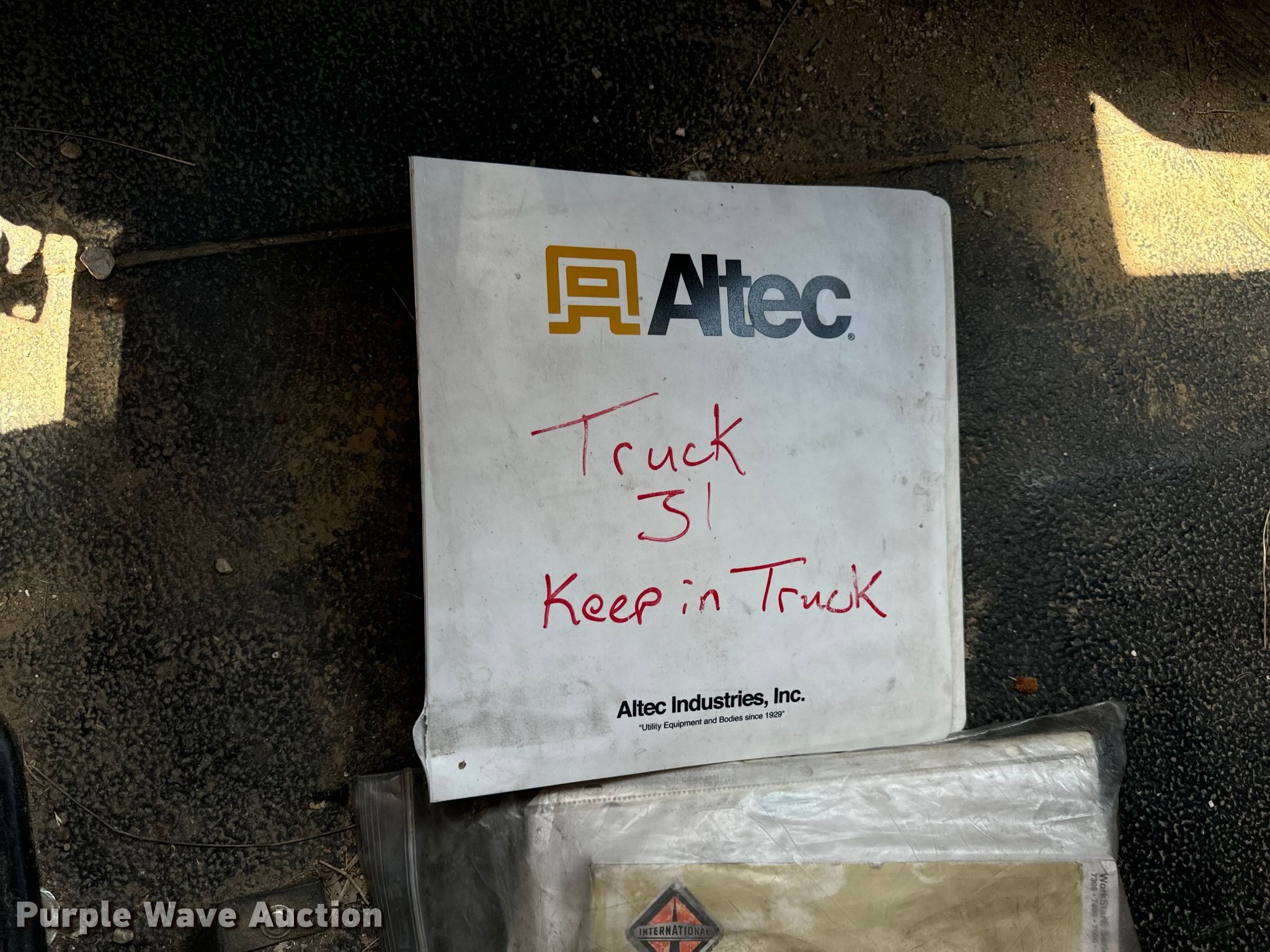 2013 International WorkStar 7400 bucket truck. Miles: 106,384 on odometer, Hours: 9,478 on meter, VIN: 1HTWEAAR6DJ196737. Engine International MaxxForce, Displacement: 7.6L, Cylinders: 6, Fuel type: Diesel. Transmission Allison, Automatic. Chassis Axles: Single, Suspension: Spring, Brakes: Air, PTO, Wet kit, GVWR: 39,000 lbs. Interior AC, Heat, Cruise control, Auxiliary controls. Features Bed Altec 970185487-2001403, Serial: 014-23232352, 13' 4" L x 94" W, Boom Altec TA50, Serial: 1012EL0801, Maximum lift capacity: 600 lbs, Maximum lift height: 50', Boom type: Articulating, Insulated, Telescopic, Man basket, Boom controls Ground, Platform/ basket, Material handler, Certification valid through: 09/2024. Tires Front: 385/65R22.5, Rear: 11R22.5. Missouri title. Three Rivers Electric Cooperative. Linn, MO 65051
