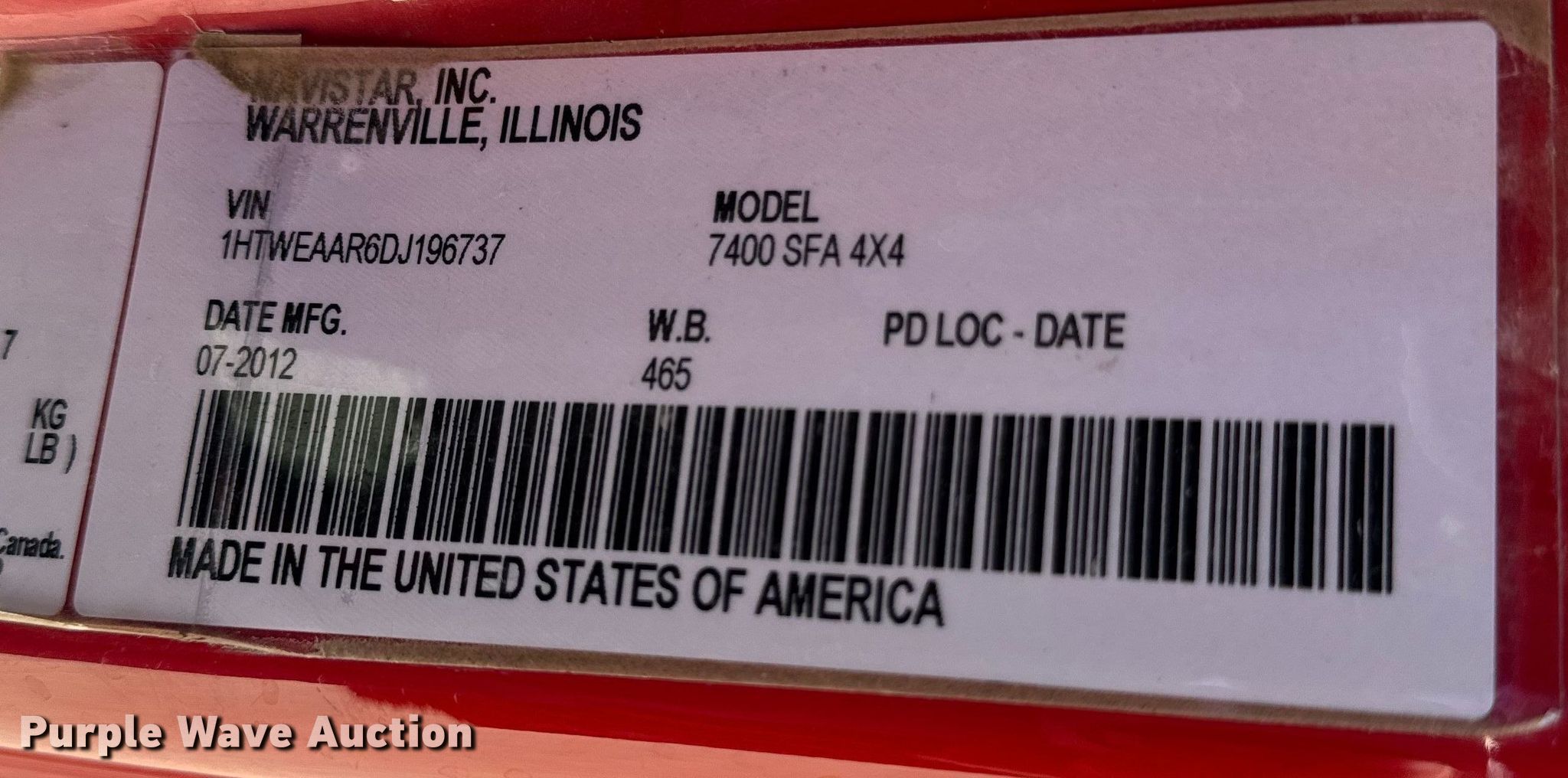 Purple Wave is selling a used Bucket Truck in Missouri. This item is a 2013 International WorkStar 7400 bucket truck with the following: Miles: 106,384 on odometer, Hours: 9,478 on meter, VIN: 1HTWEAAR6DJ196737
