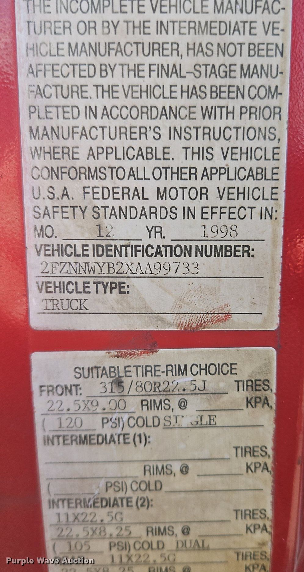 - VIN: 2FZNNWYB2XAA99733