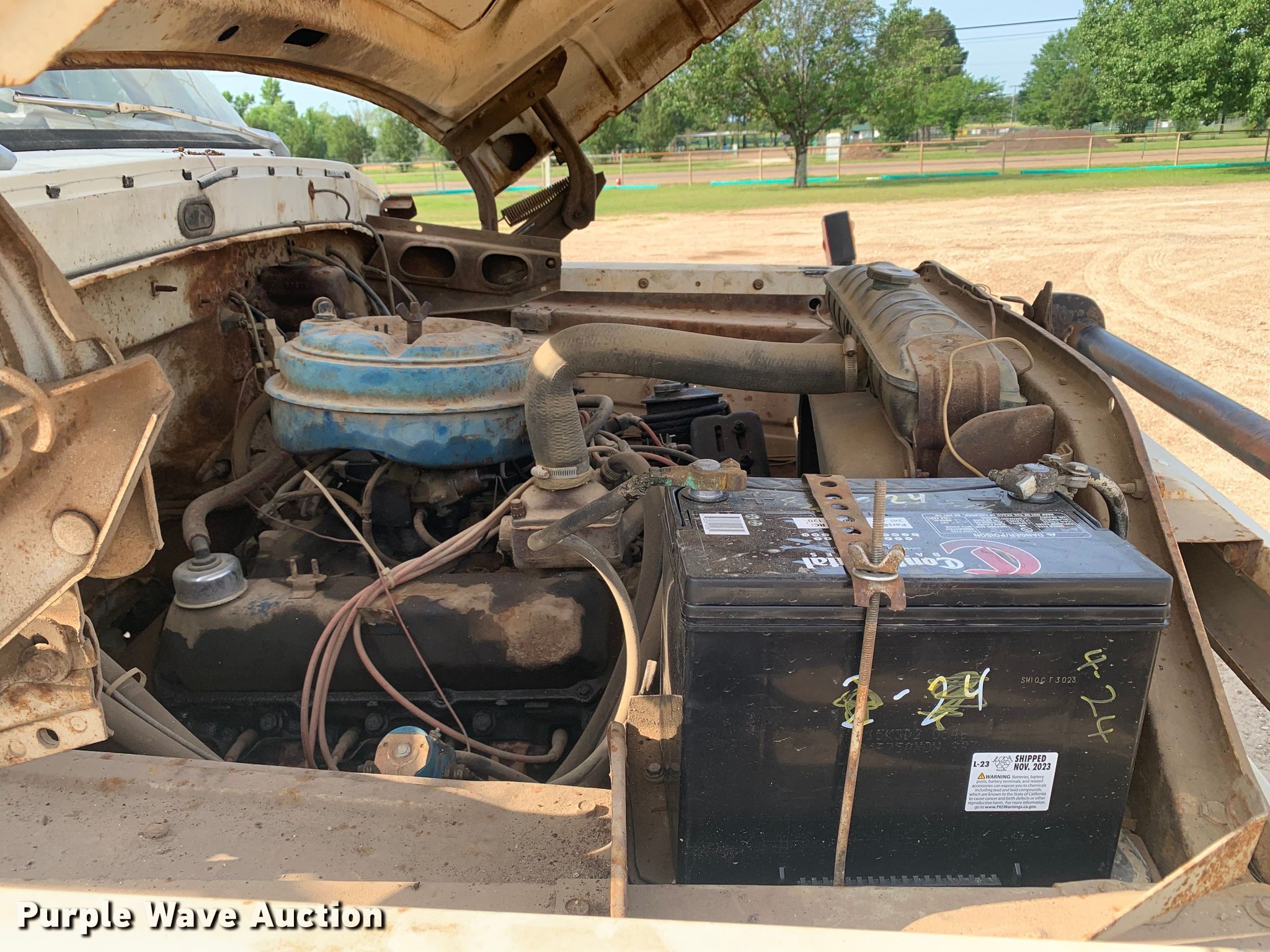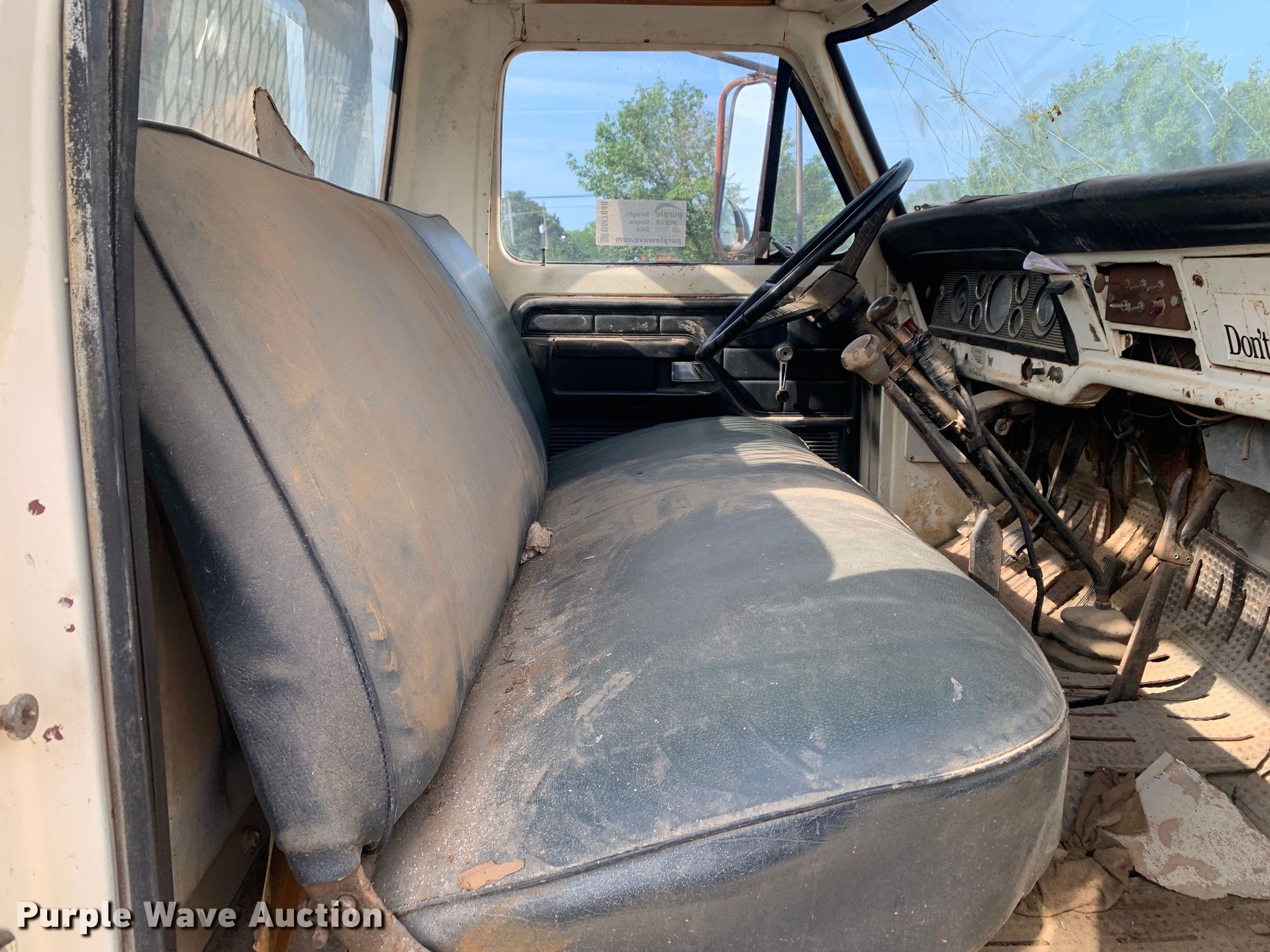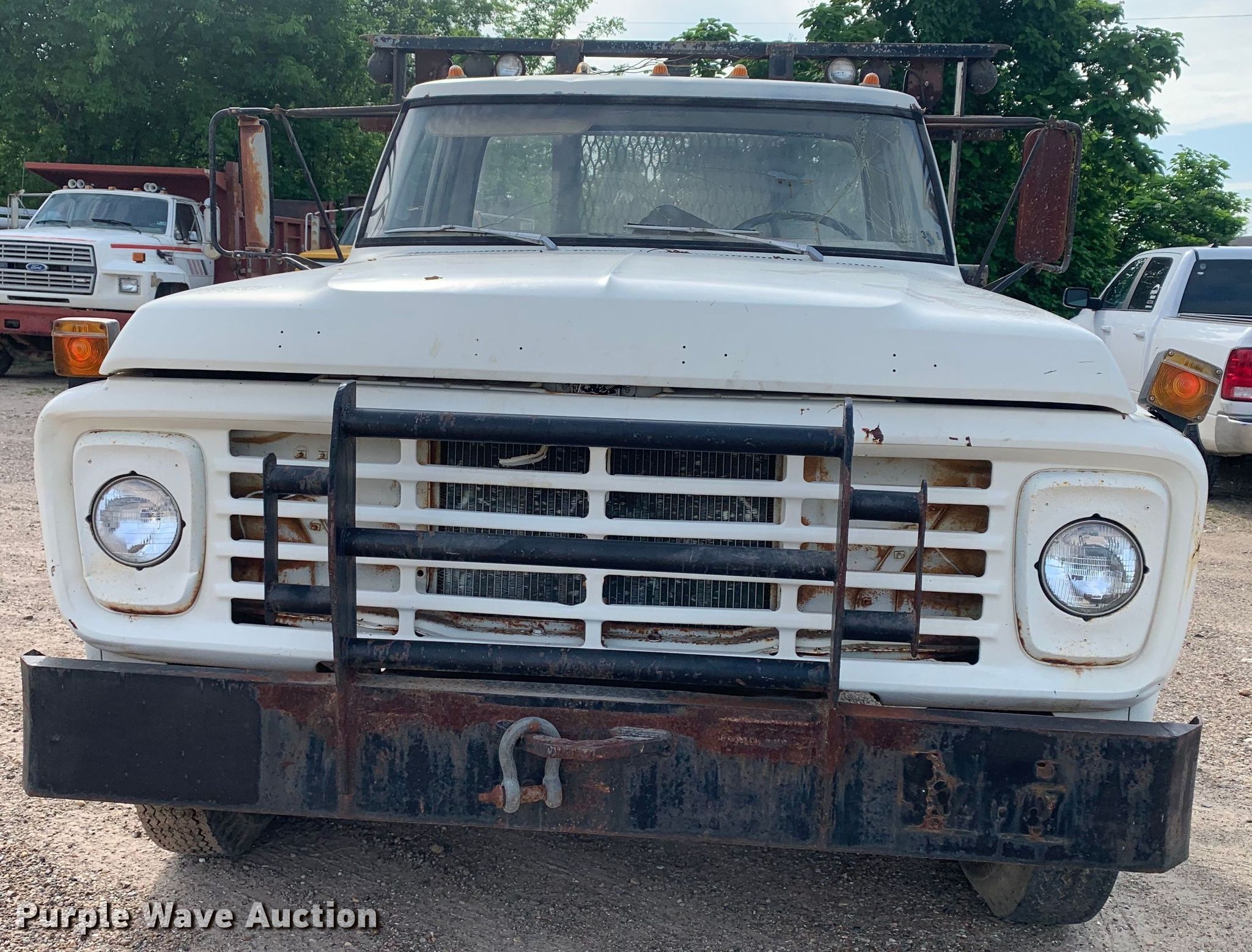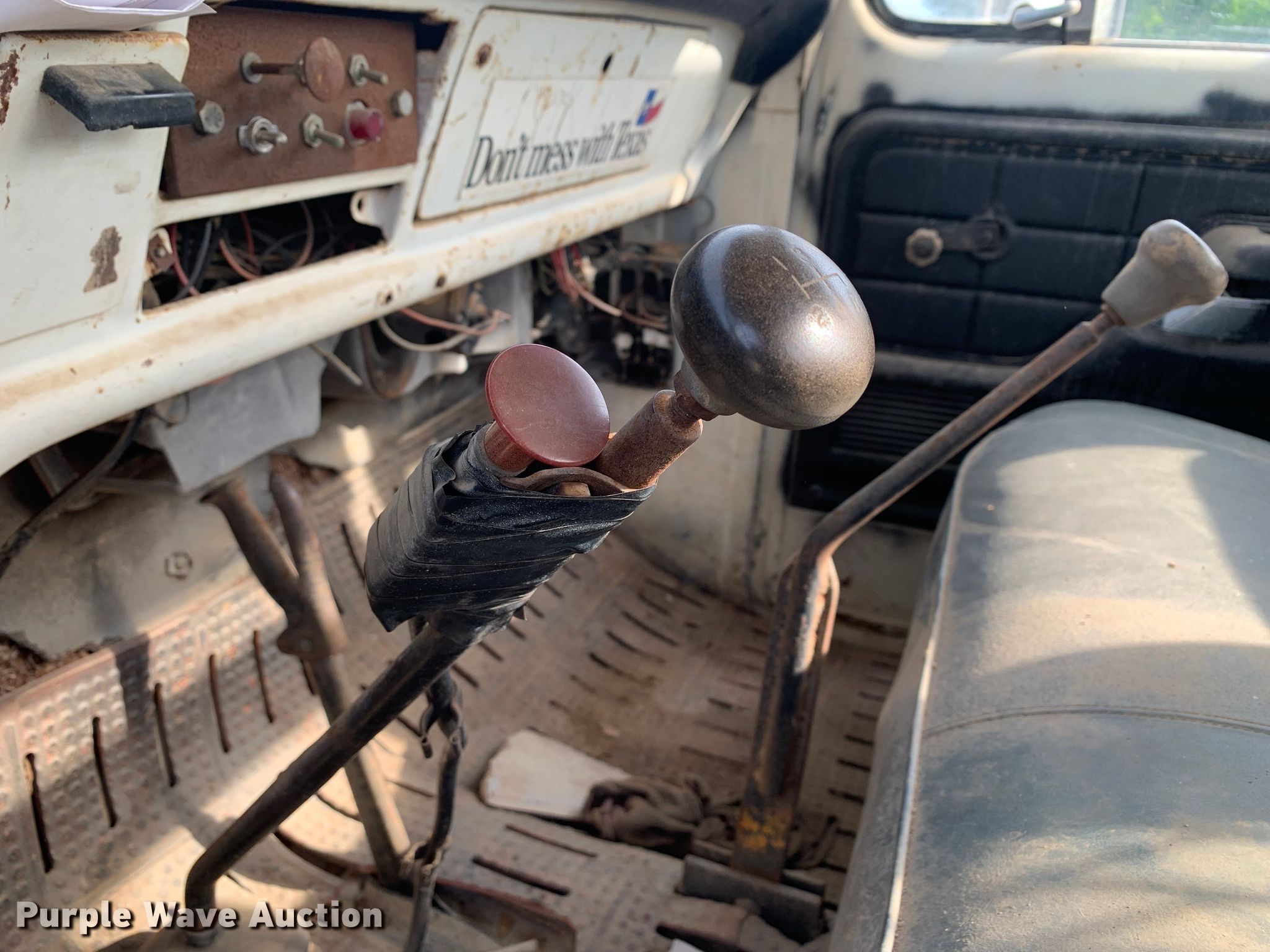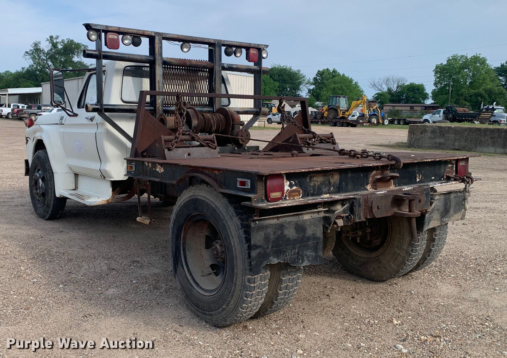 1973 Ford F600 flatbed truck. Miles: 78,518 on odometer, VIN: F60DCR48436. Engine Ford, Displacement: 370 C.I.D., Cylinders: 8, Fuel type: Gas. Transmission Model: Split shifting, Manual, Speed: 8. Chassis Axles: Single, Suspension: Spring, Brakes: Hydraulic, GVWR: 19,200 lbs. Interior Heat. Features Flatbed 6' 3" L x 8' W, Winch, Hitch: Gooseneck. Tires Size: 9.00R20. Notes Contents included, Windshield chipped or cracked, Brake issues, master cylinder needs replaced , Driver side mirror cracked. Texas title. Title distribution may be delayed up to 14 days from verification of funds. Bowie County, TX. 850 West Front Street. De Kalb, TX 75559
