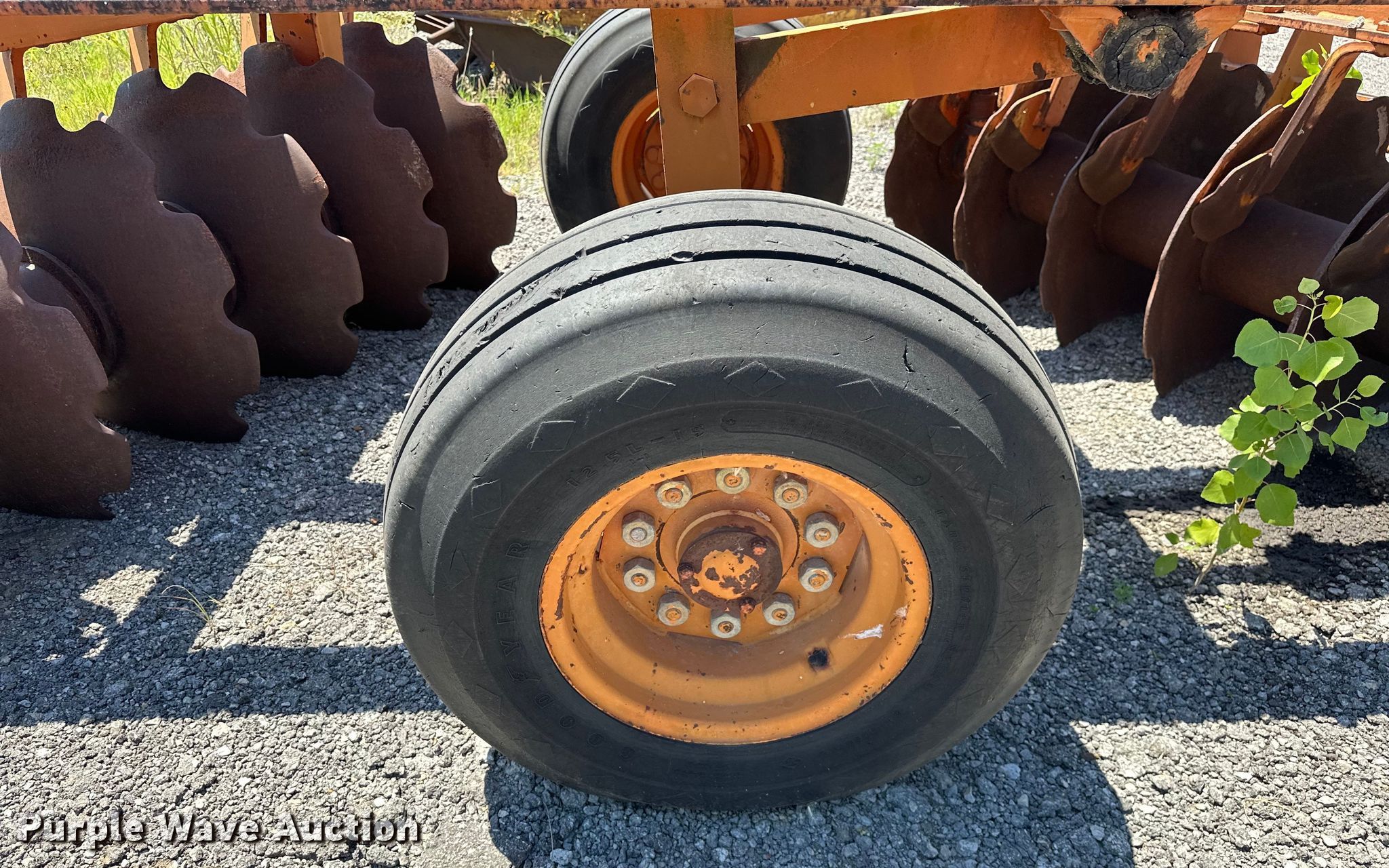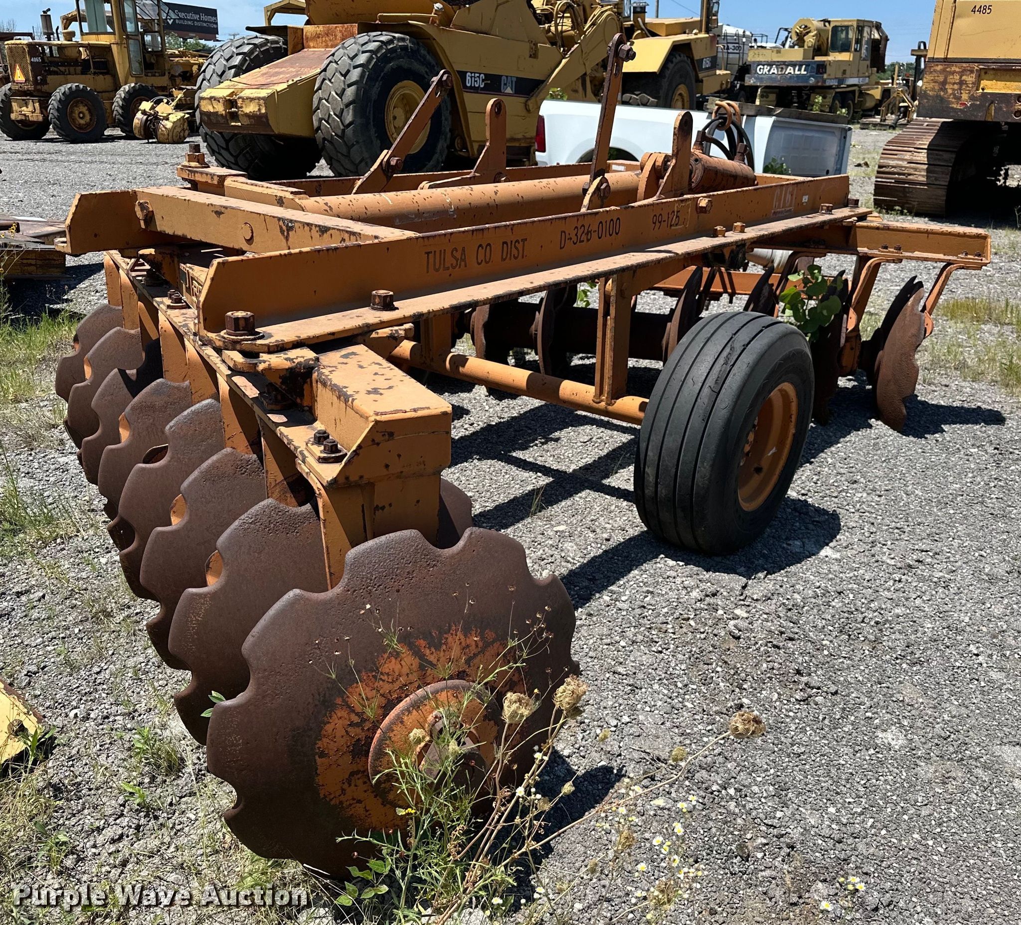 Rome off-set disk. Overall width: 96", Serial: 8TAW1955, Unit #: 4161. Features Front blades Diameter: 28.5", Spacing: 12", Rear blades Diameter: 30", Spacing: 12", Disk scrapers, Operation Hydraulic fold. Tires Tire size: 12.5L-15. Notes Unknown operating condition. Tulsa County Highway Construction Division - Open Inspection Monday, July 29. 6633 North 115th East Avenue. Owasso, OK 74055