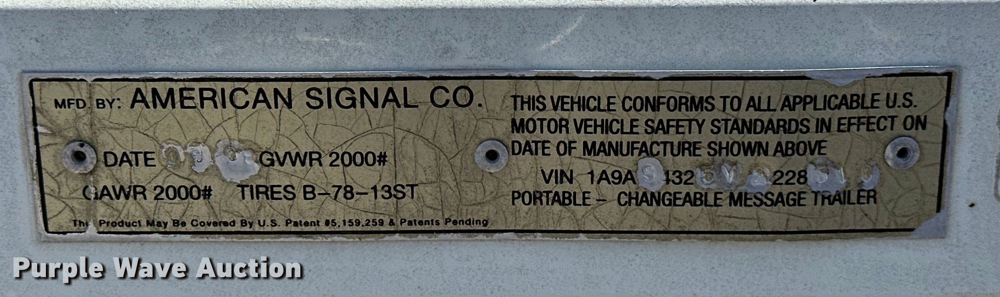 American Signal CMS-GP432-T message board trailer. Serial: 1A9AS4325V2228510, Unit #: 4721. Trailer 10' L x 78" W, Ball hitch: 2". Tires Size: ST175/80D13. Notes Unknown operating condition. Transfer of ownership documentation will be a bill of sale. Tulsa County Highway Construction Division - Open Inspection Monday, July 29. 6633 North 115th East Avenue. Owasso, OK 74055