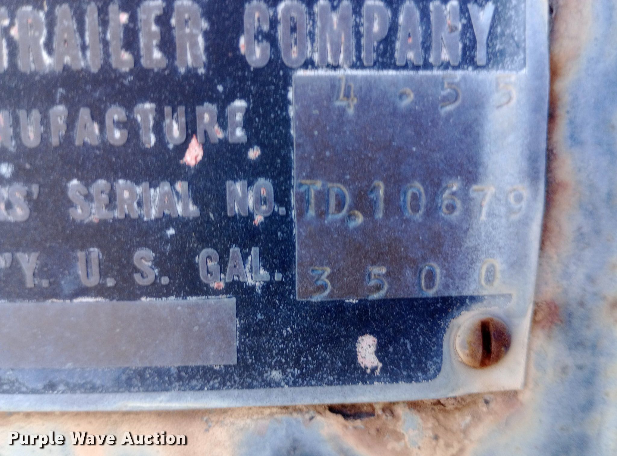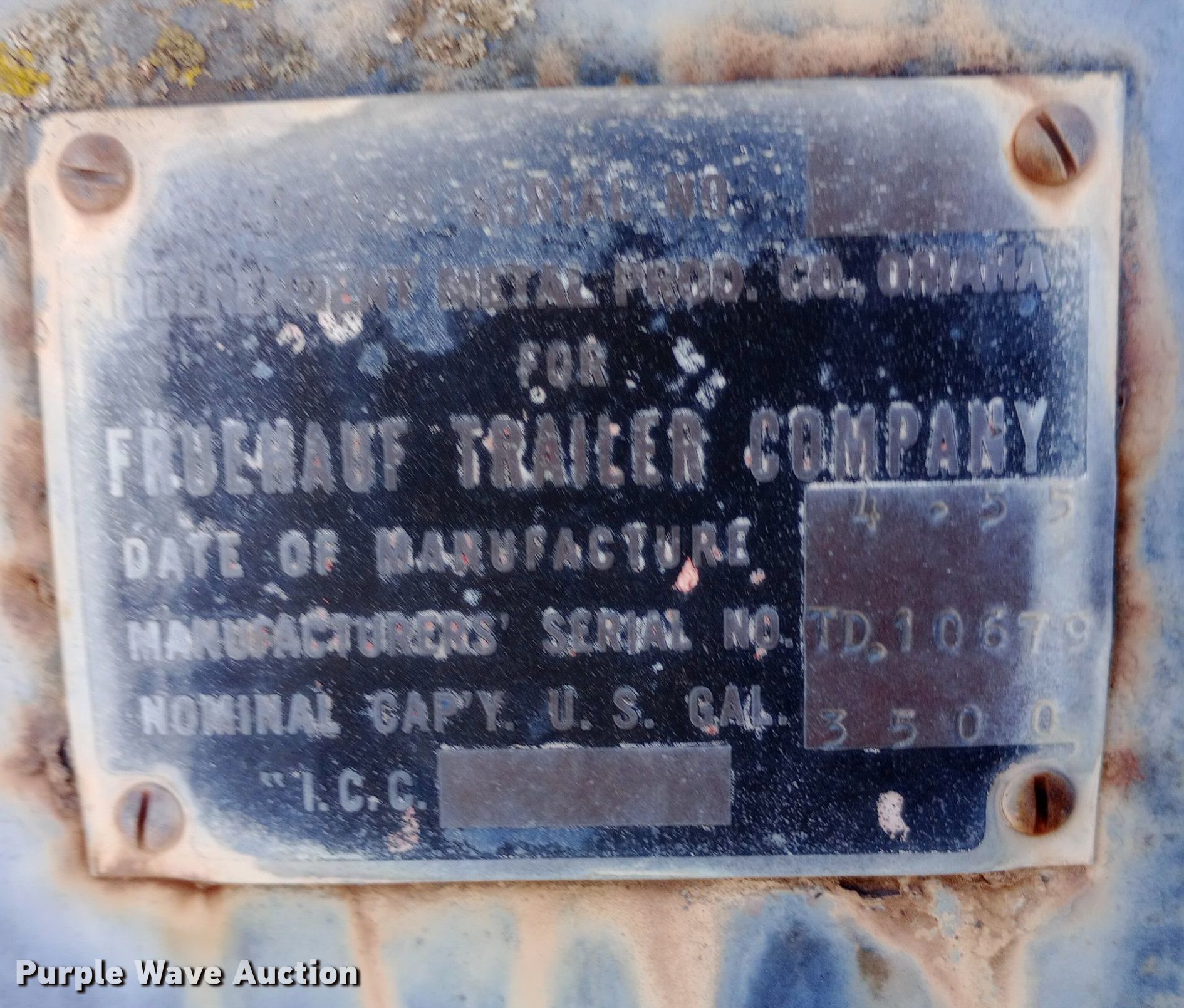 Purple Wave is selling a used Tank Trailer in Oklahoma. This item is a 1955 Fruehauf tank trailer with the following: VIN: TD10679, Unit #: 3857