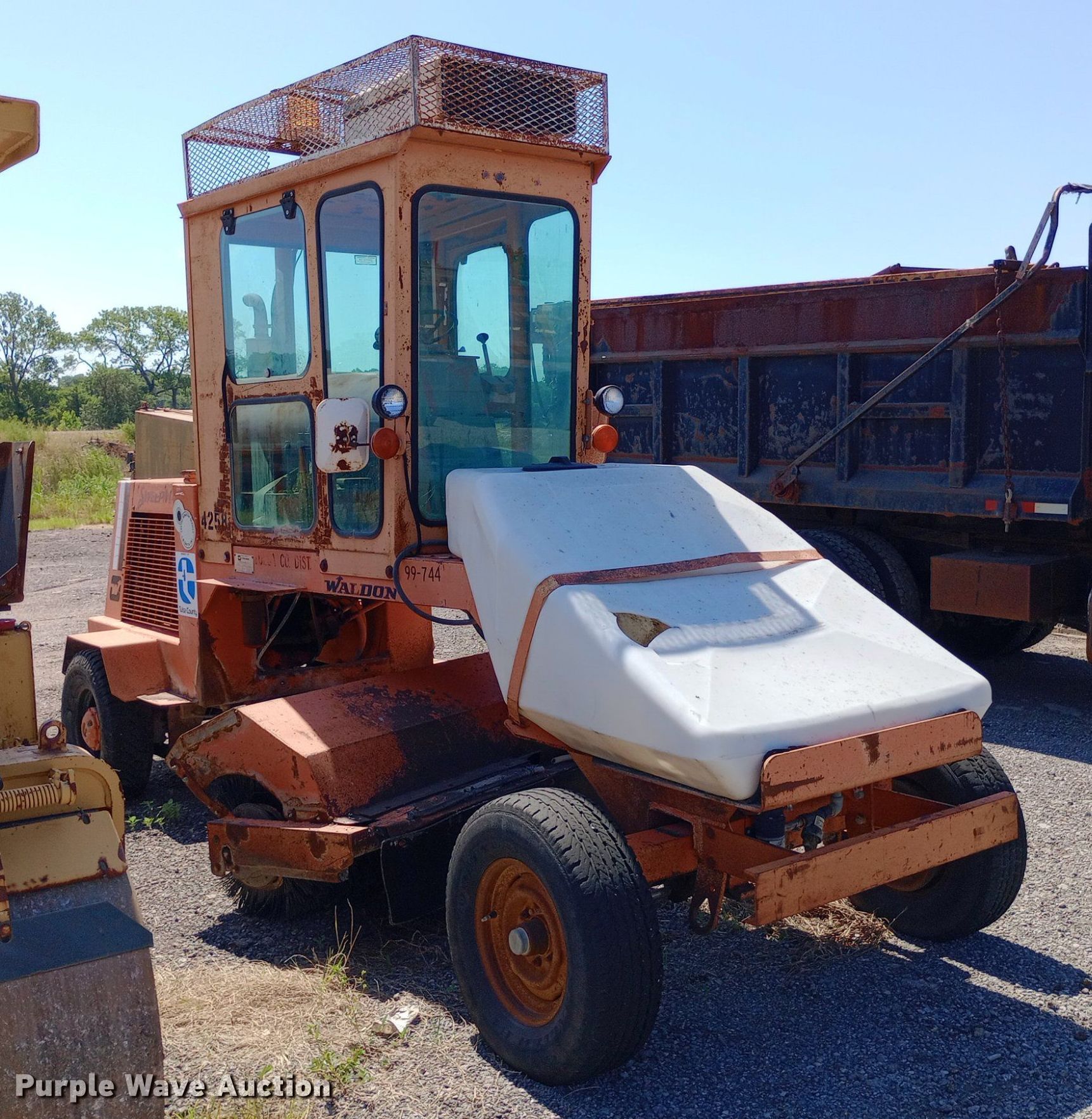 1987 Waldon Sweepmaster broom. Serial: 19063, Unit #: 4258. Engine Cylinders: 4, Fuel type: Diesel. Transmission Automatic. Chassis Suspension: Spring, Brakes: Hydraulic. Operators station Enclosed cab. Features Broom Width: 90", Water spray system. Tires Front: 235/75R15. Notes Unknown mechanical issues, Dead battery, Non-operational unit. Tulsa County Highway Construction Division - Open Inspection Monday, July 29. 6633 North 115th East Avenue. Owasso, OK 74055