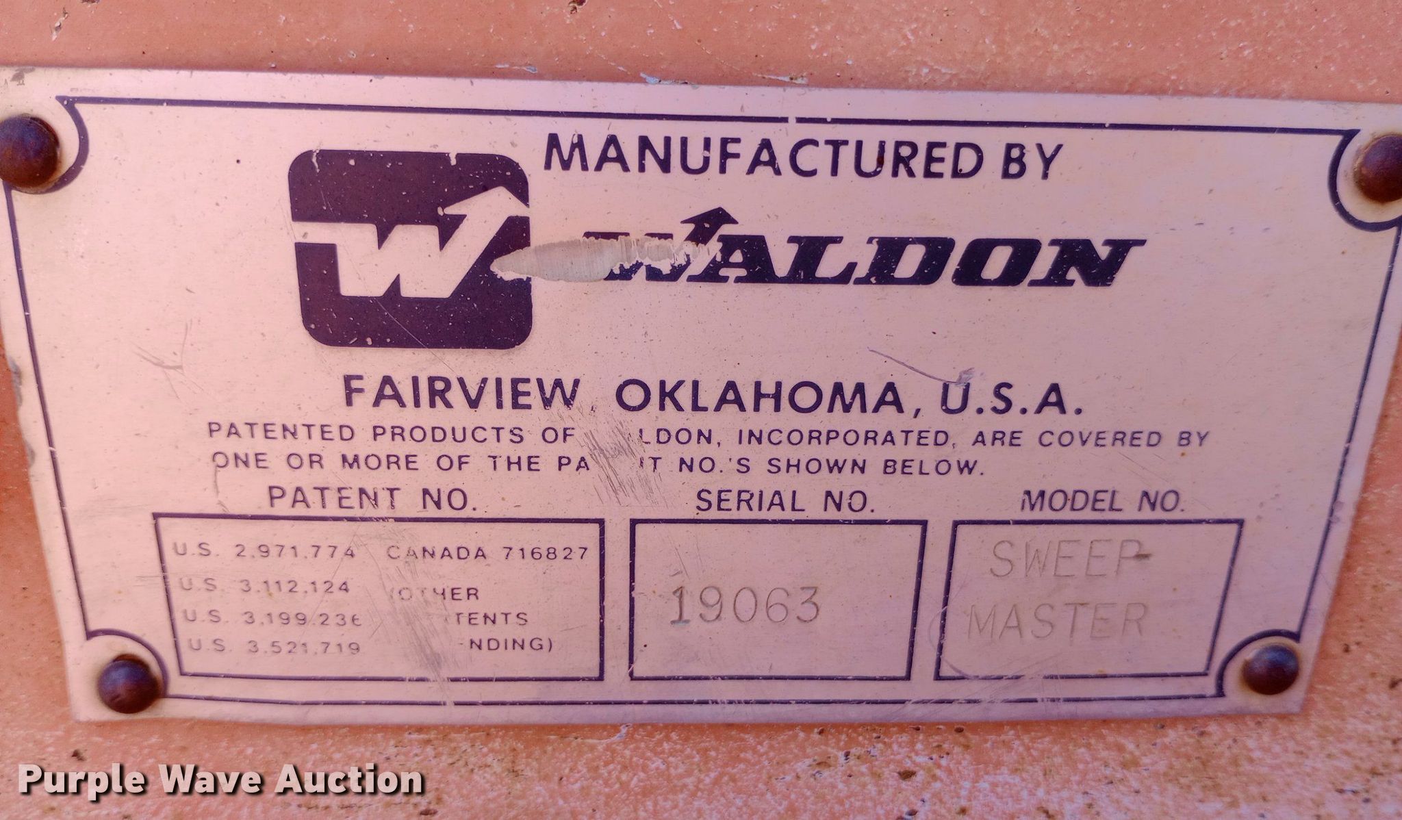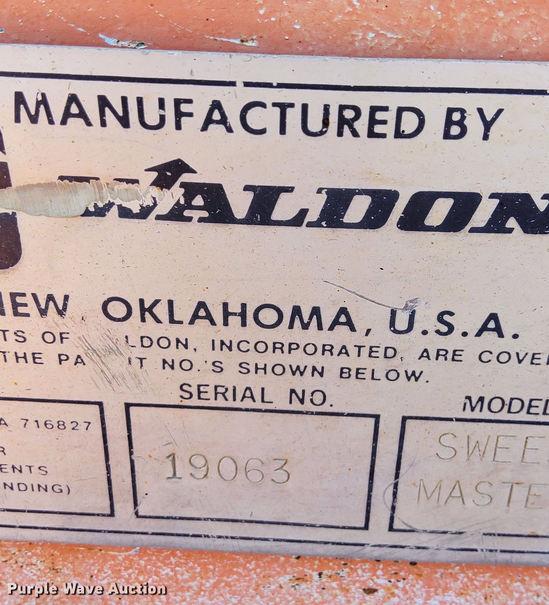 1987 Waldon Sweepmaster broom has sold in Owasso, Oklahoma for $1375. Item DP1081 sold on July 30th, 2024.