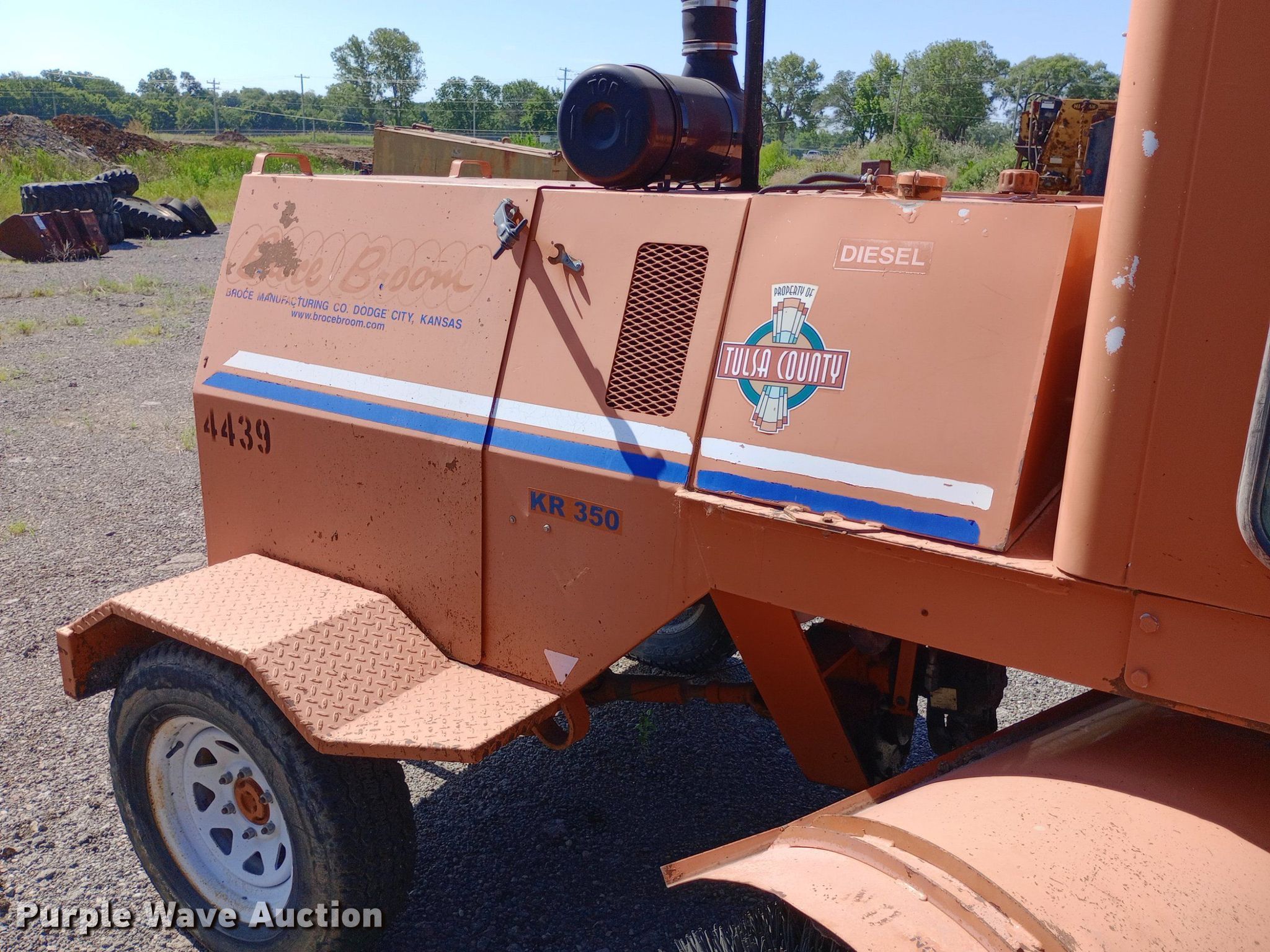 Purple Wave is selling a used Broom in Oklahoma. This item is a 2010 Broce Broom KR-350 broom with the following: Hours: 1,180 on meter, Serial: 407062, Unit #: 4439