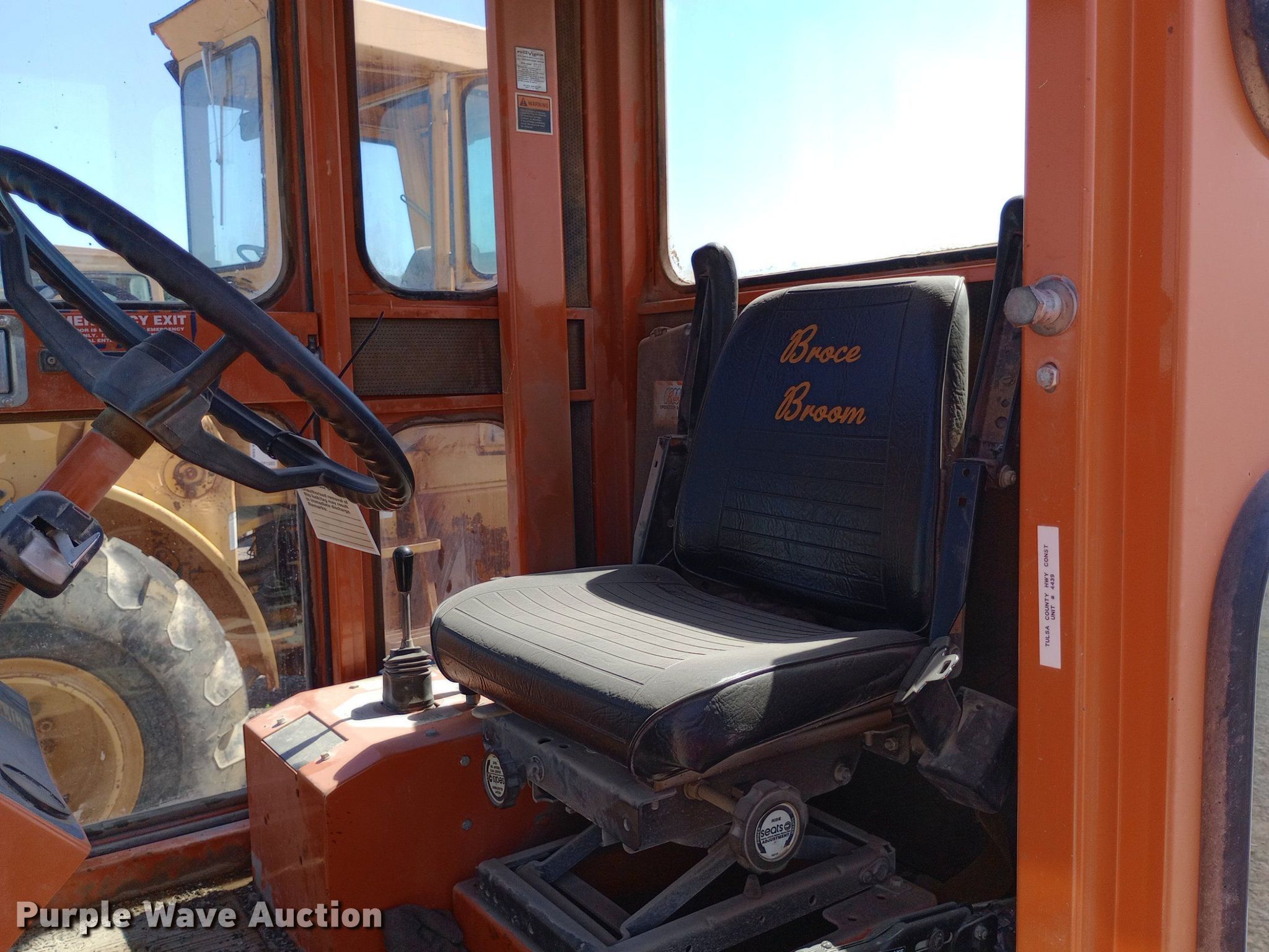 2010 Broce Broom KR-350 broom. Hours: 1,180 on meter, Serial: 407062, Unit #: 4439. Engine Kubota V3600-T, Cylinders: 4, Fuel type: Diesel. Transmission Hydrostatic. Chassis Suspension: Spring, Brakes: Hydraulic. Operators station Enclosed cab, AC, Heat. Features Broom Width: 96", Water spray system. Tires Front: 225/75R16. Notes Dead battery, Engine issues, needs head gasket , Non-operational unit. Tulsa County Highway Construction Division - Open Inspection Monday, July 29. 6633 North 115th East Avenue. Owasso, OK 74055