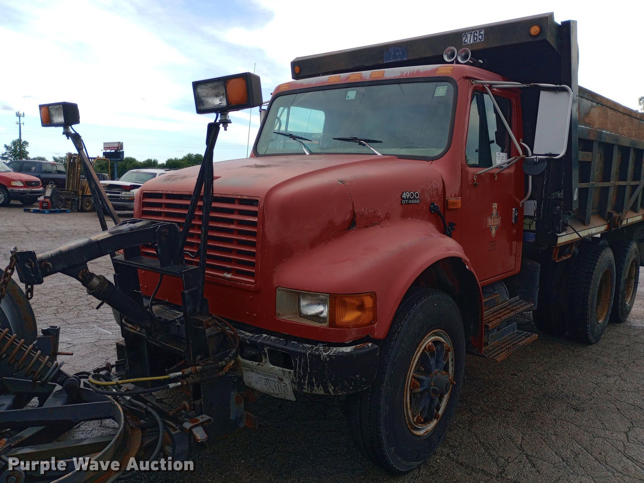 2001 International 4900 dump truck. Miles: 159,596 on odometer, Hours: 10,983 on meter, VIN: 1HTSHAAR31H384186, Unit #: 2765. Engine International 466E, Displacement: 7.6L, Cylinders: 6, Fuel type: Diesel. Transmission Automatic. Chassis Axles: Tandem, Differential lock: Inter-axle, Suspension: Spring over walking beam, Brakes: Air, PTO, GVWR: 52,000 lbs FAWR: 12,000 lbs, RAWR: 40,000 lbs. Interior Heat, Heated mirrors, Cruise control. Features Dump bed OxBodies, Capacity: 12 cu.yd., 13' L x 96" W, Side height: 48", Bed type: Steel, Roll tarp, Ram: Single, End gate: Air operated, Plow Henke, Width: 120". Tires Size: 11R22.5. Notes Roll tarp missing, Blade issues, wont engage to the left, Windshield chipped or cracked, Dead battery, Engine issues Dies when idling, Blow by. Oklahoma title. Title distribution may be delayed up to 30 days from verification of funds. Tulsa County Highway Construction Division - Open Inspection Monday, July 29. 6633 North 115th East Avenue. Owasso, OK 74055