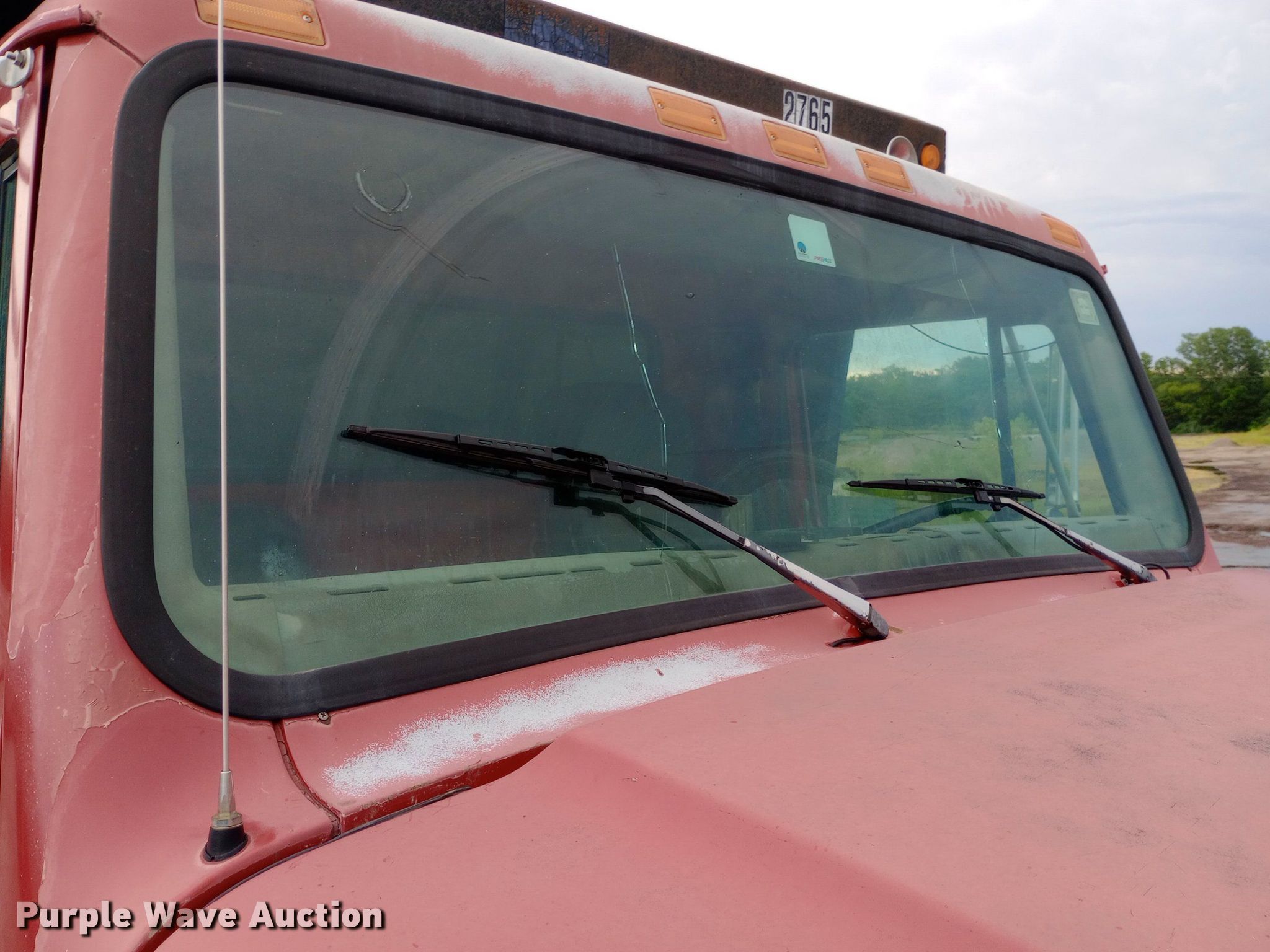 Purple Wave is selling a used Construction Dump Truck in Oklahoma. This item is a 2001 International 4900 dump truck with the following: Miles: 159,596 on odometer, Hours: 10,983 on meter, VIN: 1HTSHAAR31H384186, Unit #: 2765