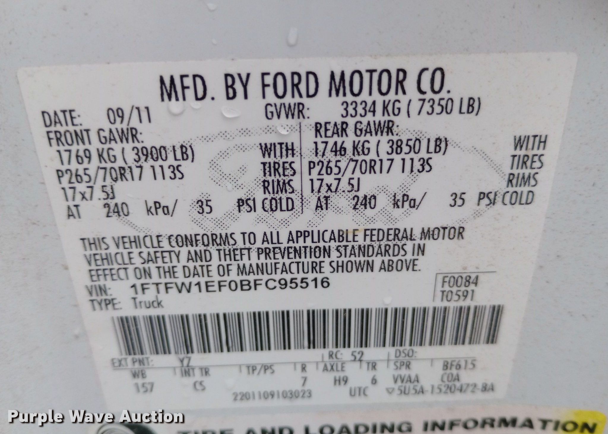 Purple Wave is selling a used 1/2 Ton Pickup or Van in Oklahoma. This item is a 2011 Ford F150 Crew Cab pickup truck with the following: Miles: 110,271 on odometer, VIN: 1FTFW1EF0BFC95516, Unit #: 3117