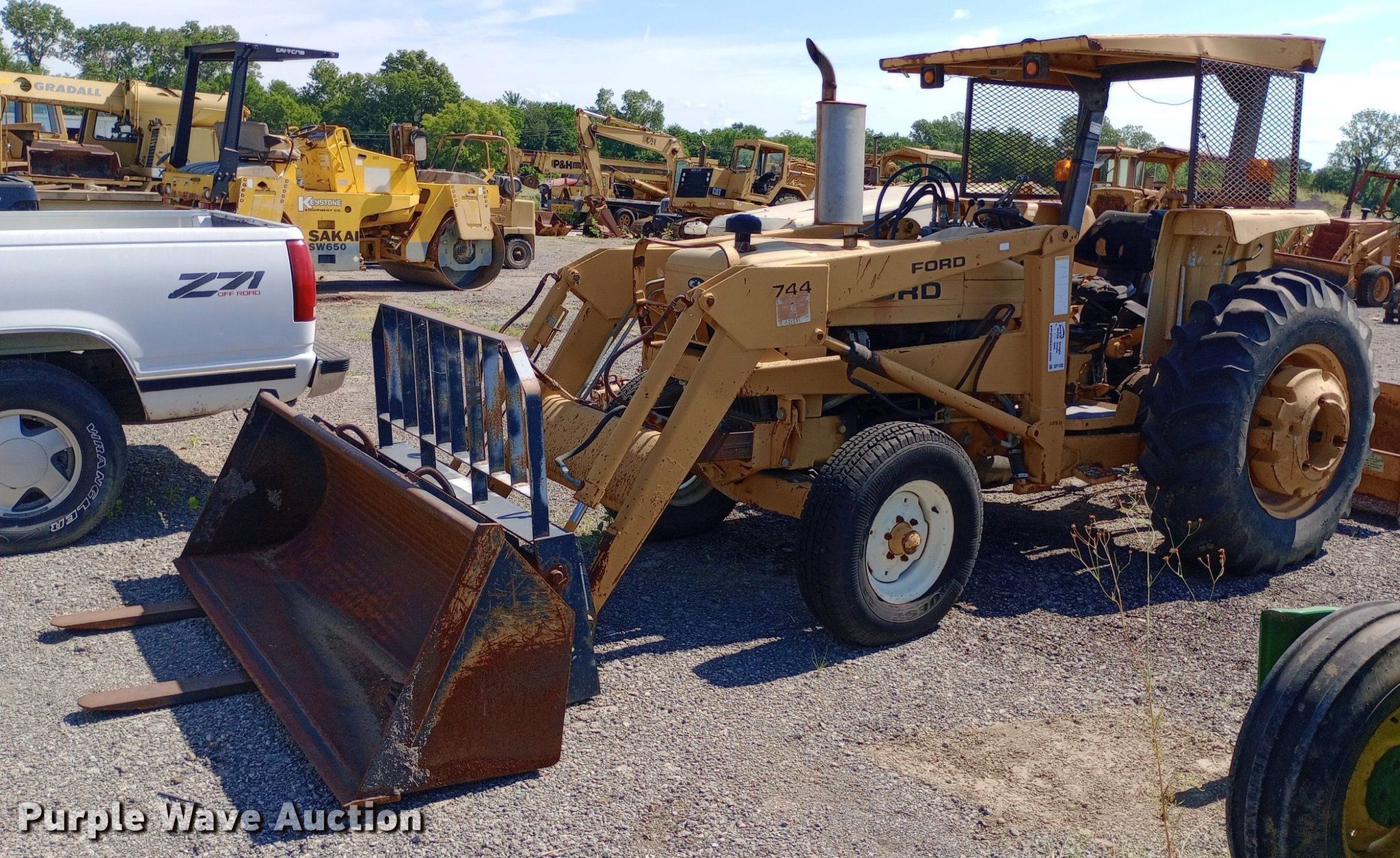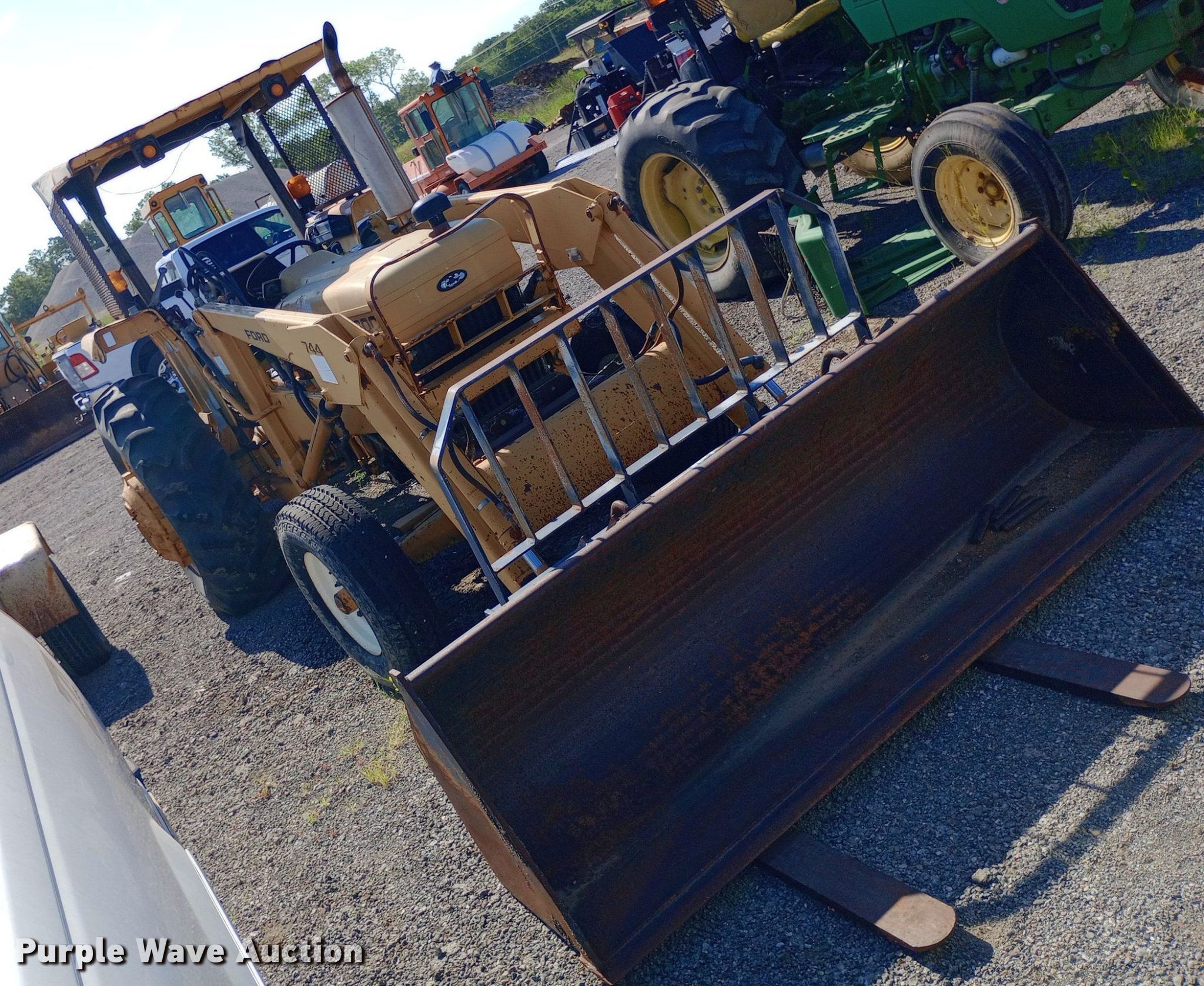 Ford 260C tractor. Serial: BC92609, Unit #: 3725. Engine Cylinders: 3, Fuel type: Diesel. Transmission Manual. Features PTO: 540, Three point, Hydraulic remote sets Rear: 1, Loader Model: 744, Controls: Two-lever, Bucket Width: 84", Fork length: 42", Box blade Width: 72". Tires Front: 235/85R16, Rear: 14.9-28. Notes Dead battery, Non-operational unit. Tulsa County Highway Construction Division - Open Inspection Monday, July 29. 6633 North 115th East Avenue. Owasso, OK 74055
