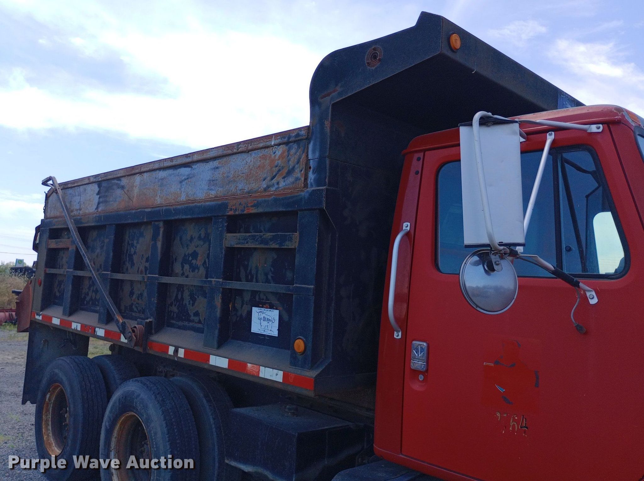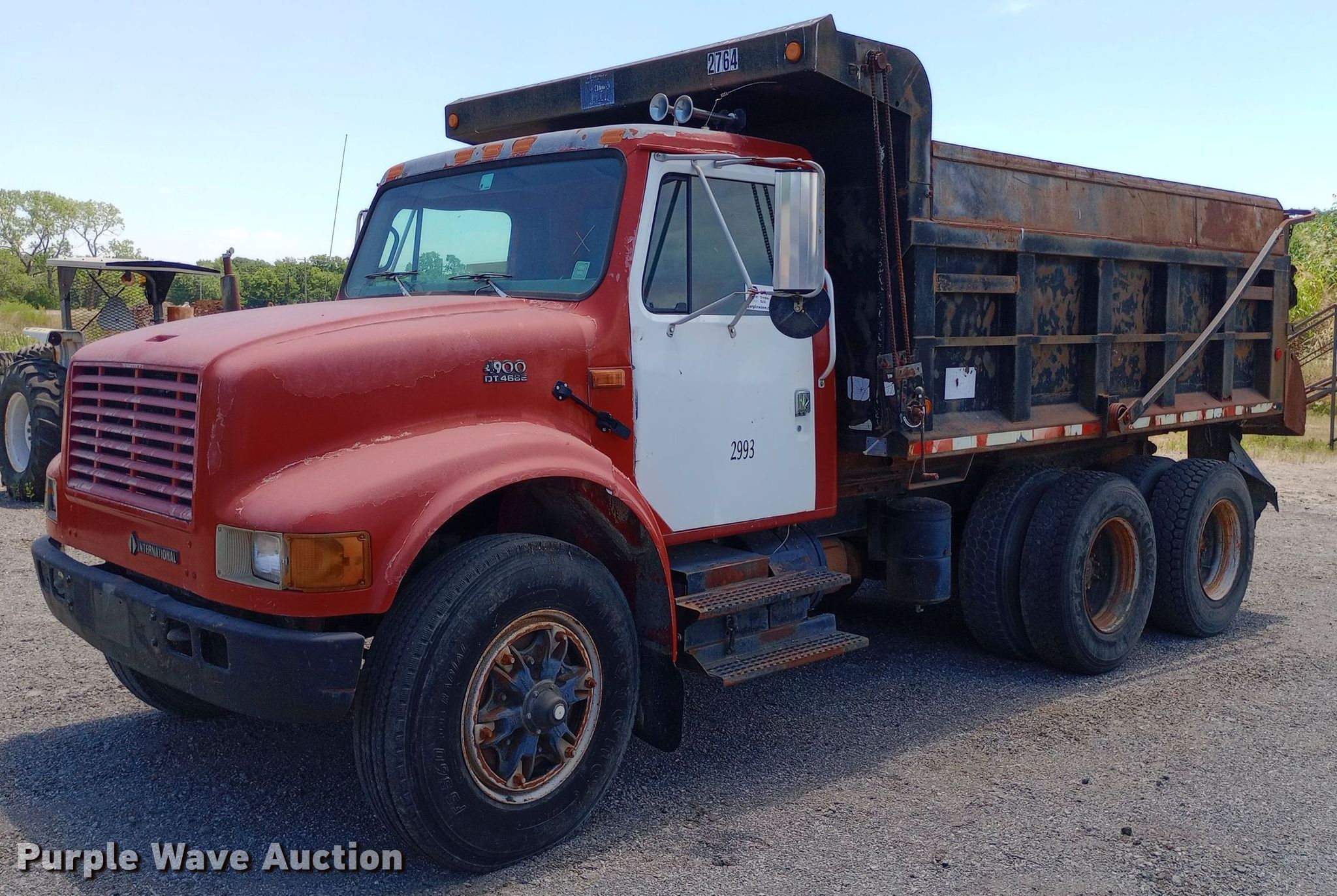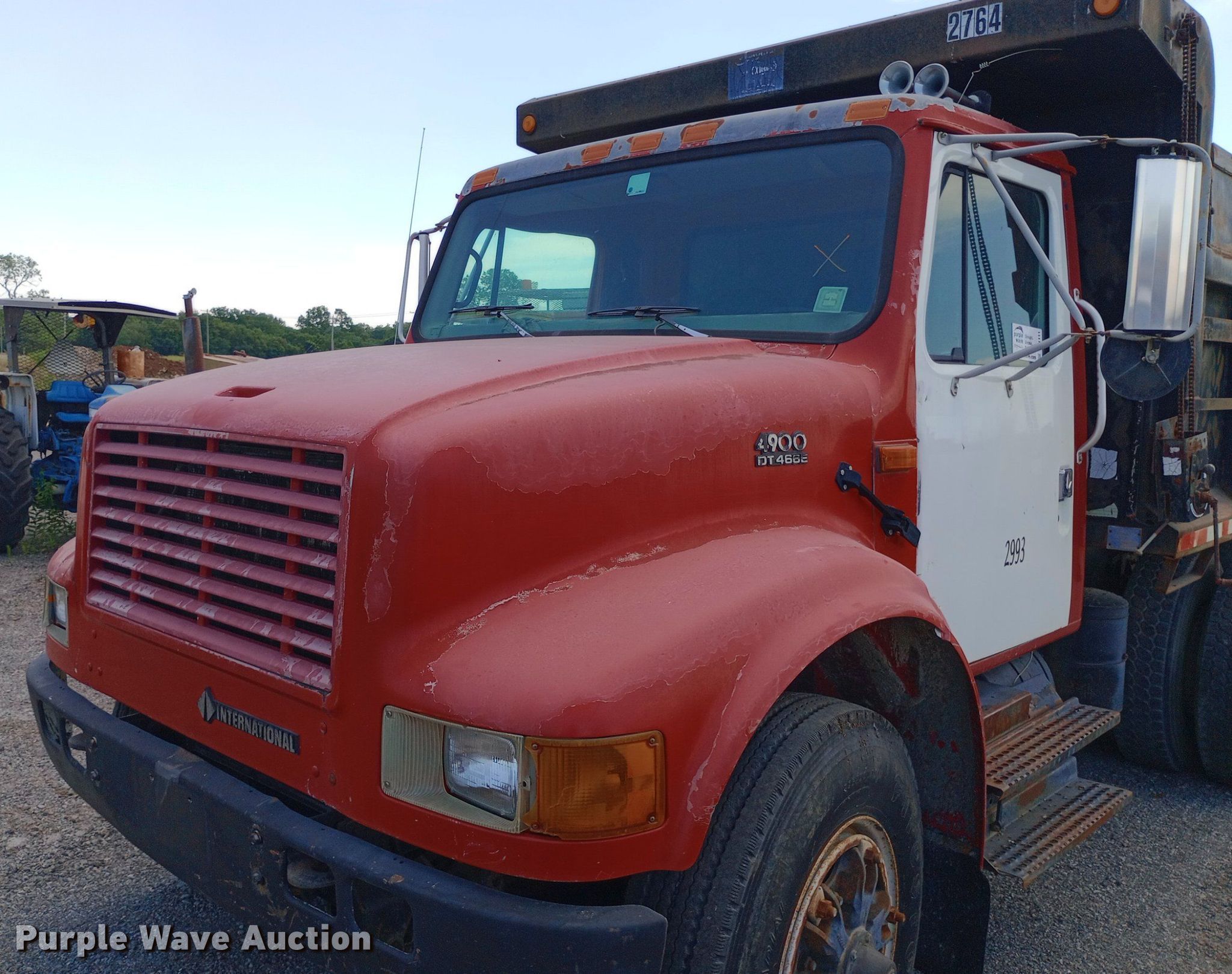 Purple Wave is selling a used Construction Dump Truck in Oklahoma. This item is a 2001 International 4900 dump truck with the following: Miles: 151,643 on odometer, Hours: 9,617 on meter, VIN: 1HTSHAAR11H384185, Unit #: 2764
