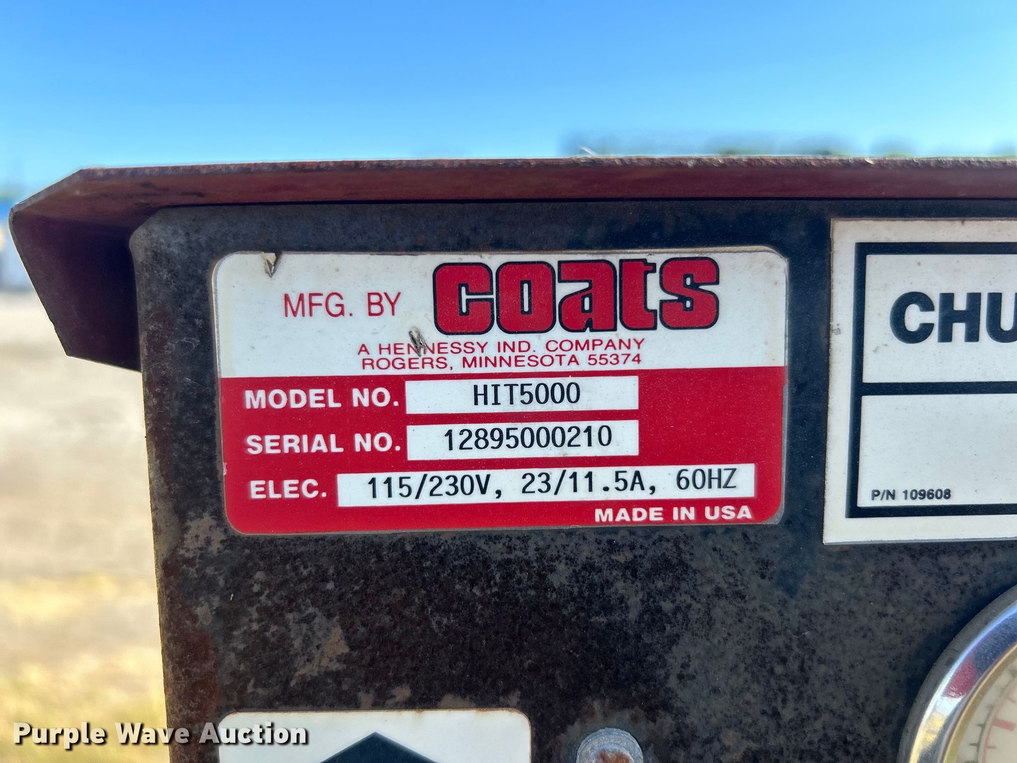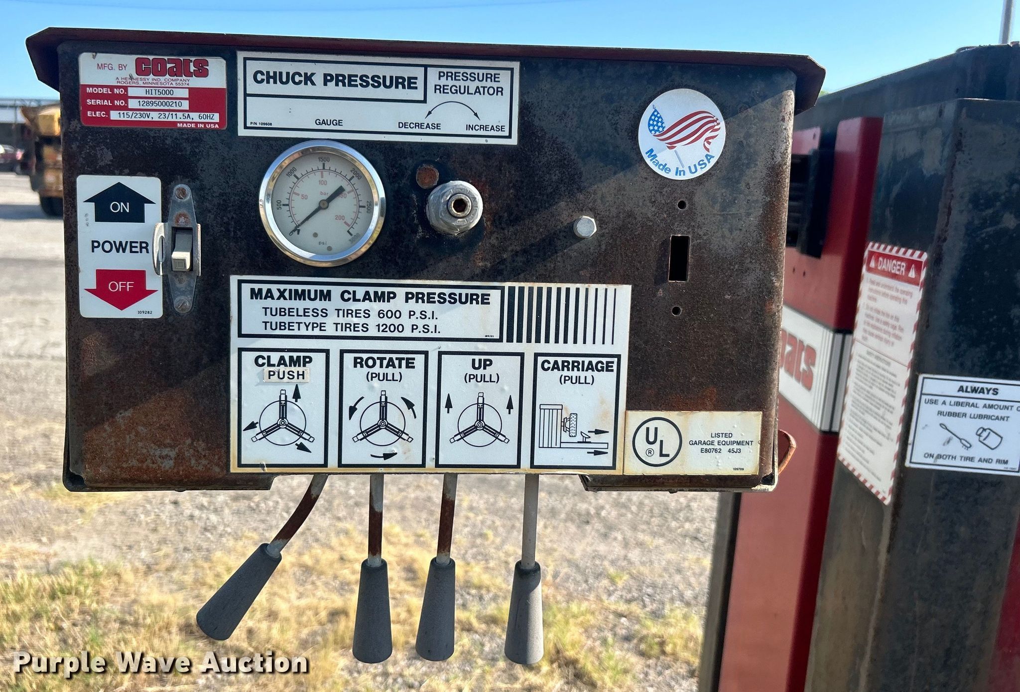 Purple Wave is selling a used Tools in Oklahoma. This item is a Coats HIT5000 tire machine with the following: Volts: 115/230, AMPS: 23/12.5, Hz: 69