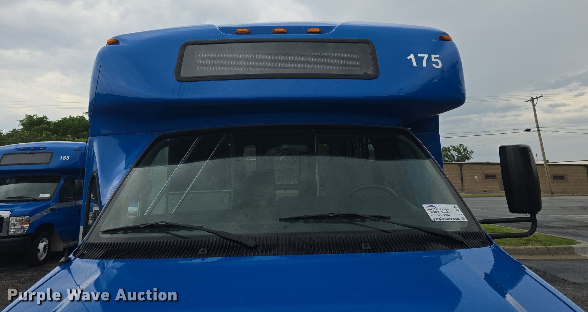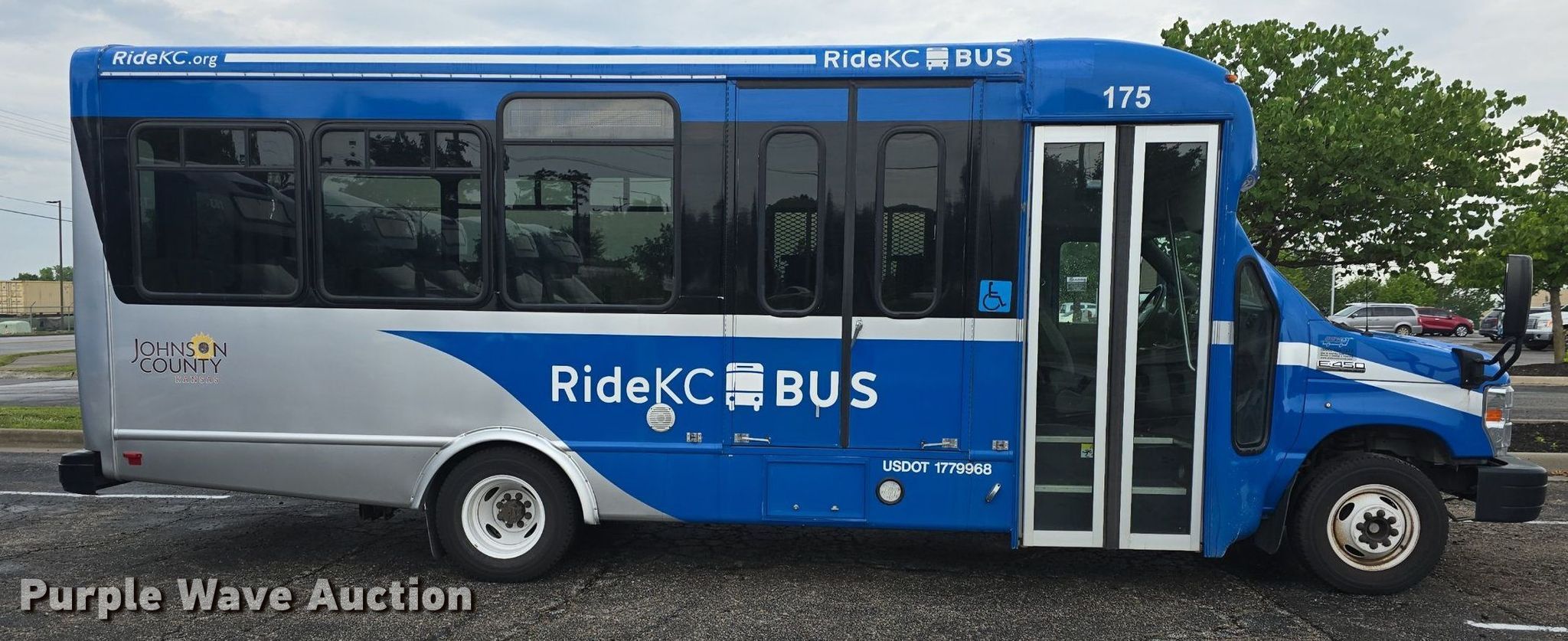 2018 Senator II ST69923C shuttle bus. Miles: 168,576 on odometer, VIN: 1FDFE4FSXJDC38004, Unit #: 175. Engine Displacement: 6.8L V10 SOHC, Cylinders: 10, Fuel type: Gas. Transmission Automatic. Chassis Axles: Single, Suspension: Spring, Brakes: Hydraulic, GVWR: 14,500 lbs, Wheelbase: 177". Interior AC, Heat, Heated mirrors, Cruise control, Electric passenger sliding door, Passengers: 20, Wheelchair lift. Tires Size: 225/75R16, Brand: Bridgestone. Notes Decals will be removed prior to auction, Dash warning indicator: Check engine. Kansas title. Johnson County Transit. Olathe, KS 66061