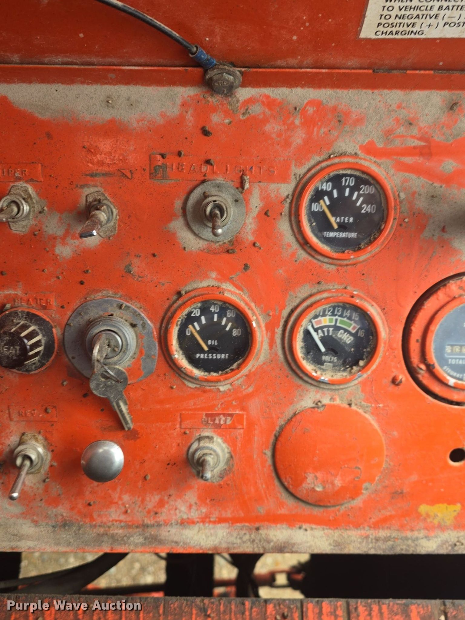 1965 Galion 503 rigid frame motor grader. Hours: 2,094 on meter, Serial: 503HG04619. Engine Cylinders: 6, Fuel type: Gas. Transmission Manual, 4F - 1R. Chassis Rigid frame. Operators station Enclosed cab, Heat. Features Moldboard total width: 12'. Tires Size: 8.25-20. Notes Brake issues, weak, Transmission issues, noise, Tire issues, leaks, Glass cracked. City of St Marys. Saint Marys, KS 66536