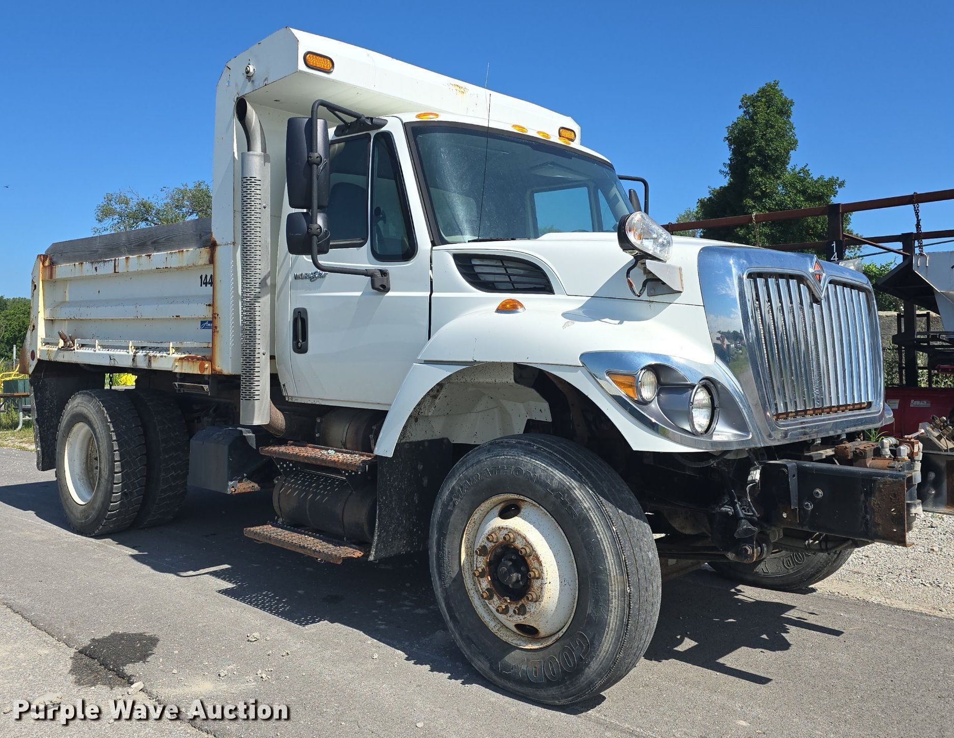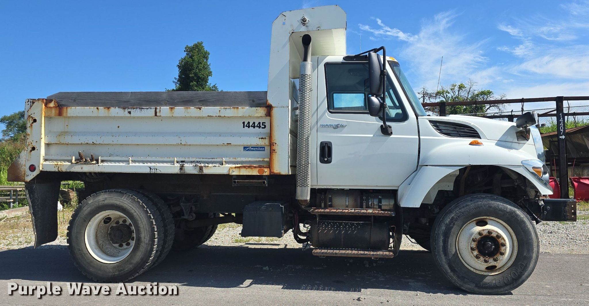Purple Wave is selling a used Construction Dump Truck in Kansas. This item is a 2014 International WorkStar 7300 dump truck with the following: Miles: 48,058 on odometer, Hours: 3,058 on meter, VIN: 1HTWDAAR7EH015446, Unit #: 14445