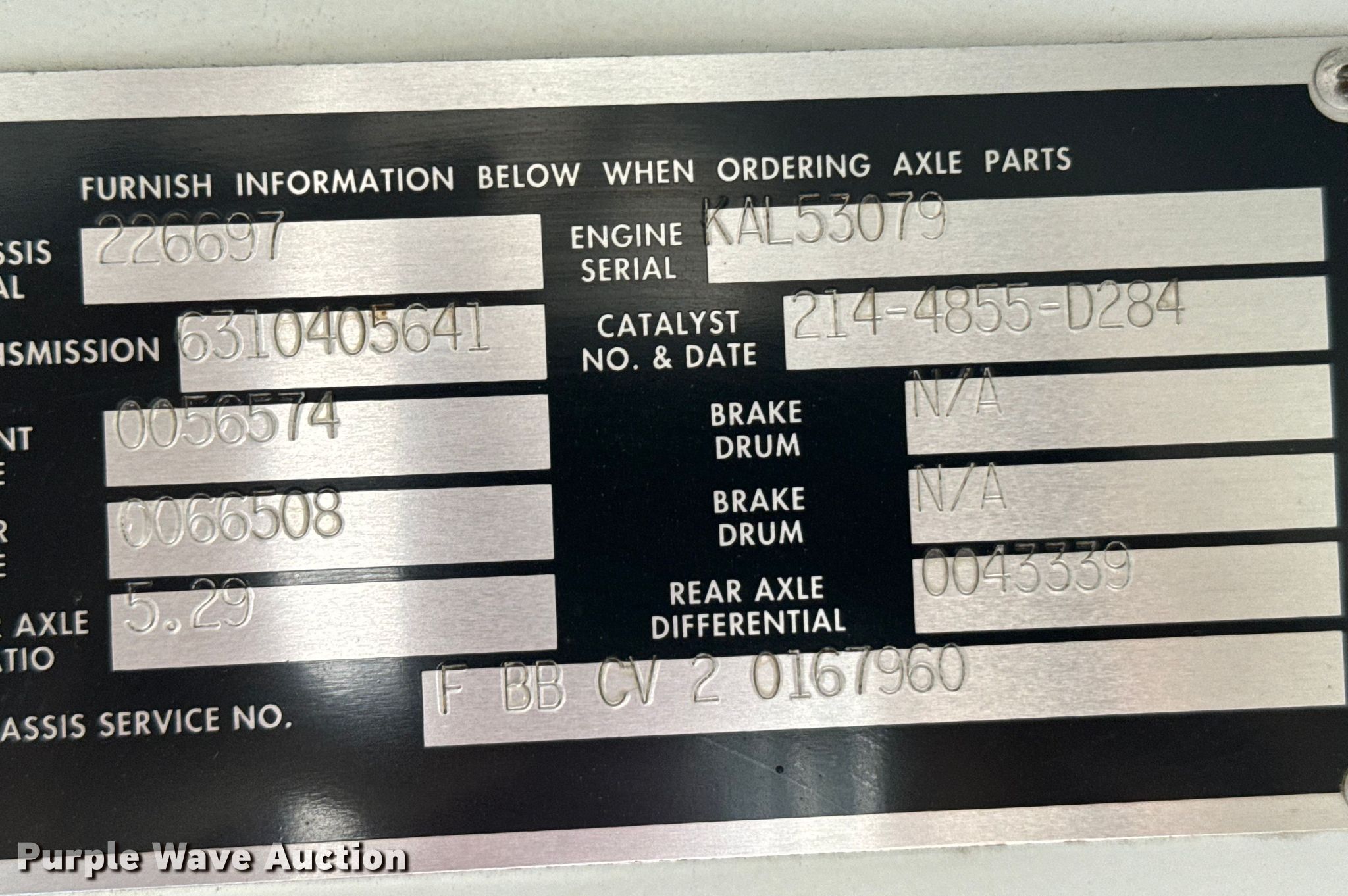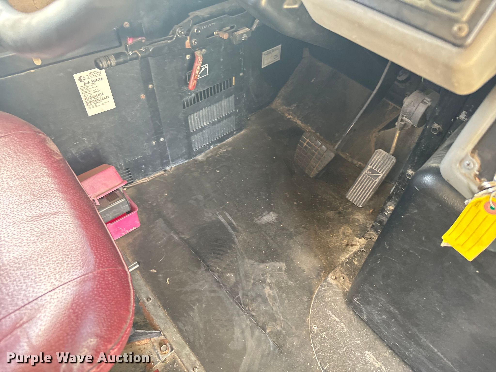 2005 Bluebird Vision school bus. Miles: 154,984 on odometer, Hours: 6,341 on meter, VIN: 1BAKBCKH15F226697. Engine Caterpillar C7, Displacement: 7.2L, Cylinders: 6, Fuel type: Diesel. Transmission Automatic. Chassis Axles: Single, Suspension: Spring, Brakes: Hydraulic, GVWR: 30,000 lbs. Interior AC, Heat, Heated mirrors, Cruise control, Passengers: 48, Adult seats: 16. Tires Size: 11R22.5. Notes Dash warning indicator: Brake pressure, Windshield chipped or cracked, Dead battery. Kansas title. Title distribution may be delayed up to 14 days from verification of funds. Palco USD 269. Palco, KS 67657