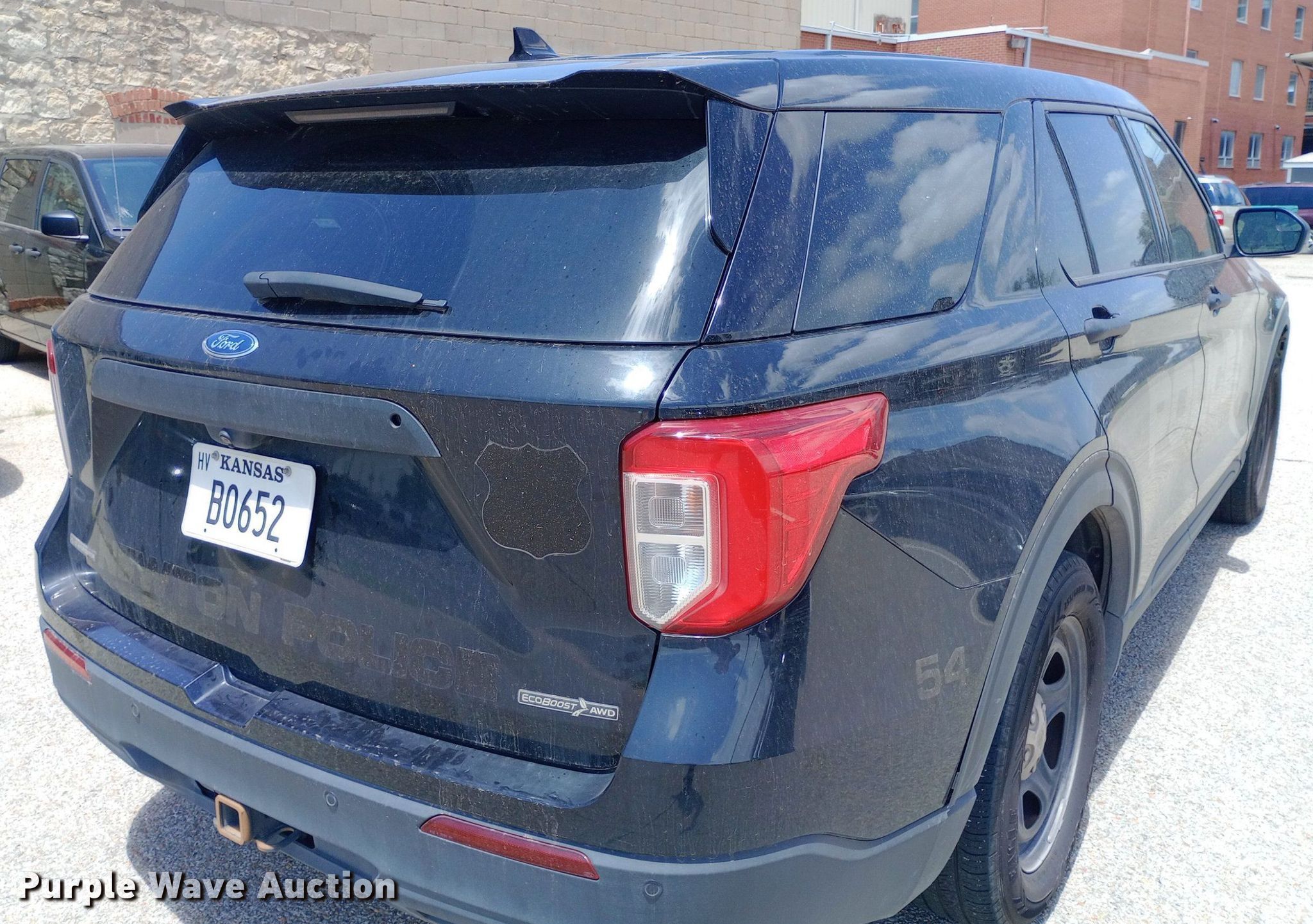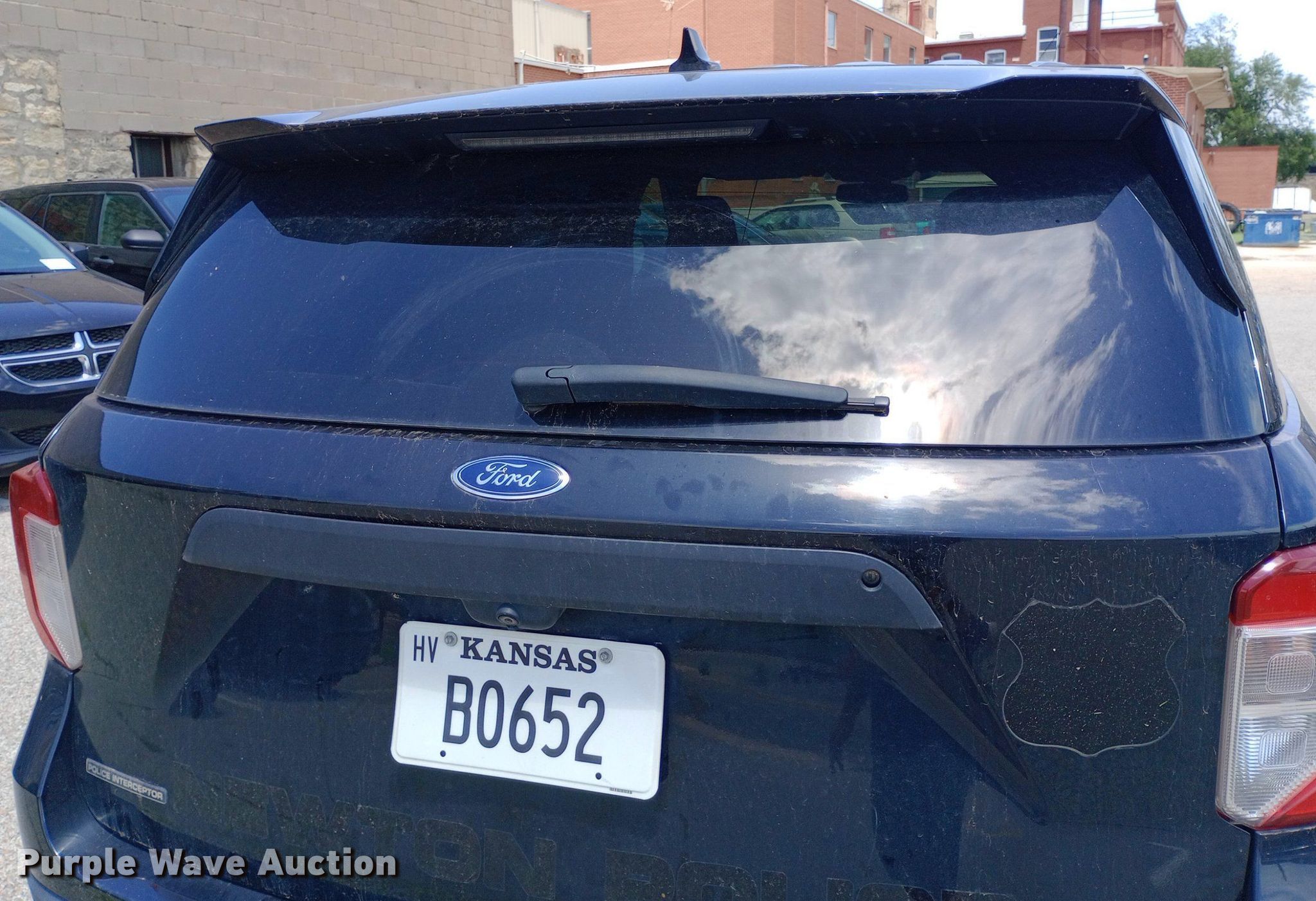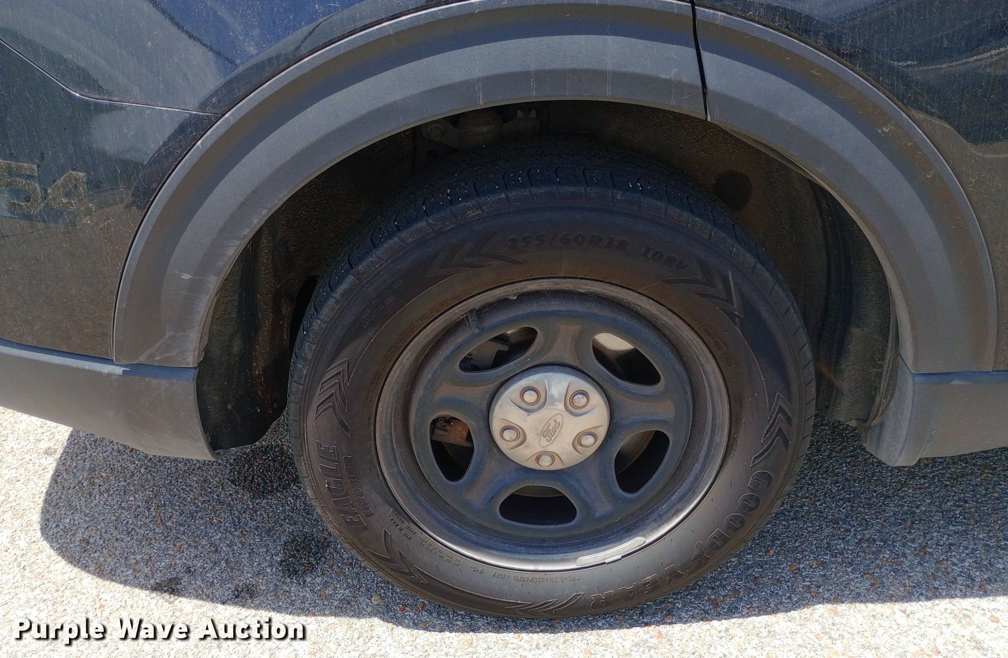 2020 Ford Explorer Police Interceptor SUV. Miles: 101,024 on odometer, VIN: 1FM5K8AC5LGC93148. Engine Displacement: 3.0L V6 DOHC, Cylinders: 6, Fuel type: Gas. Transmission Automatic, All wheel drive. Interior AC, Heat, Seat: Power driver, Power windows, Power locks, Cruise control, Backup camera. Tires Size: 255/60R18. Notes Dash warning indicator: Check engine, TPMS, Center console missing, Unknown operating condition of backup camera. Kansas title. Newton, KS 67114