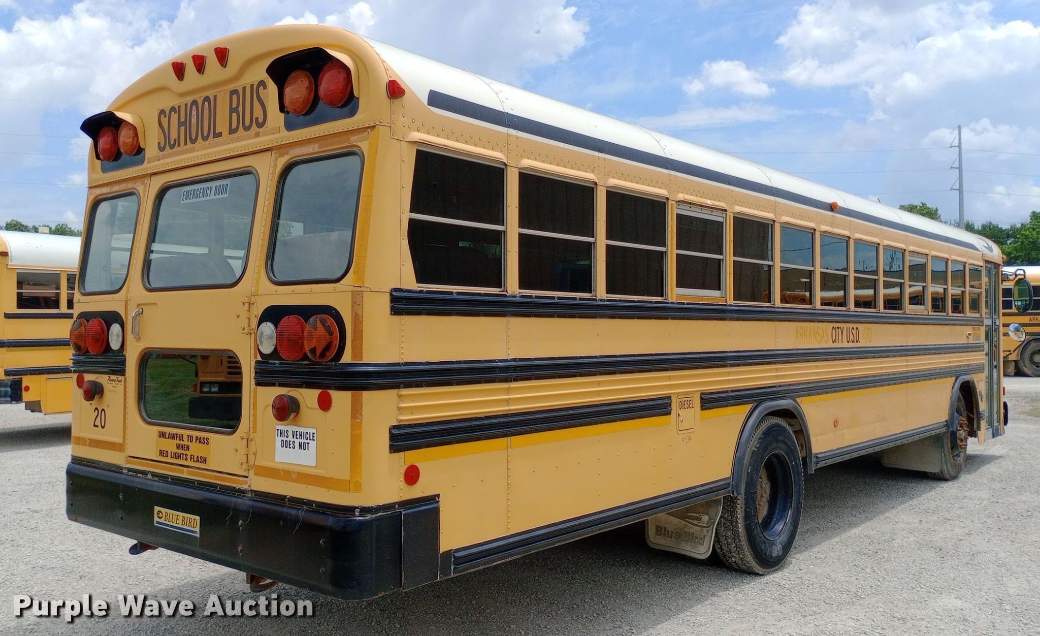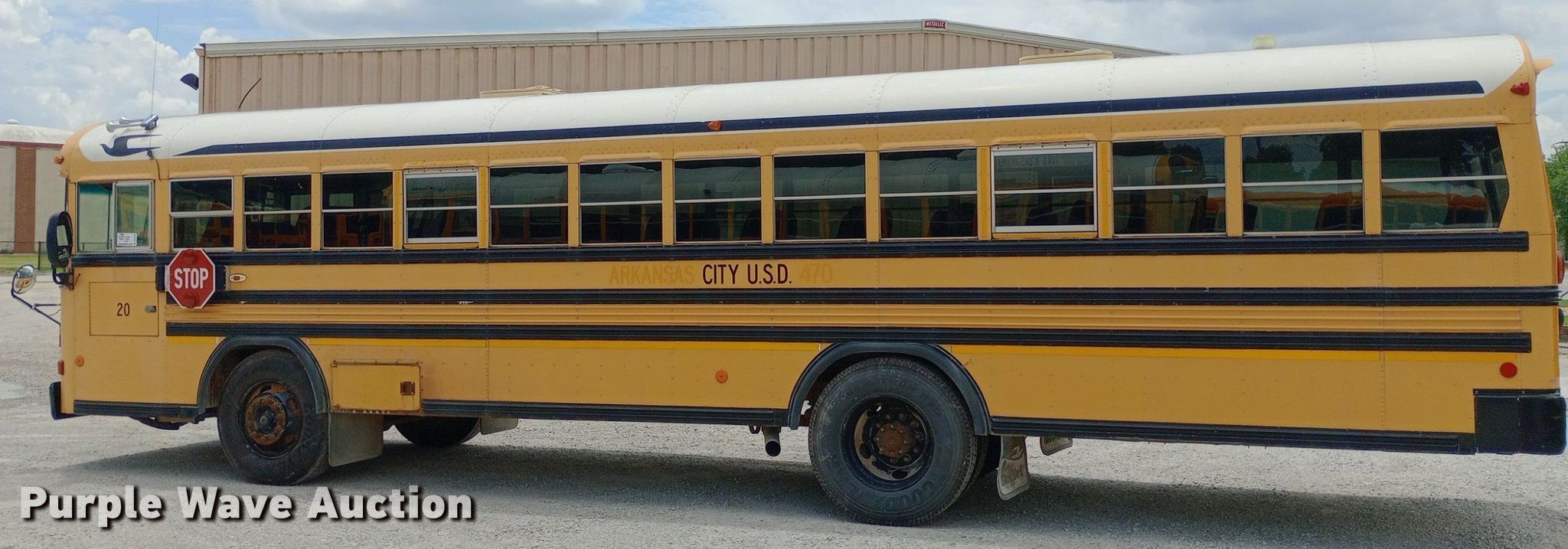 Purple Wave is selling a used Bus in Kansas. This item is a 2005 Blue Bird school bus with the following: Miles: 148,227 on odometer, Hours: 1,361 on meter, Unit #: 20