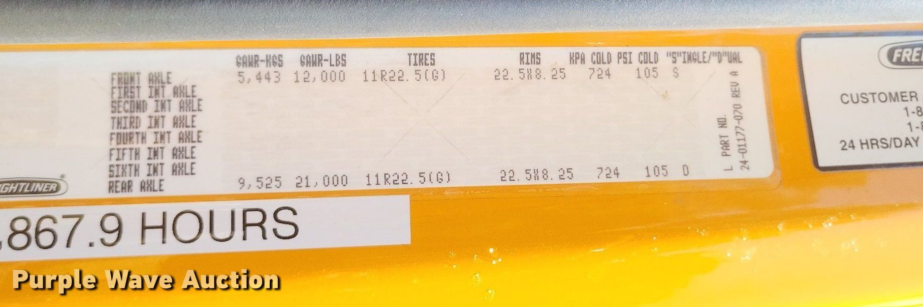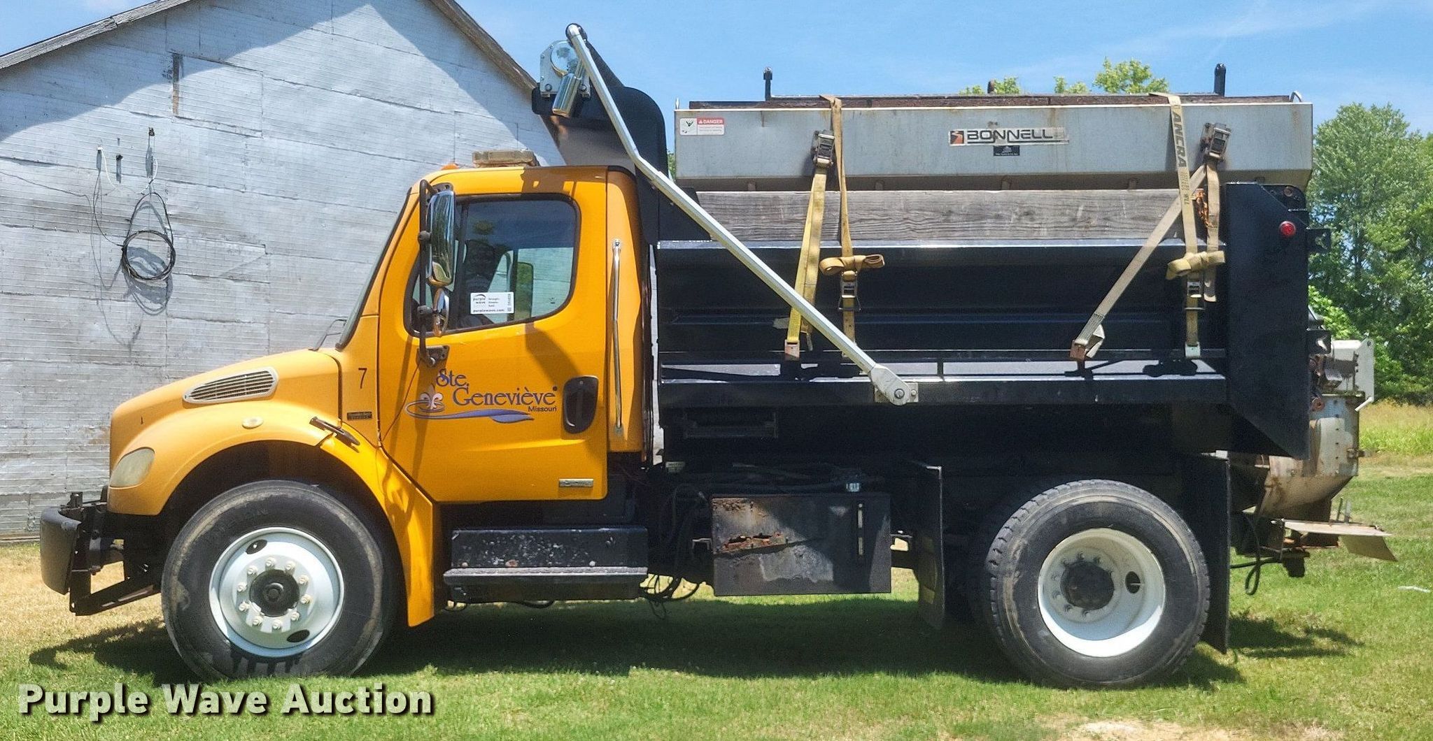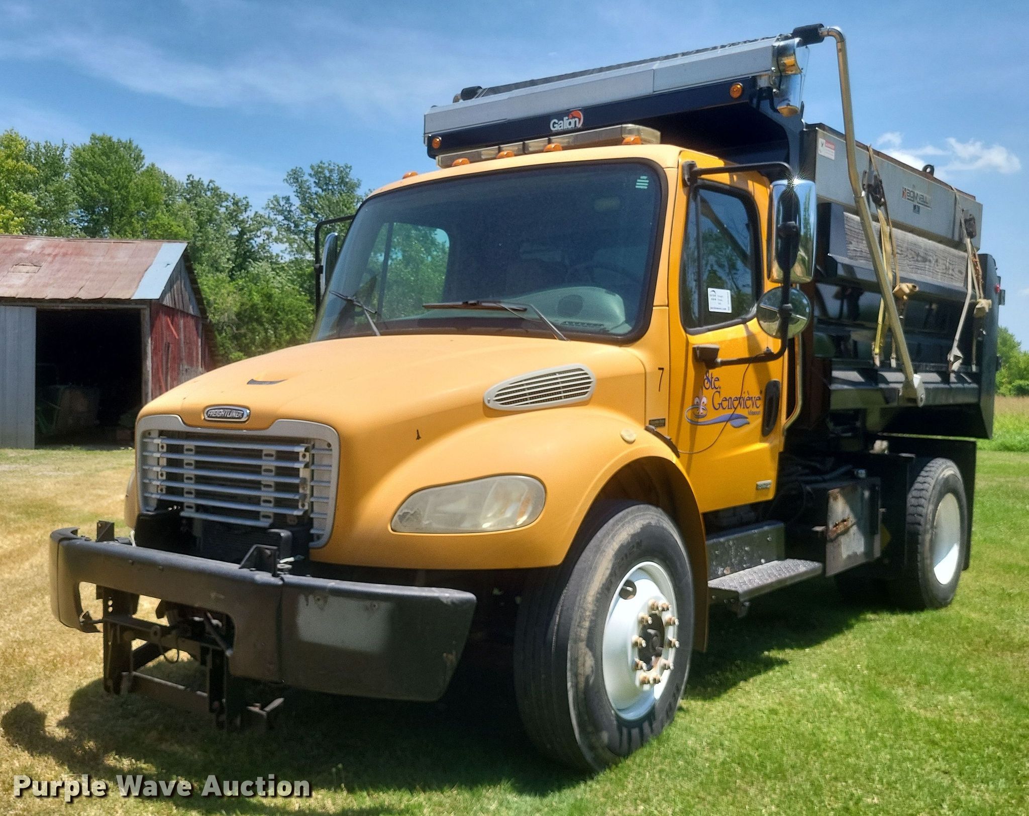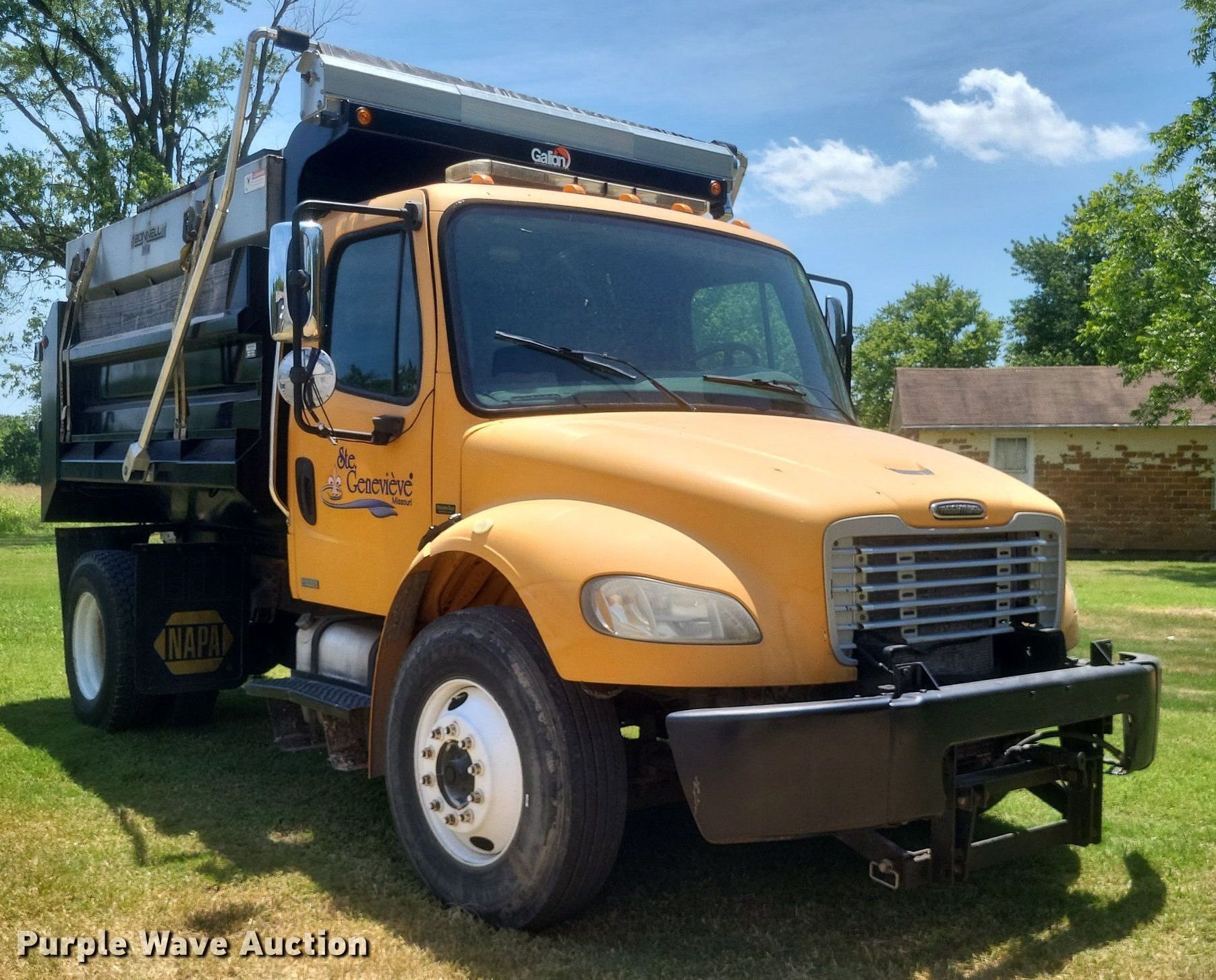 2005 Freightliner Business Class M2 dump truck. Miles: 2,164 on odometer, Hours: 5,177 on meter, VIN: 1FVACXCS15HN67204. Engine Mercedes-Benz MBE 900, Displacement: 6.4L, Cylinders: 6, Fuel type: Diesel. Transmission Automatic. Chassis Axles: Single, Suspension: Spring, Brakes: Air, PTO, GVWR: 33,000 lbs FAWR: 12,000 lbs, RAWR: 21,000 lbs. Interior AC, Heat, Cruise control. Features Dump bed Galion-Godwin 430U-10, 10' L x 8' W, Side height: 31", Side board height: 10", Bed type: Steel, Roll tarp, Ram: Single, End gate: Air operated, Spreader Bonnell. Tires Size: 11R22.5. Notes Dash warning indicator: Check engine, ABS, Windshield chipped or cracked. Missouri title. Title distribution may be delayed up to 14 days from verification of funds. City of Sainte Genevieve. Sainte Genevieve, MO 63670