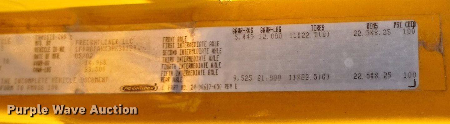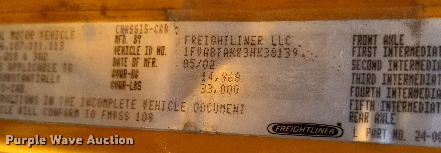 Purple Wave is selling a used Construction Dump Truck in Missouri. This item is a 2003 Freightliner FL70 dump truck with the following: Miles: 37,971 on odometer, Hours: 3,755 on meter, VIN: 1FVABTAKX3HK38139