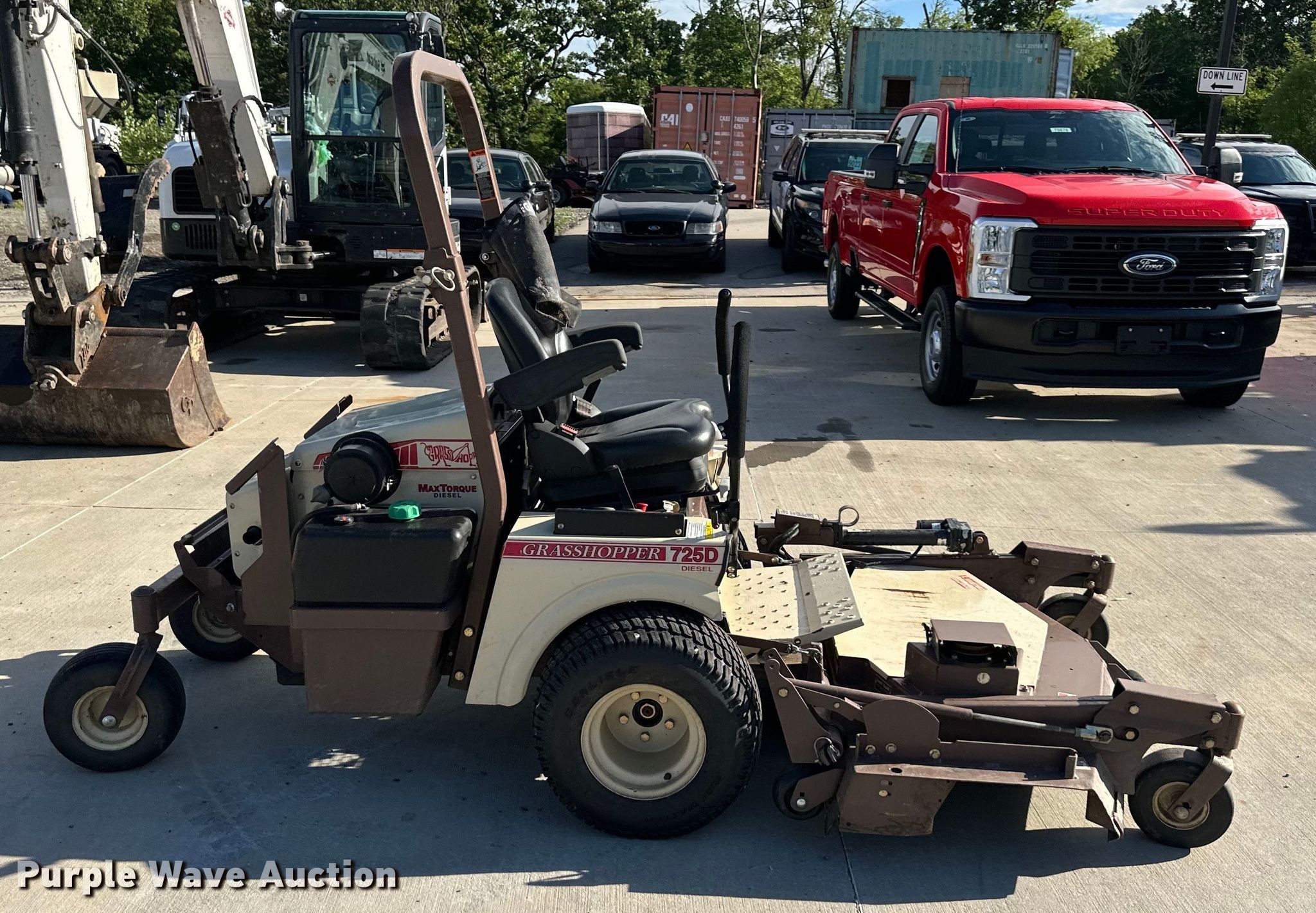 Purple Wave is selling a used Commercial Turf Mower in Kansas. This item is a Grasshopper 725D ZTR lawn mower with the following: Hours: 731 on meter, Cutting width: 60", Serial: 6518340