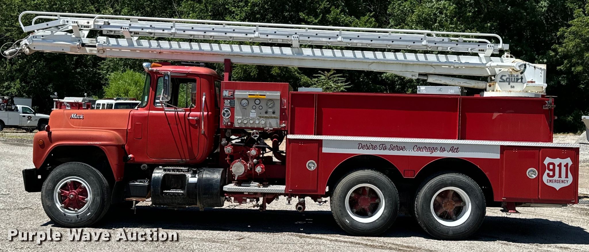 Purple Wave is selling a used Fire Truck or Emergency Vehicle in Kansas. This item is a 1981 Mack R686ST Quint fire truck with the following: Miles: 3,412 on odometer, Hours: 1,048 on meter, VIN: 1M2N178Y4BA071863