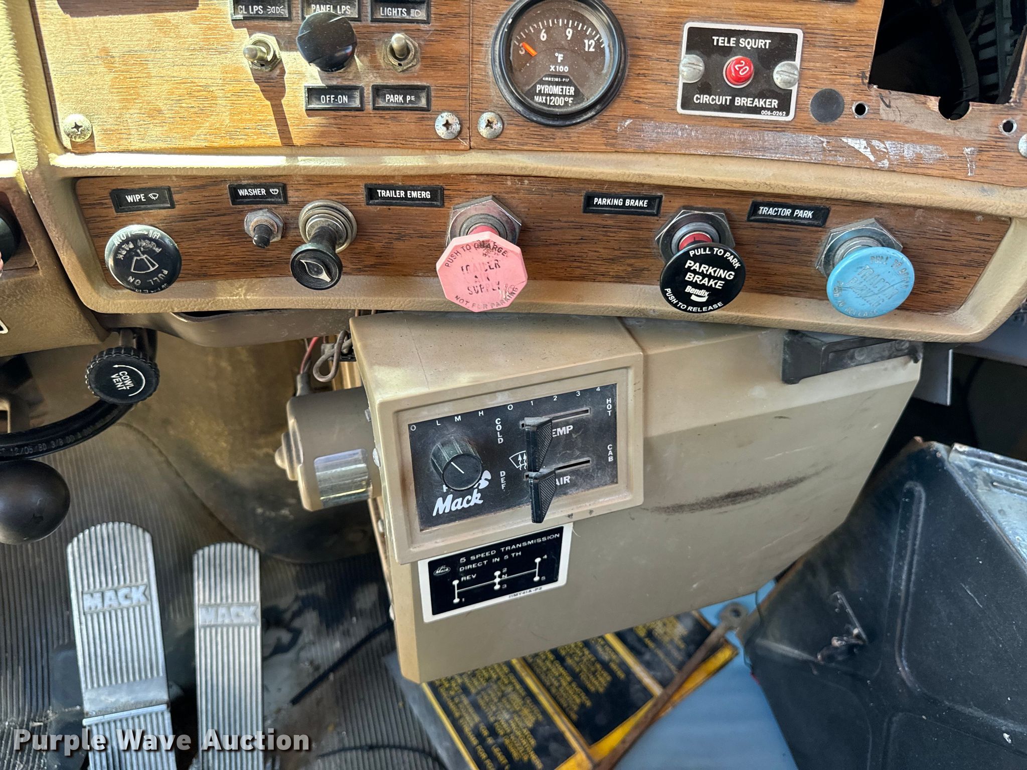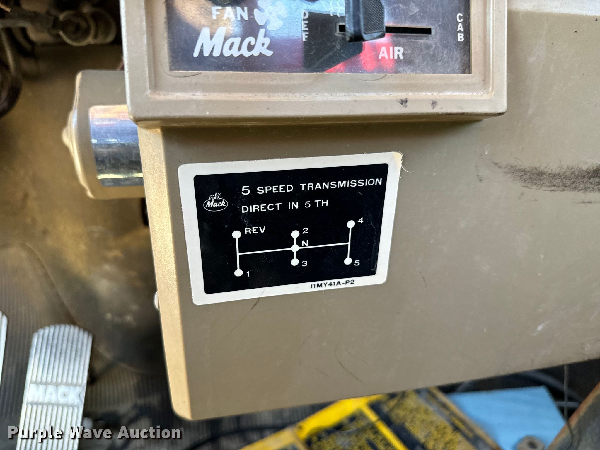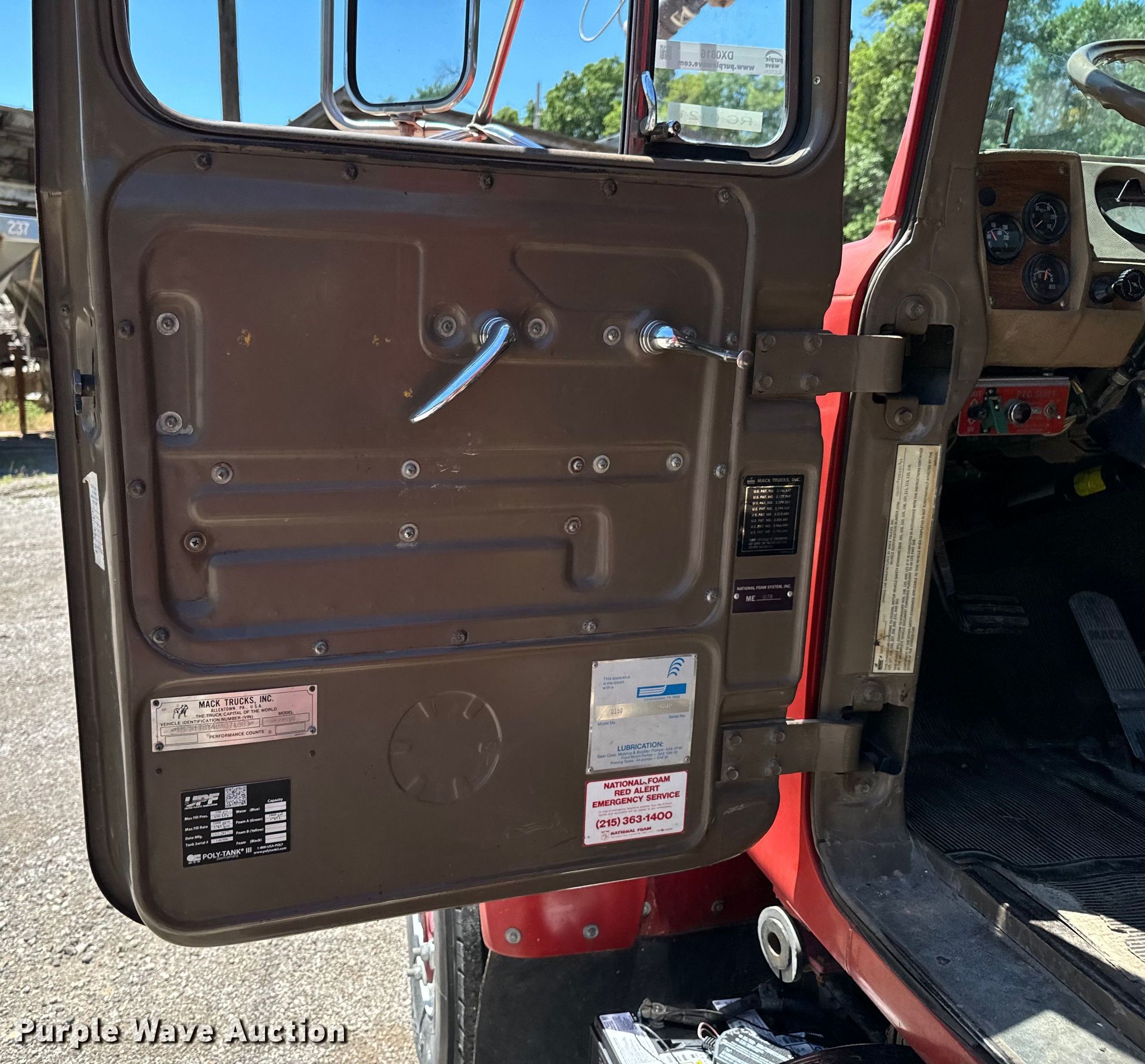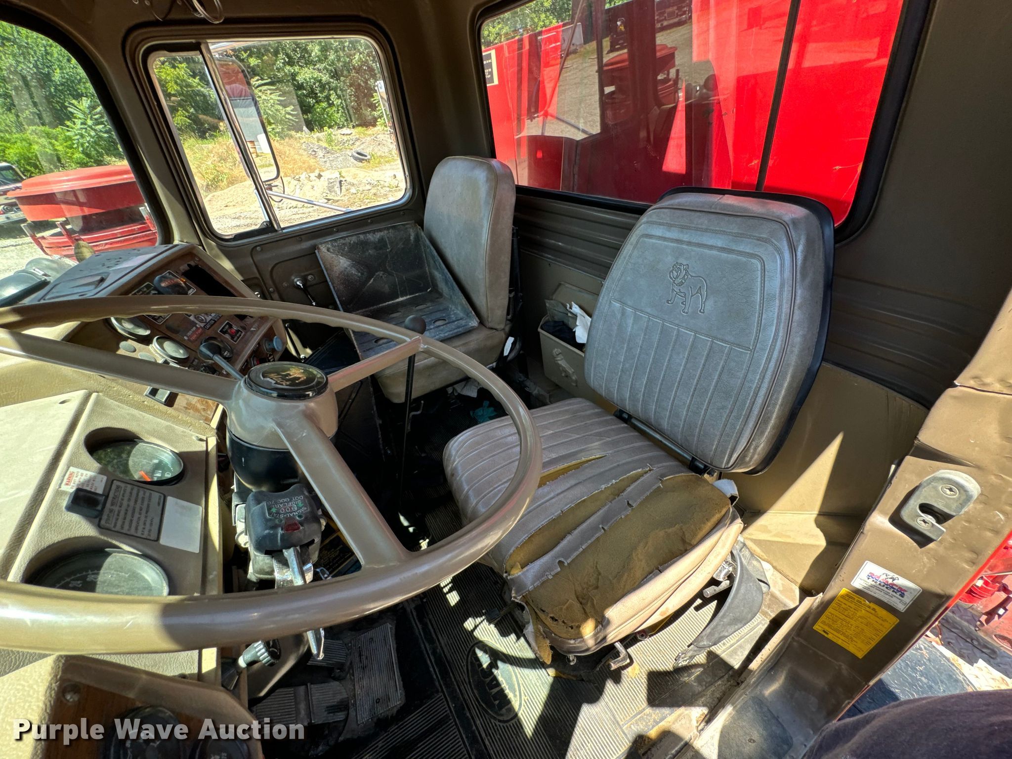 1981 Mack R686ST Quint fire truck. Miles: 3,412 on odometer, Hours: 1,048 on meter, VIN: 1M2N178Y4BA071863. Engine Mack, Displacement: 11.0L, Cylinders: 6, Fuel type: Diesel. Transmission Mack, Manual, Speed: 5. Chassis Axles: Tandem, Suspension: Camelback, Brakes: Air. Interior Heat. Features Fire truck body Aerial TeleSquirt 50, Maximum lift capacity: 800 lbs, Stabilizers Quantity: 2, Elevated deck gun 1,000 gpm, Pump 1,500 gpm, PA/ siren controls. Tires Size: 11R22.5. Kansas title. Title distribution may be delayed up to 14 days from verification of funds. Montgomery County Rural Fire Dist. 1. Independence, KS 67301