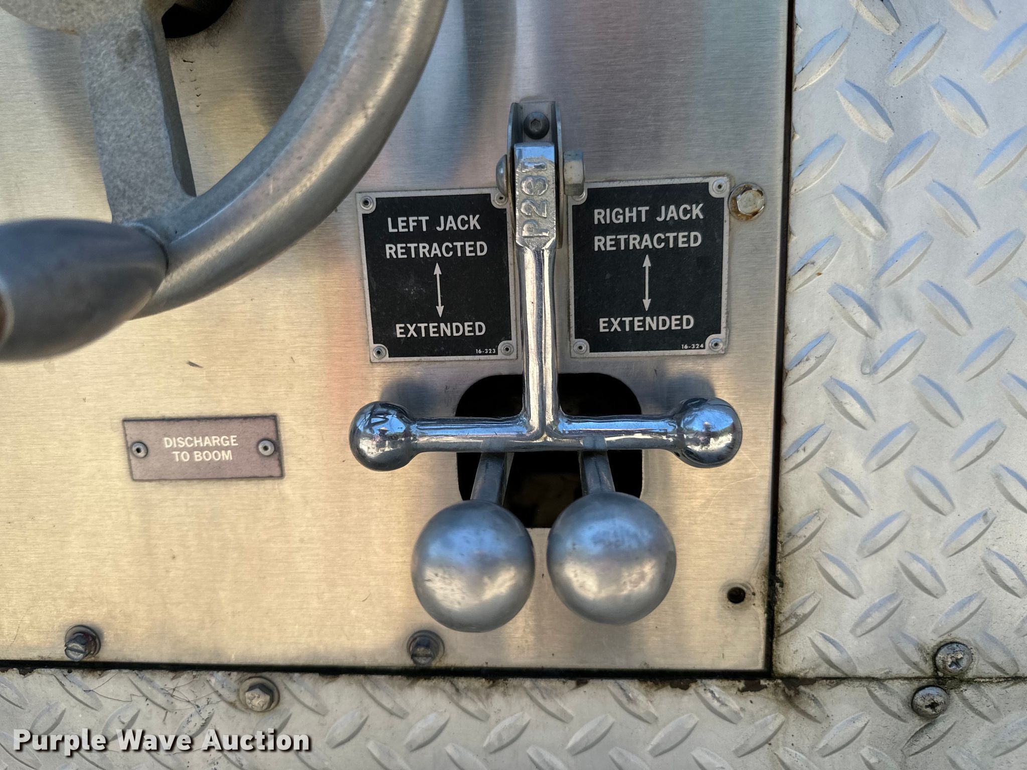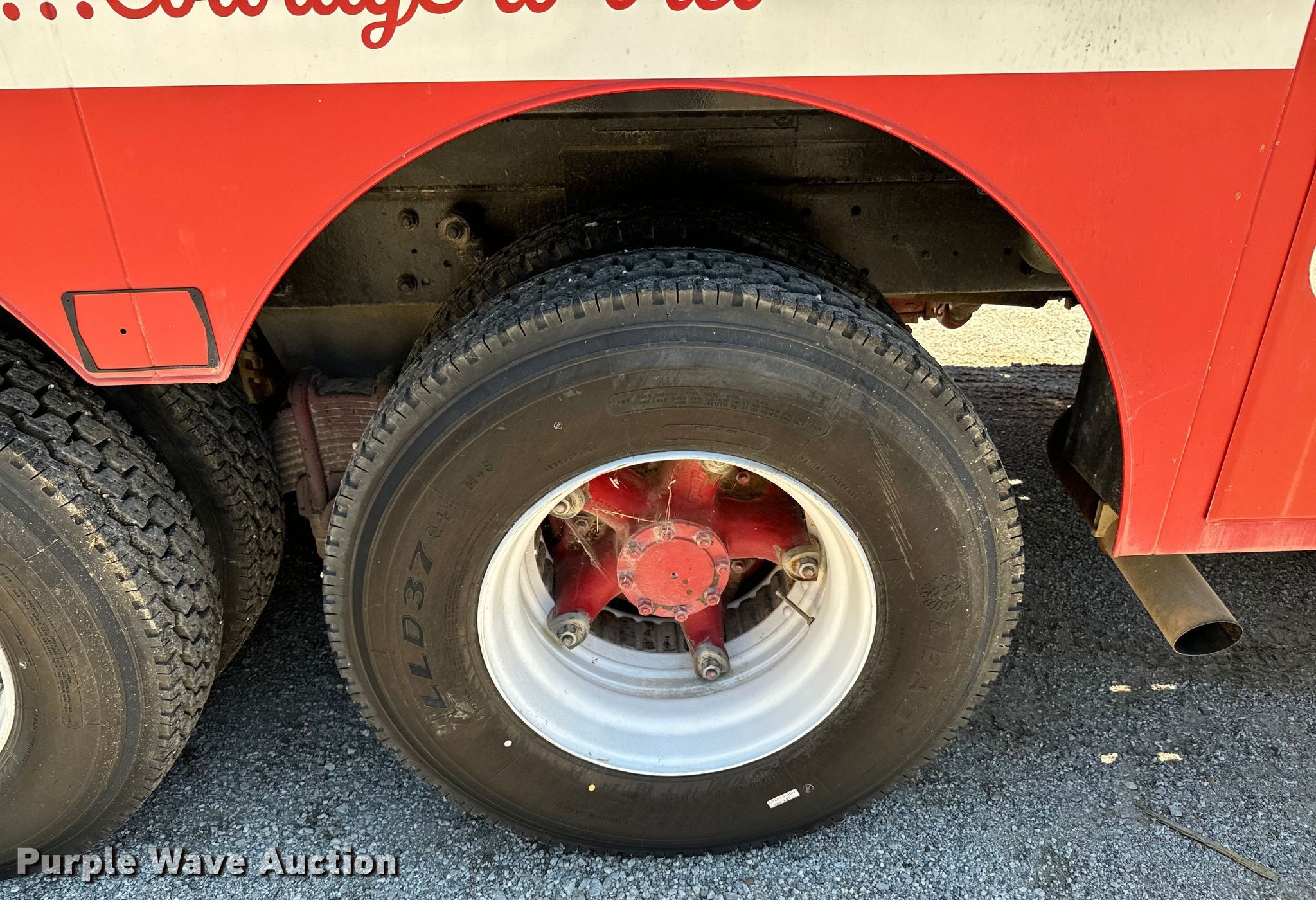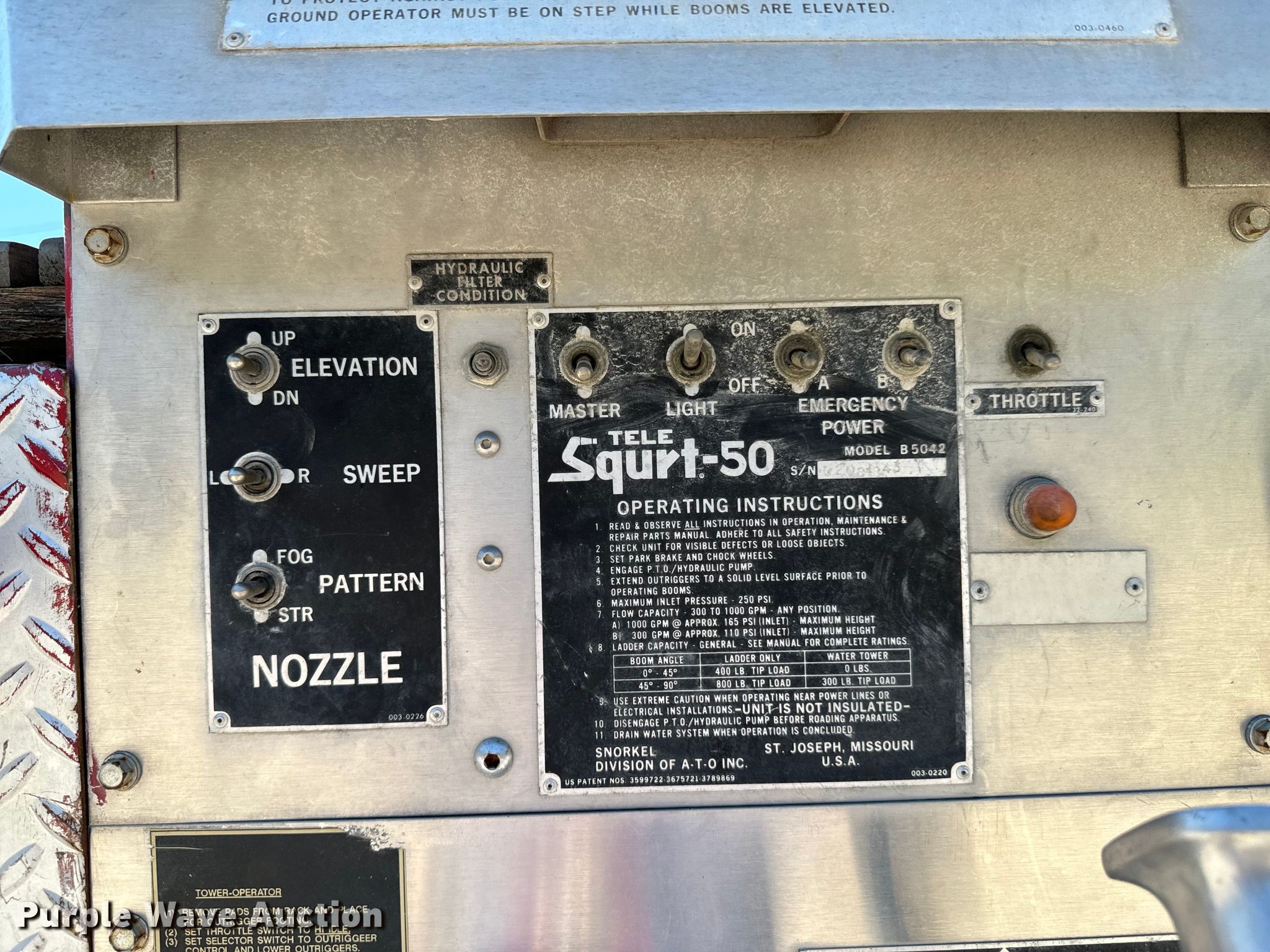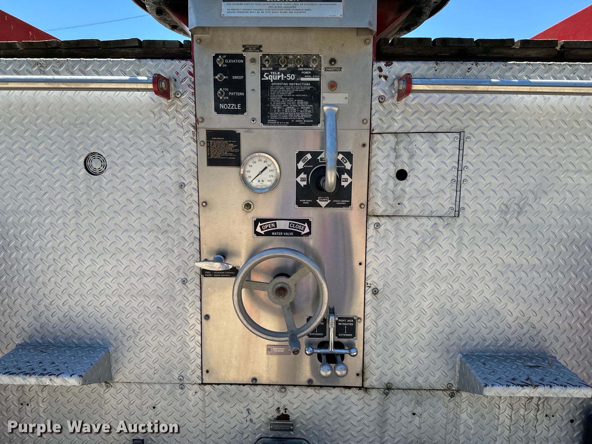 1981 Mack R686ST Quint fire truck. Miles: 3,412 on odometer, Hours: 1,048 on meter, VIN: 1M2N178Y4BA071863. Engine Mack, Displacement: 11.0L, Cylinders: 6, Fuel type: Diesel. Transmission Mack, Manual, Speed: 5. Chassis Axles: Tandem, Suspension: Camelback, Brakes: Air. Interior Heat. Features Fire truck body Aerial TeleSquirt 50, Maximum lift capacity: 800 lbs, Stabilizers Quantity: 2, Elevated deck gun 1,000 gpm, Pump 1,500 gpm, PA/ siren controls. Tires Size: 11R22.5. Kansas title. Title distribution may be delayed up to 14 days from verification of funds. Montgomery County Rural Fire Dist. 1. Independence, KS 67301