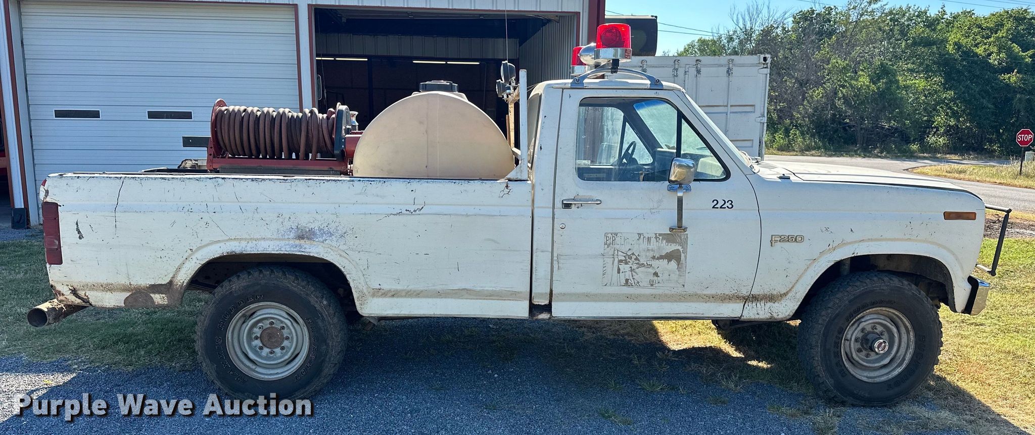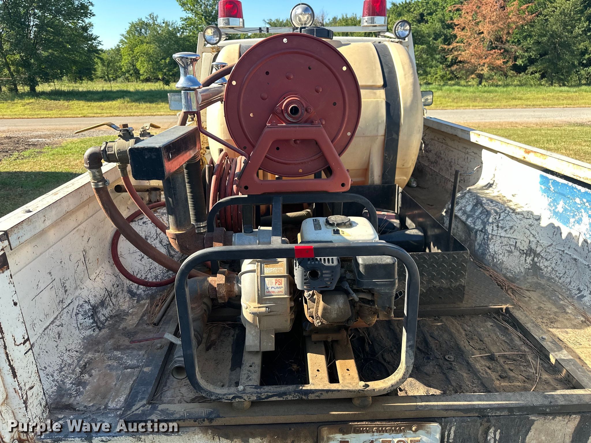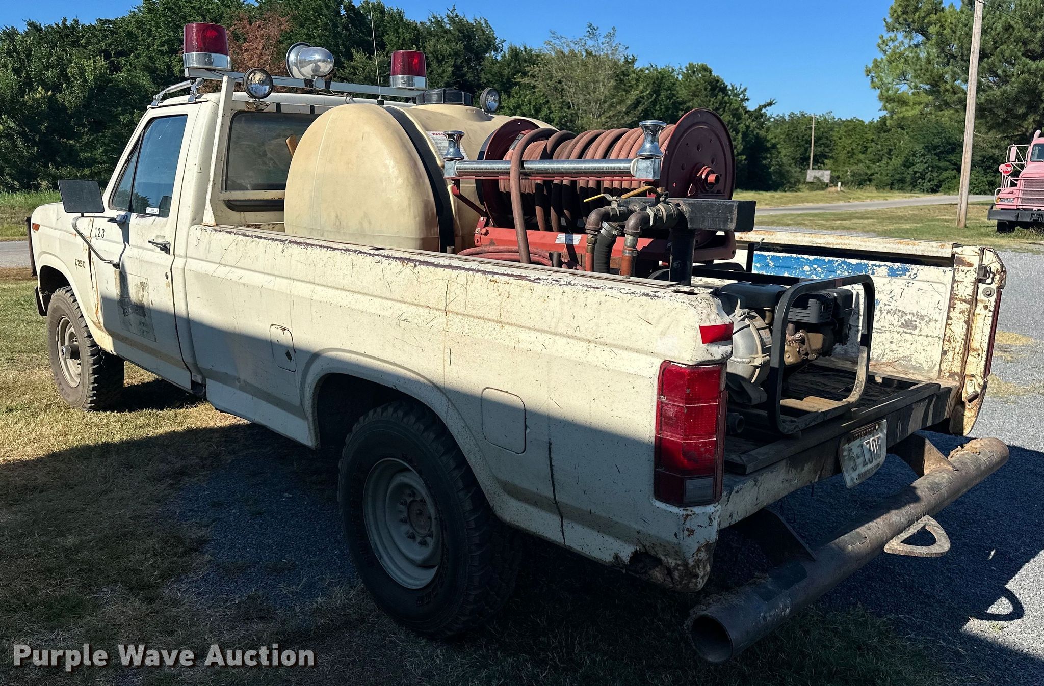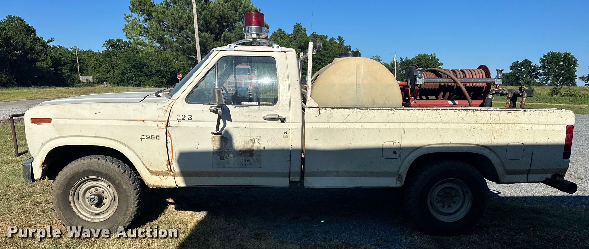 1985 Ford F250 pickup truck. Miles: 21,568 on odometer Actual mileage unknown, VIN: 1FTEF26YXFPA65662. Engine Displacement: 4.9L L6 OHV, Cylinders: 6, Fuel type: Gas. Transmission Manual, Speed: 4, Four wheel drive. Interior AC, Heat. Features Tank Capacity: 250 gallons, Hose reel, Hose, Honda GX160 single cylinder gas engine. Tires Size: LT235/85R16. Notes Non-operational AC. Windshield chipped or cracked. Oklahoma classic title. Mileage has not been verified. Exempt will be written in the odometer disclosure on the title. Title distribution may be delayed up to 14 days from verification of funds. Okemah, OK 74859