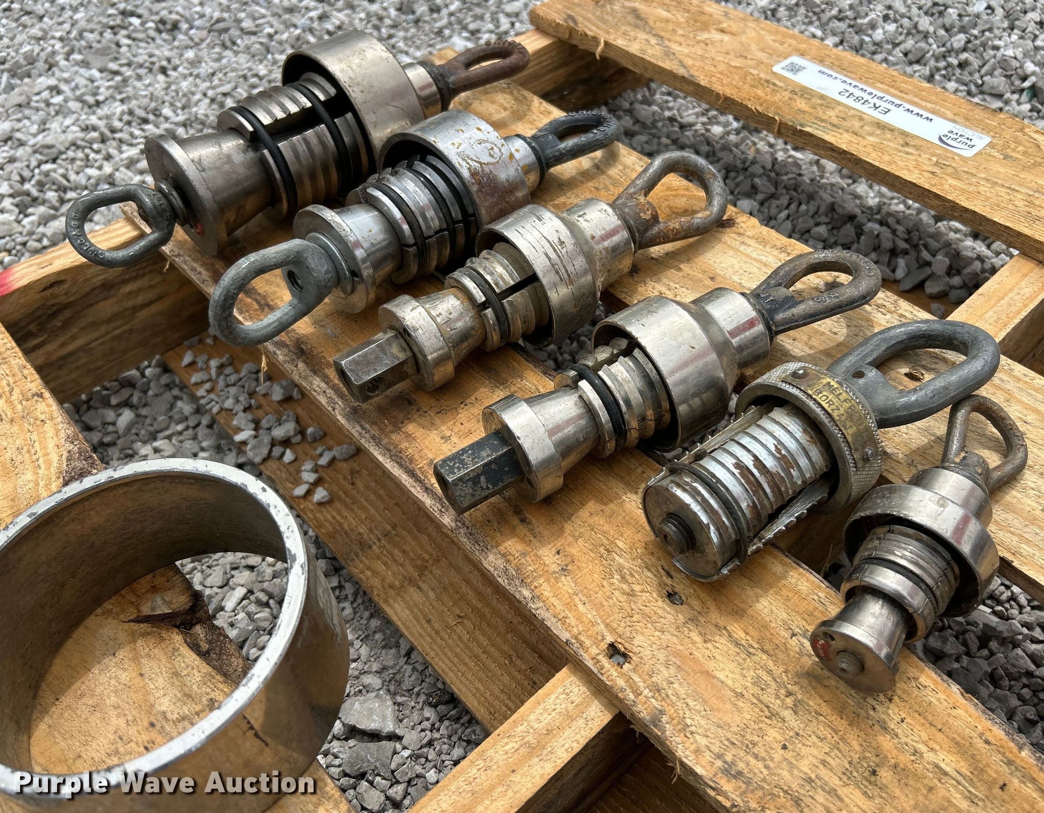 Purple Wave is selling a used Tools in Illinois. This item is a (9) HDPE pipe pullers with the following: Dimensions:, 2", 2.5", 3", 3.5", 4.5"