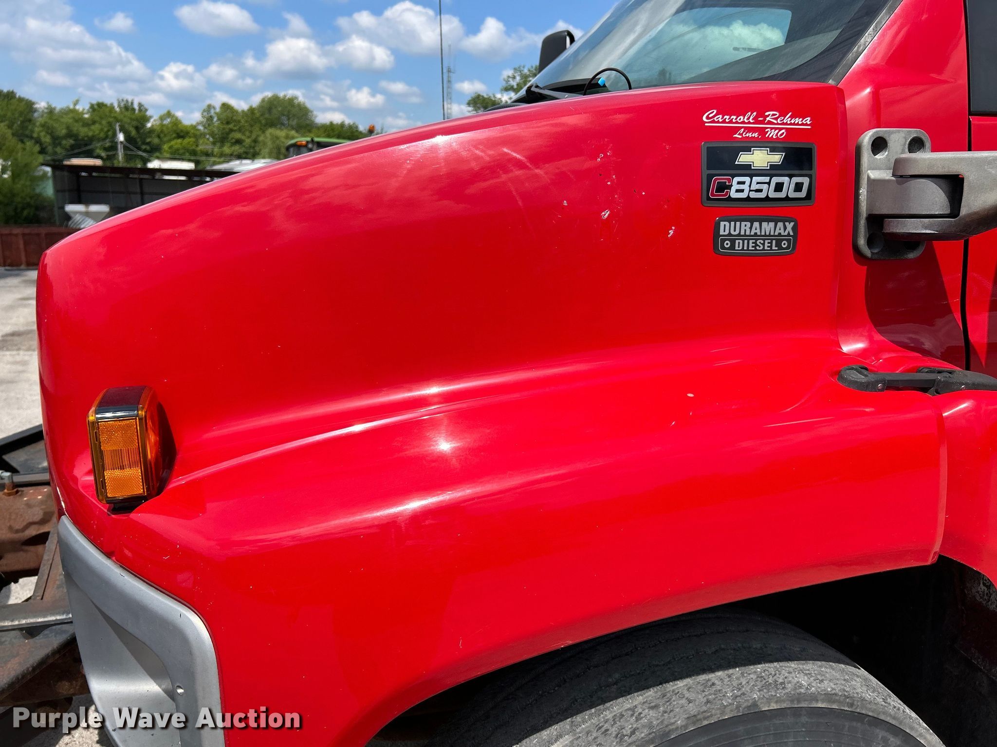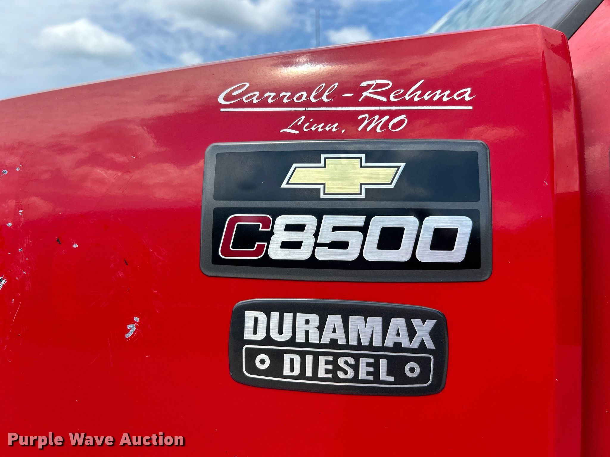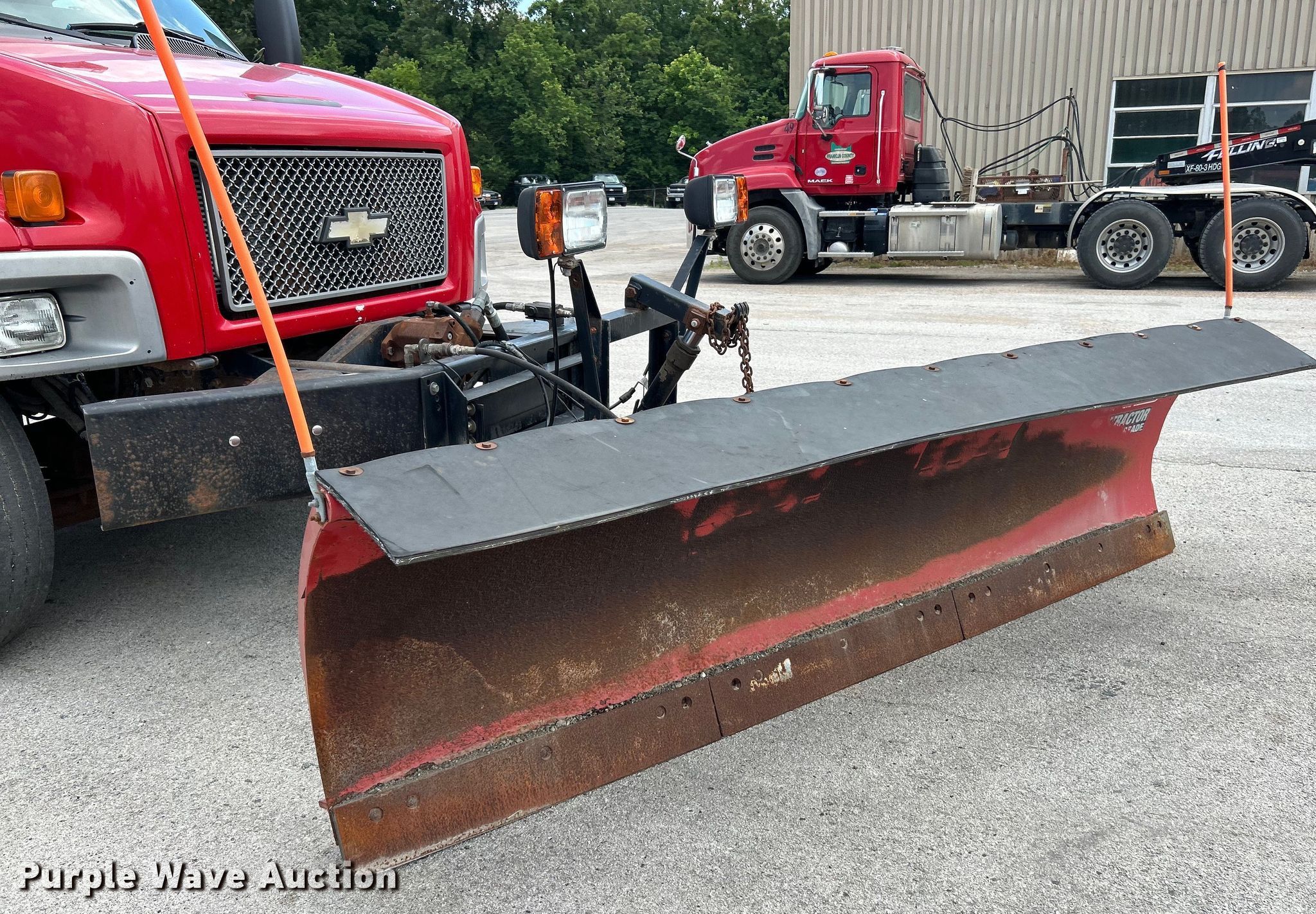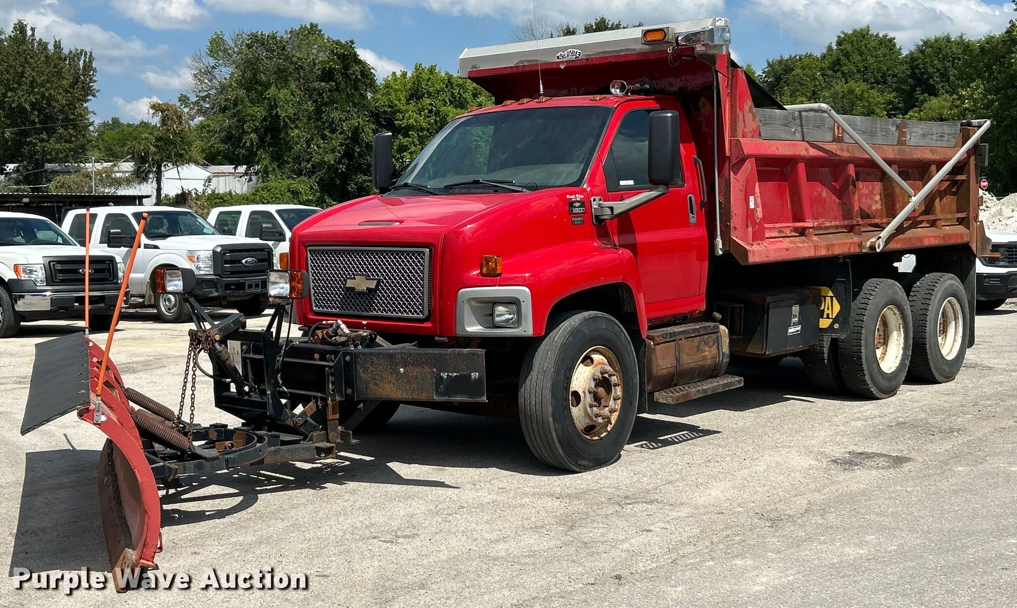2005 Chevrolet C8500 dump truck. Miles: 219,112 on odometer, VIN: 1GBT8C4335F534243. Engine Displacement: 7.8L, Cylinders: 6, Fuel type: Diesel. Transmission Eaton Fuller, Manual, Speed: 10. Chassis Double frame, Axles: Tandem, Suspension: Spring over walking beam, Brakes: Air, PTO, GVWR: 53,220 lbs FAWR: 13,220 lbs, IAWR: 20,000 lbs, RAWR: 20,000 lbs. Interior AC, Heat, Heated mirrors, Cruise control. Features Dump bed 15'L x 96" W, Side height: 36", Side board height: 9", Bed type: Steel, Roll tarp, Ram: Single, End gate: Air operated, Plow Western Ultra finish, Width: 120". Tires Size: 11R22.5. Notes Dash warning indicator: ABS. Missouri title. Franklin County, MO. Union, MO 63084